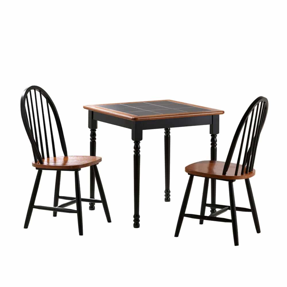 The 3-Piece Square Tile Top Set’s two-tone finish looks delightful in traditional- or farmhouse-styled homes. This quaint three-piece set is perfect for enjoying morning cups of coffee or quick afternoon snacks. It includes two spindle back chairs and a square table. With its inset ceramic tile top and turned legs, the table provides seamless pairing opportunities. This chic dinette set is available in two color combinations: White & Natural or Black & Cherry.