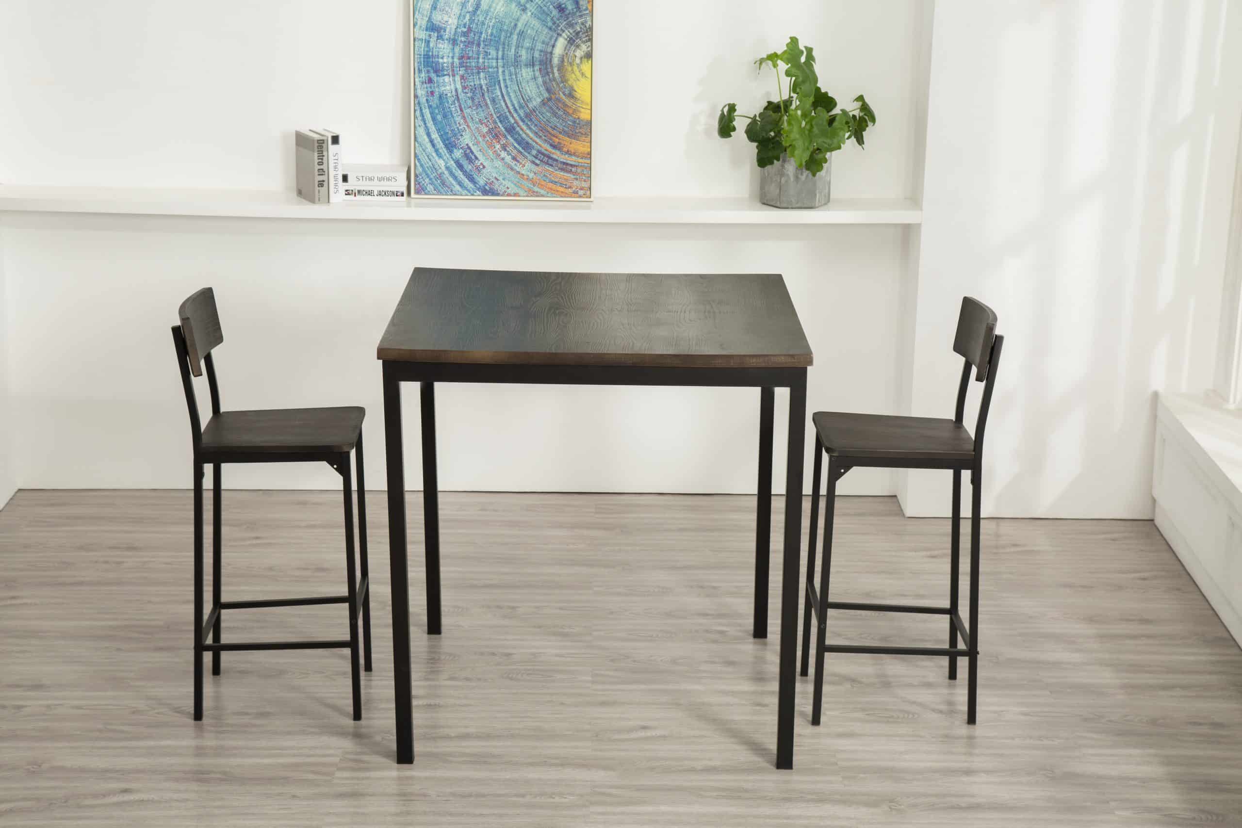 Boraam’s new 3-piece bar height dining set is sure to add a different look to your kitchen game room. Comes with our Americano Counter Height Dining Table and 2 Americano Bar Height Dining Chairs. Each item is constructed with a metal frame and birch wood. This bar height dining set is available in multiple finishes.