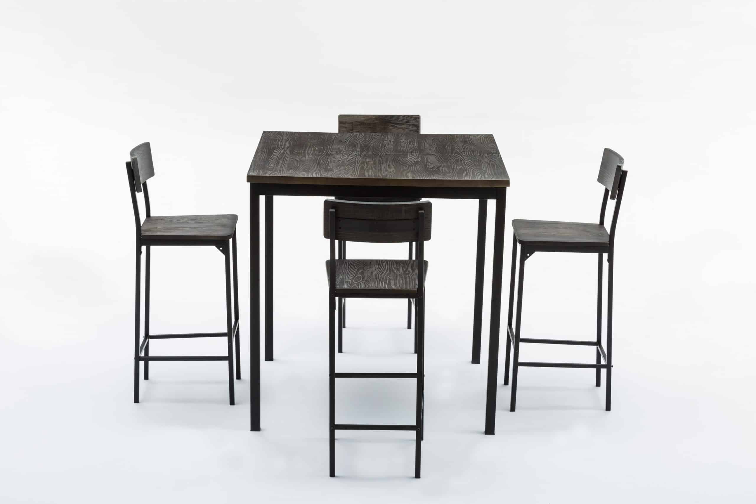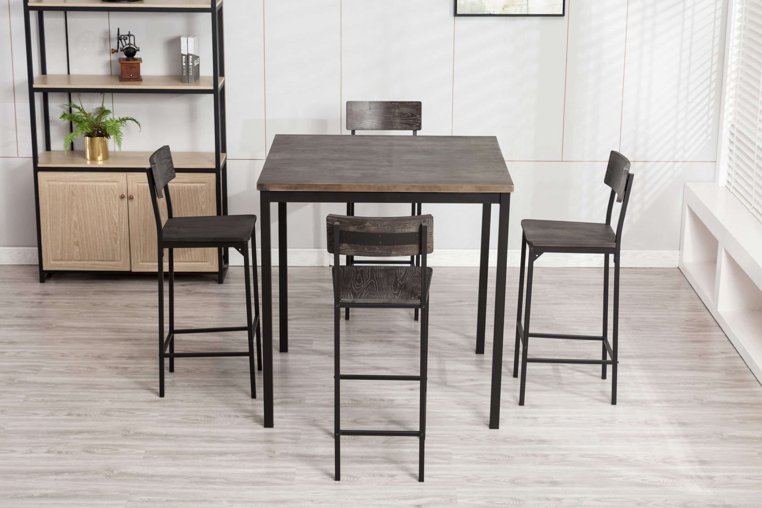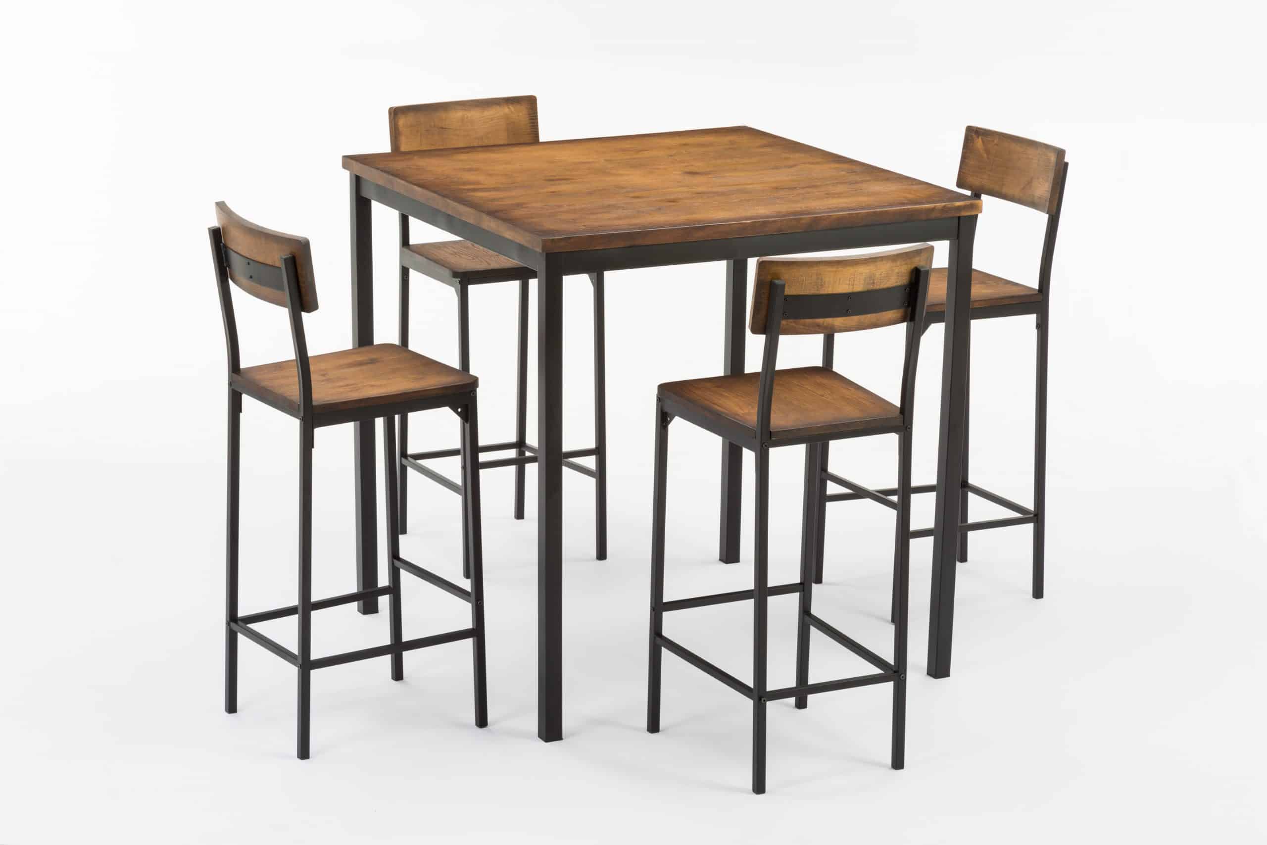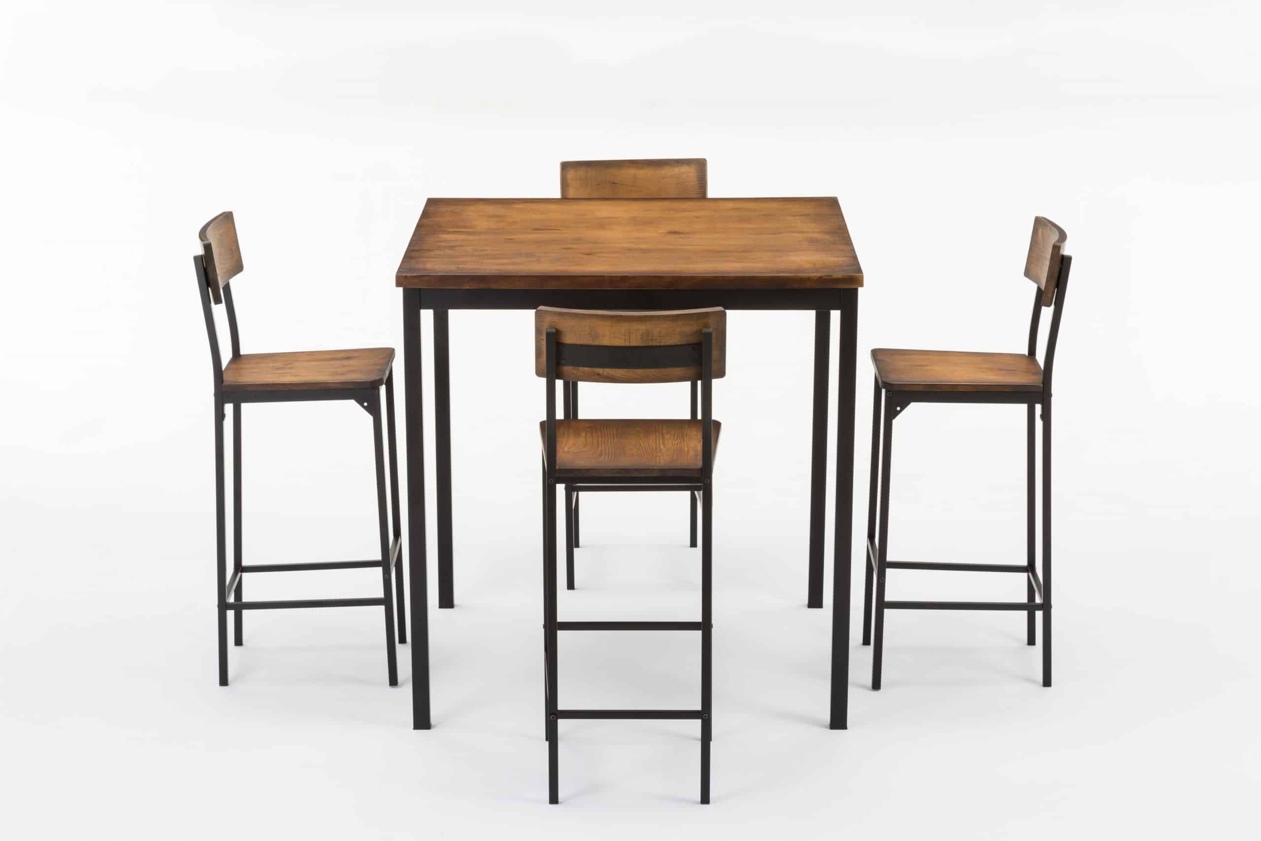 - Set comes with a bar height table and 4 bar stools