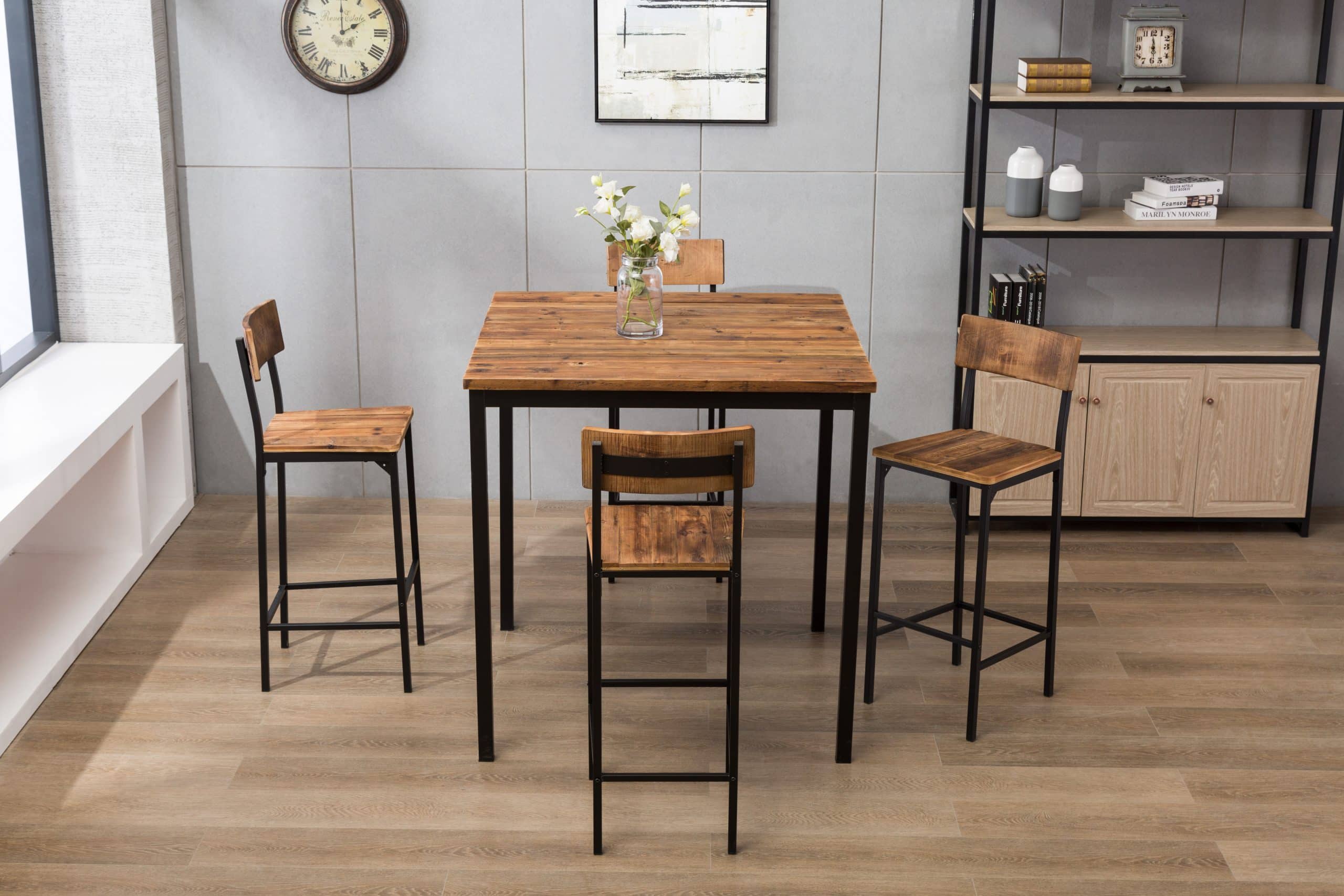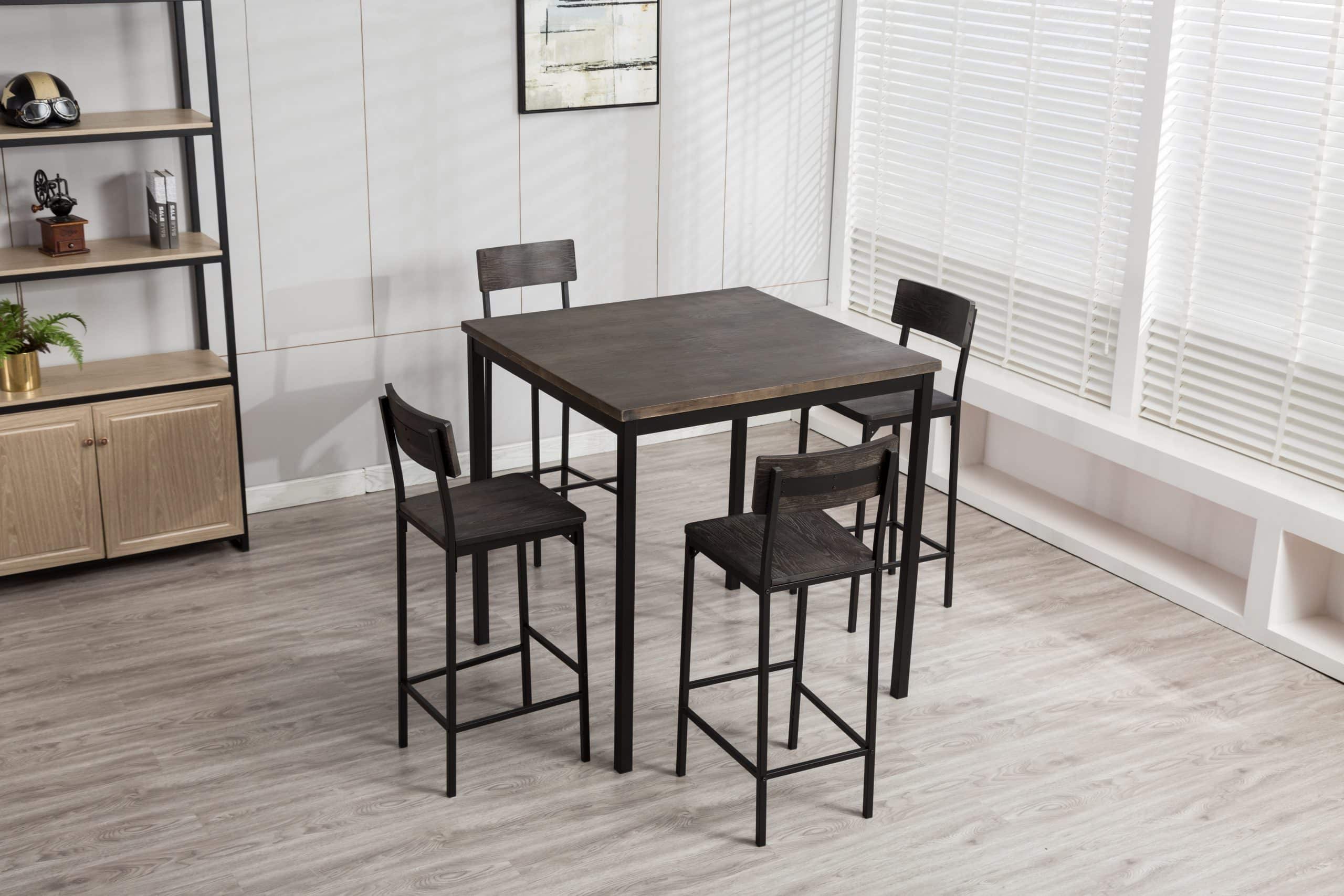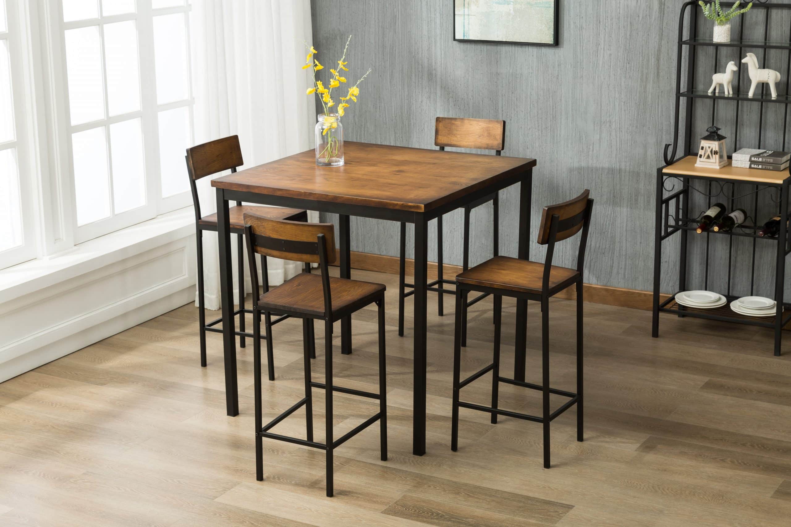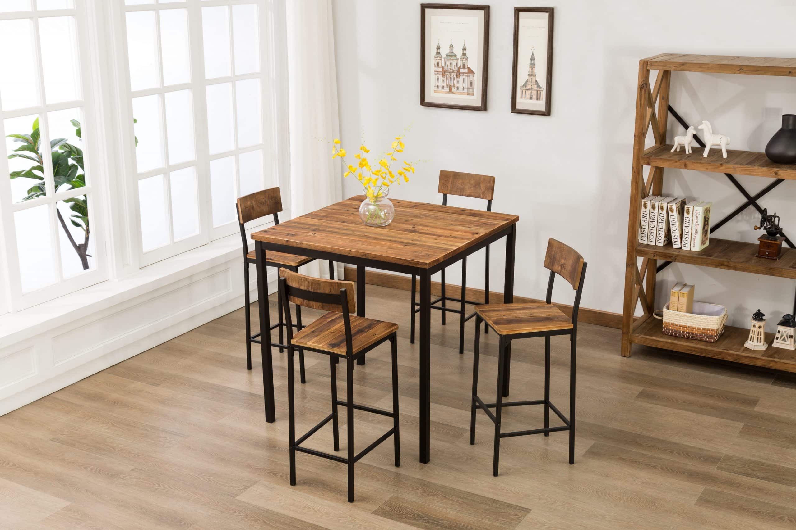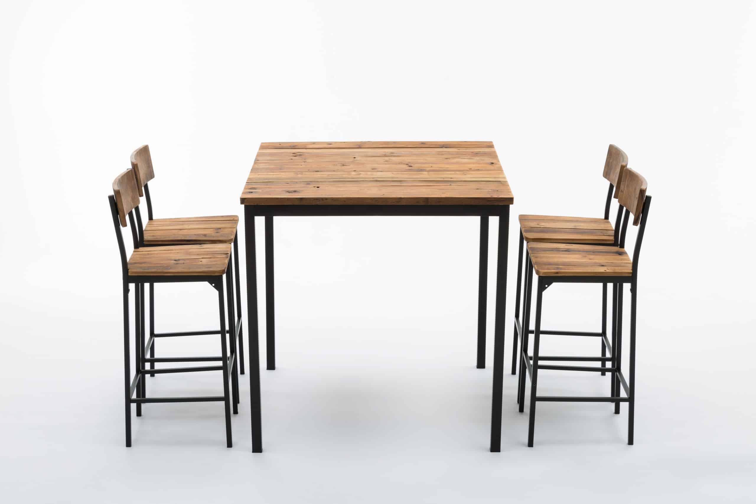 - Set comes with a bar height table and 4 bar stools