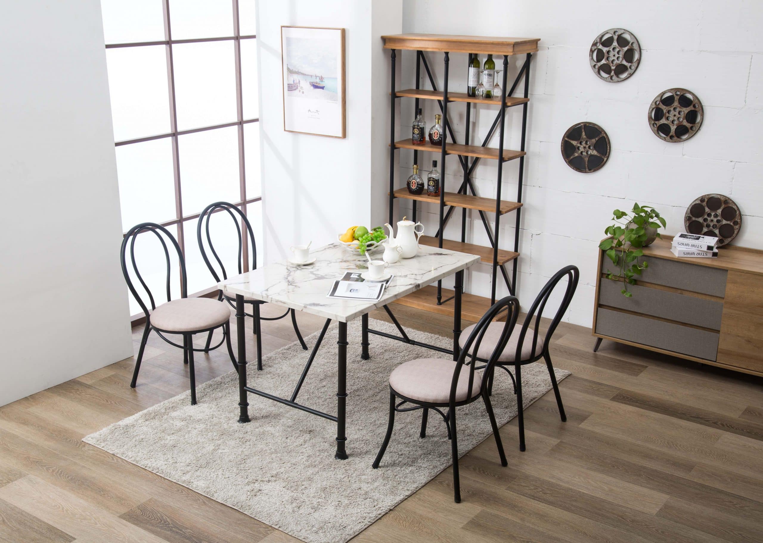 Small-space dining is elegant and effortless with the Anders 5-Piece Dining Set. This five-piece set includes a dining table and four dining chairs – perfect for a family of four. The faux marble tabletop is so stunning, you won’t want to hide it with table runners or centerpieces.