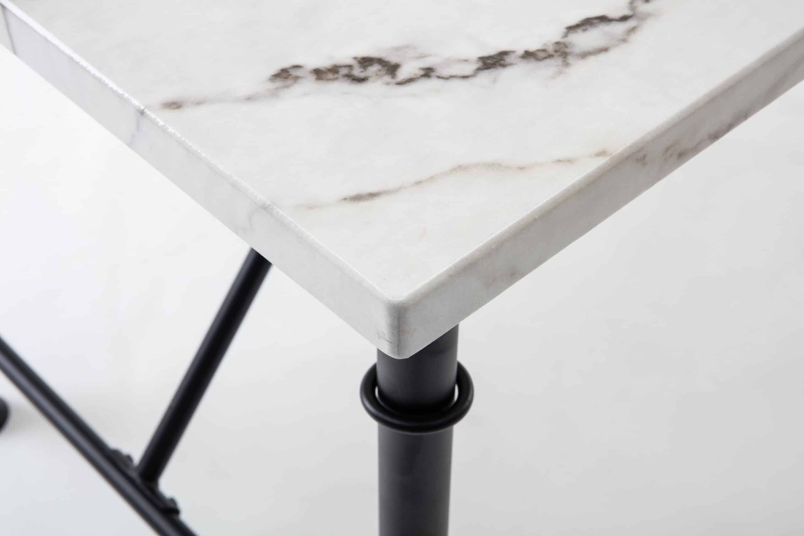 The Anders Dining Table’s faux marble tabletop creates a glamourous wow factor at an affordable price. Crafted from metal, the table’s pipe legs add an industrial edge to the design. The rectangular table comfortably fits four guests, although six can fit if you don’t mind getting a little cozy.