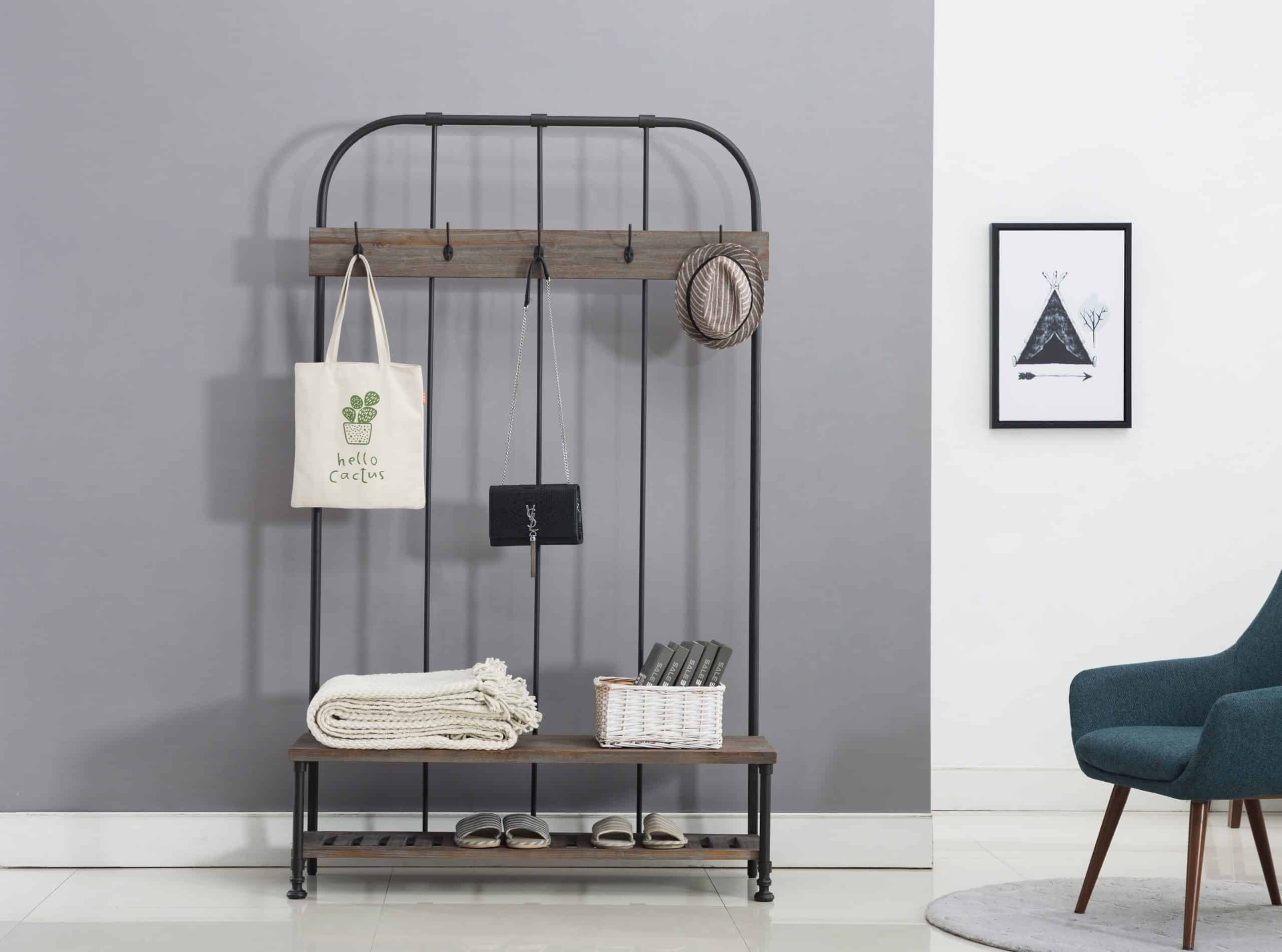 Think of the Annie Hall Tree as your family’s personal assistant: it organizes your entryway or mudroom effortlessly with its storage features. As kids and adults come home, they’ll hang hats, coats, purses, and scarves on the five hanging hooks. A lower slatted shelf stores shoes or backpacks, while the bench provides additional space for other accessories. Crafted from fir wood and metal, the Annie Hall Tree is a stylish, must-have piece in your organizational arsenal.