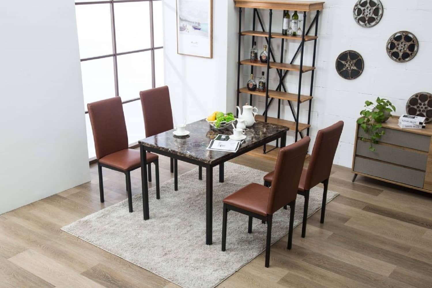 - Metal frames with faux leather upholstery