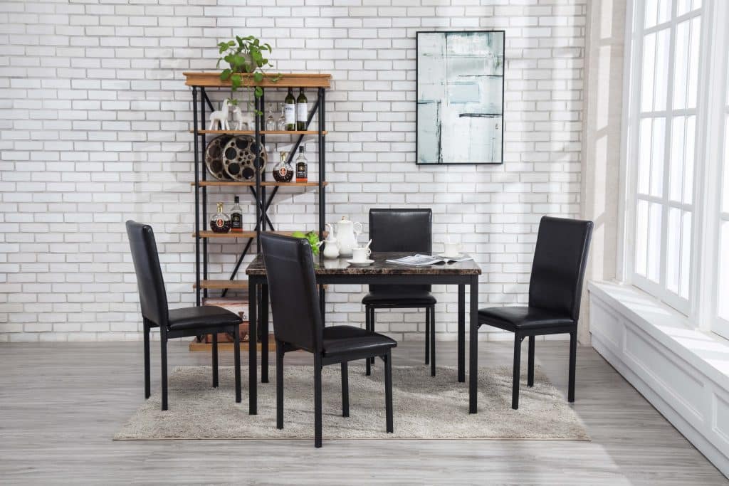It’s easy to bring affordable, enviable design to your kitchenette or dining room with the Arjen Dining Table. This rectangular table features a faux marble tabletop made from MDF with durable paper laminate. It rests on a sturdy metal frame. The table fits four guests (six if you don’t mind getting cozy!). To complete your dining set, pair this table with the matching Arjen Dining Chairs (sold separately).