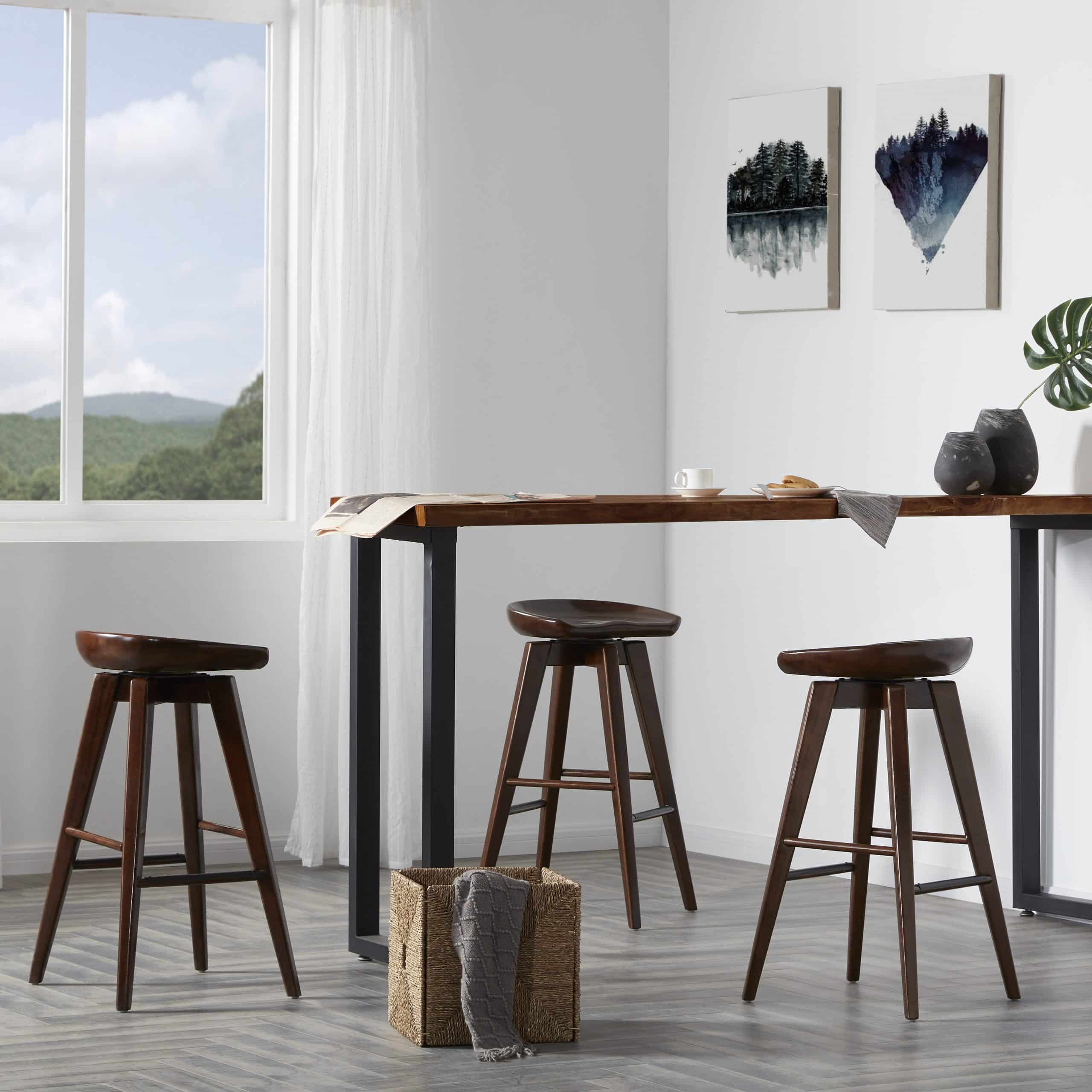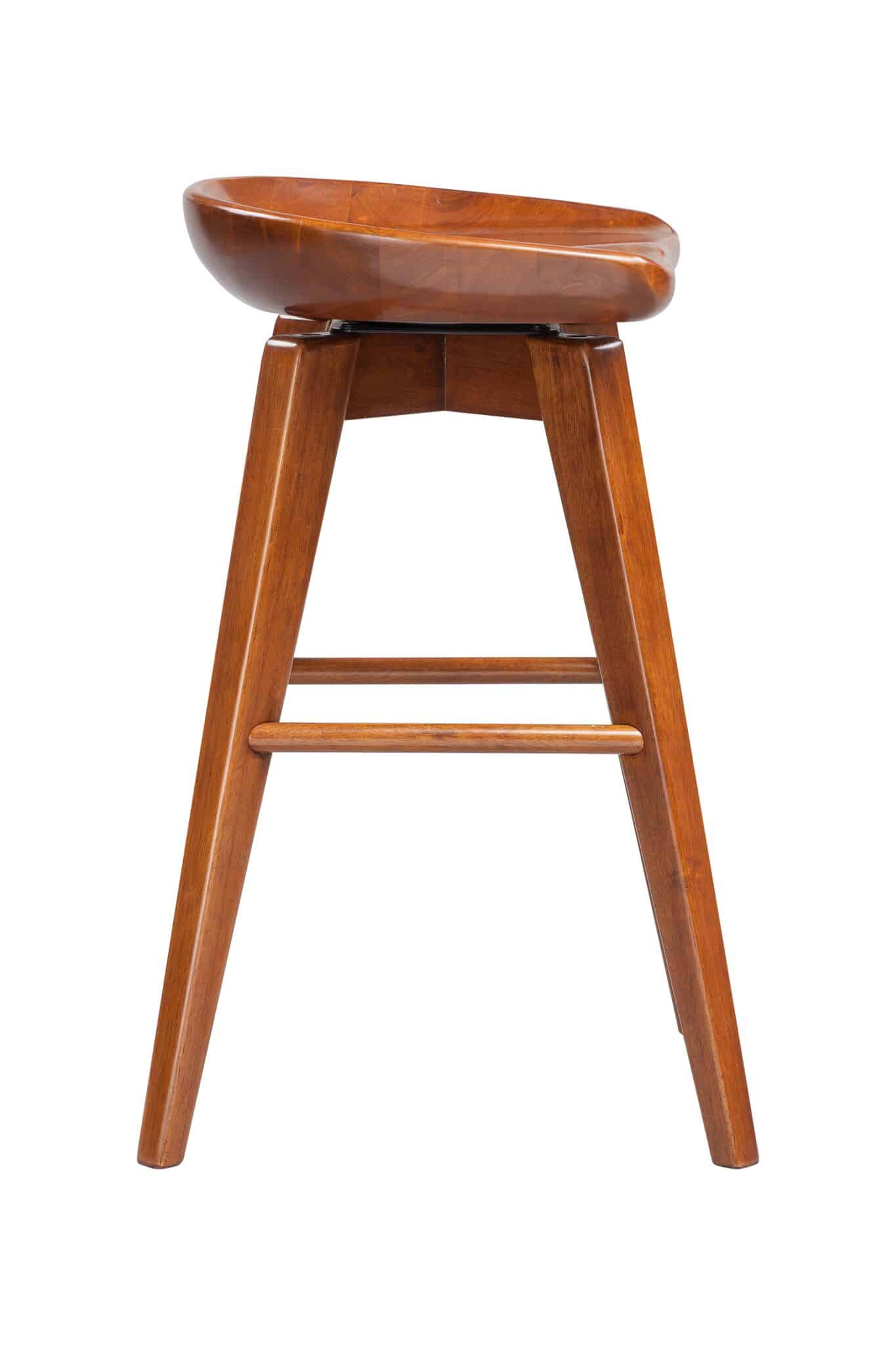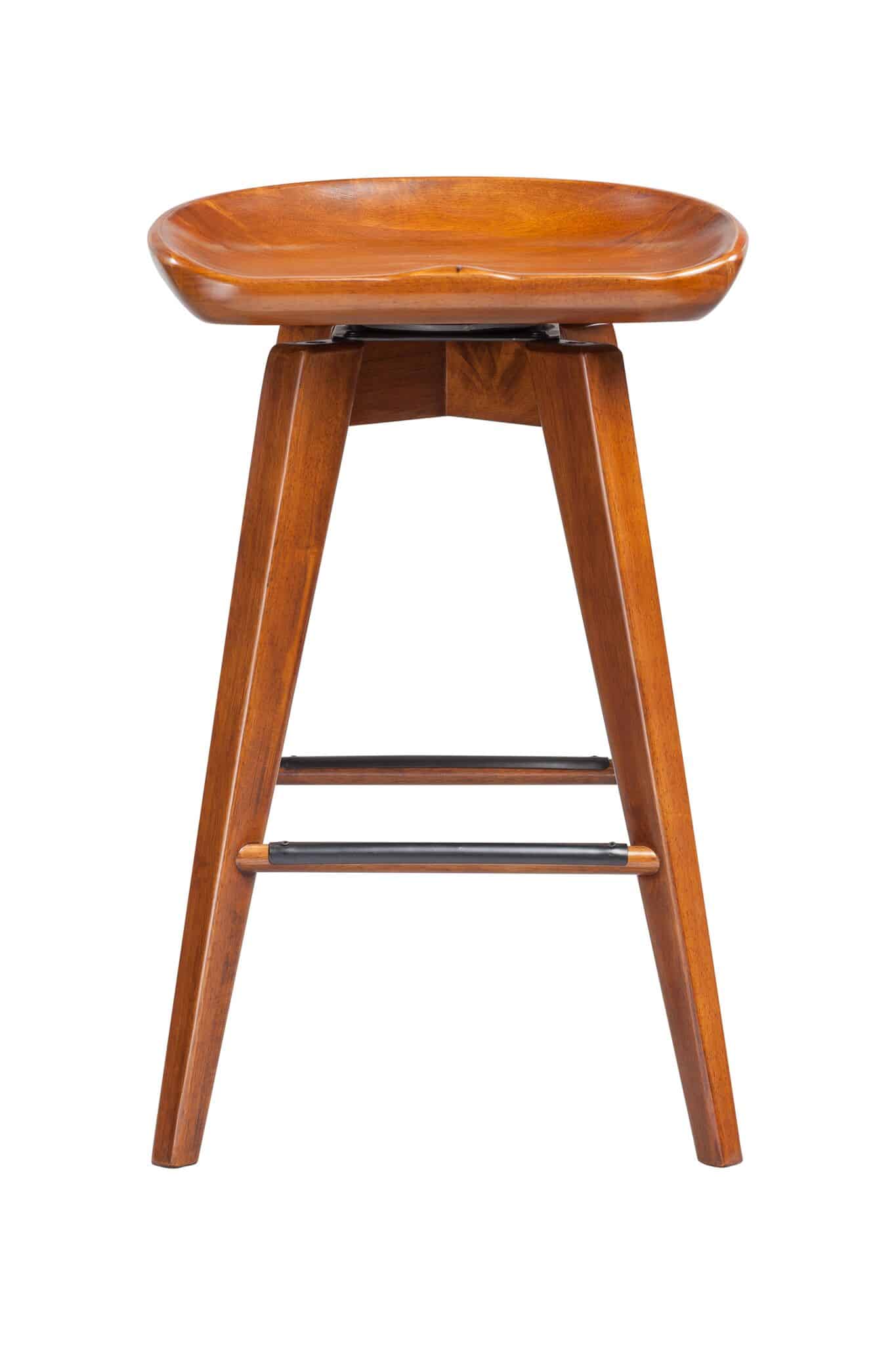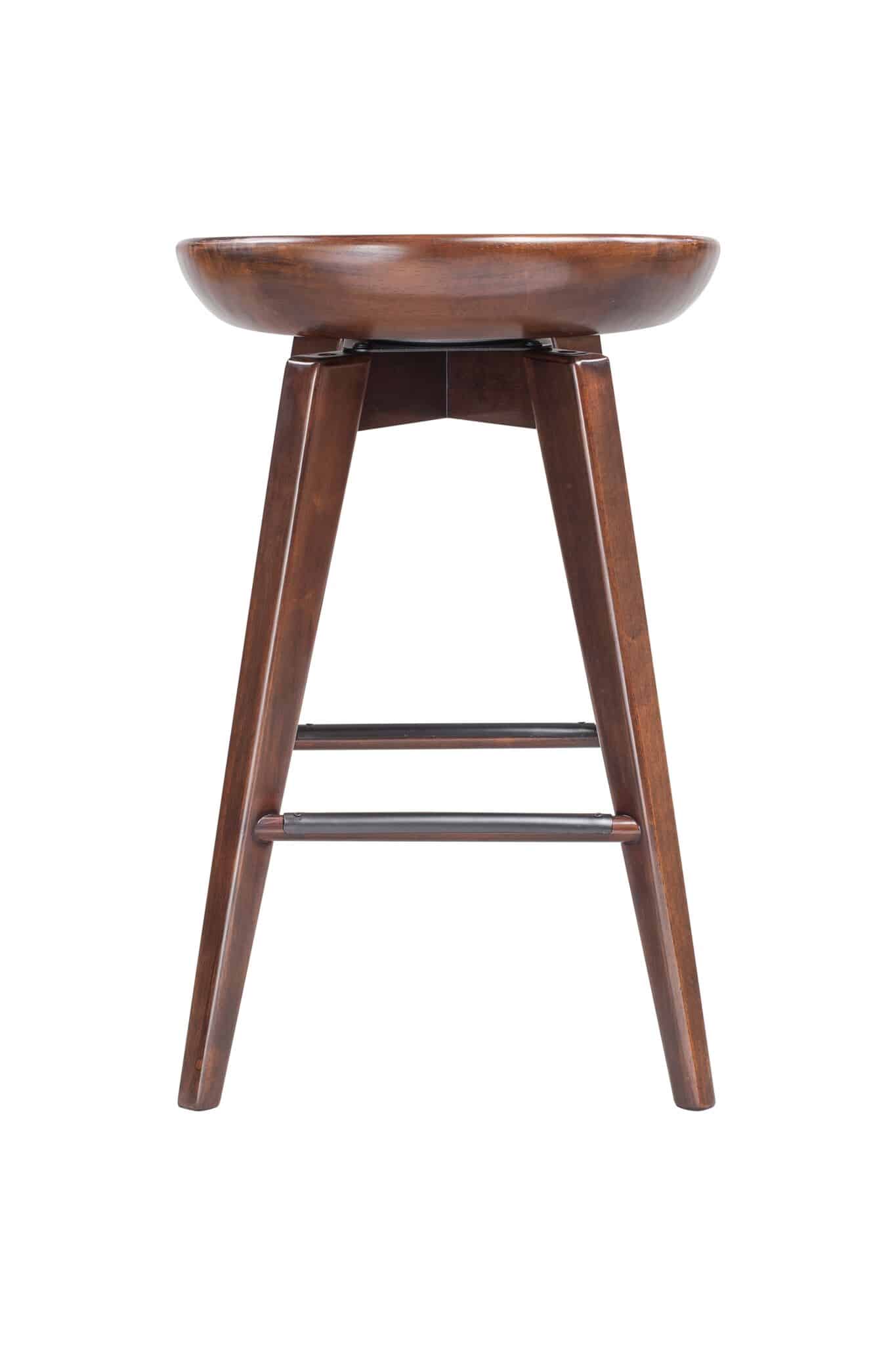 Contemporary yet chic, the Bali Backless Swivel Stool is equal parts accent piece and functional furniture. This backless stool is crafted entirely from hardwood, with a contoured seat, tapered legs, and a rich wood finish. It doesn’t just look good; it’s also built to last. The metal kickplate adds stability while protecting the wood against scuffs and scratches. Transform your home bar, den, or living room with the Bali stool’s handsome good looks. This backless stool is available in counter or bar height, in addition to four different finish options. Customize your space by choosing your preferred color and size.