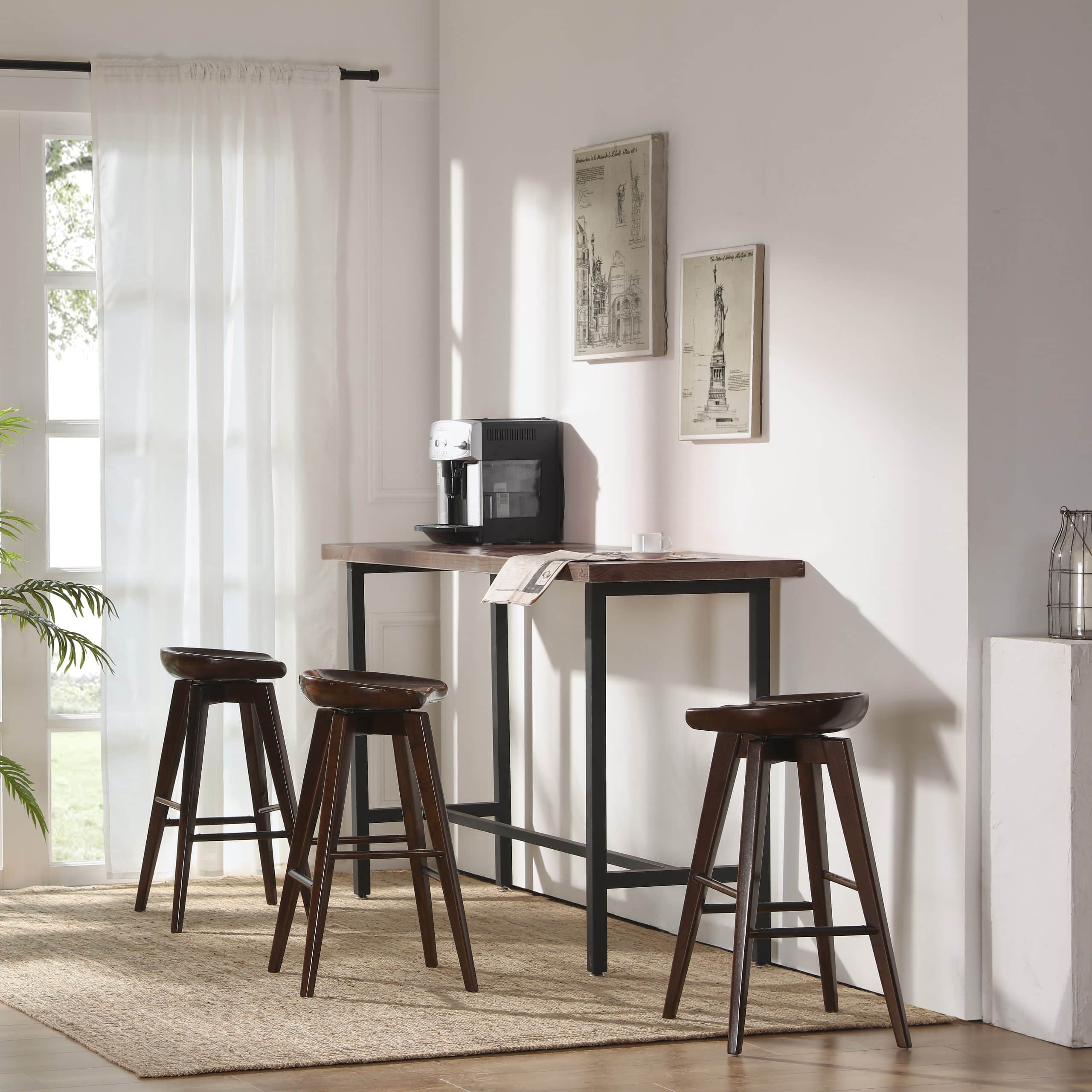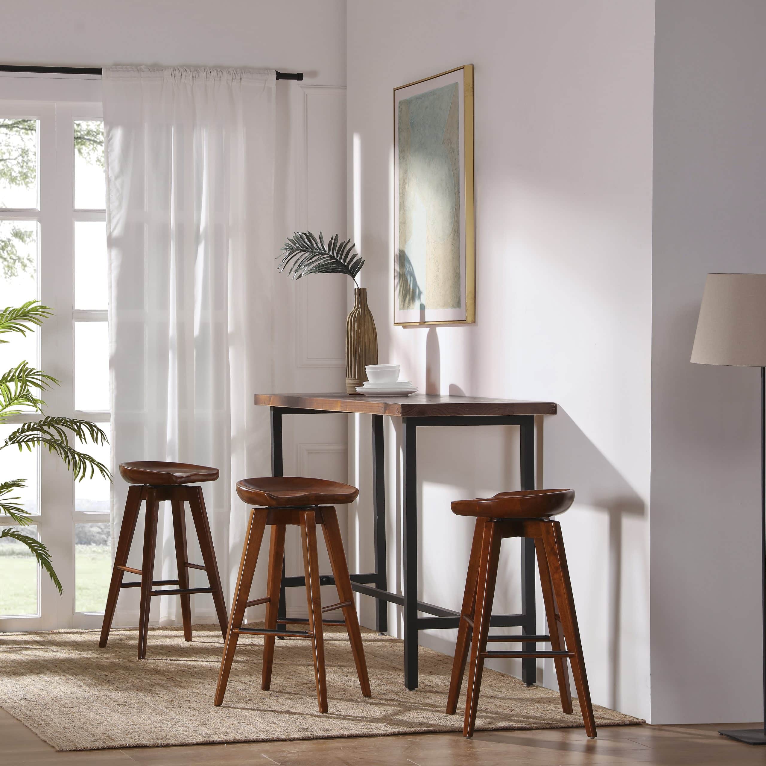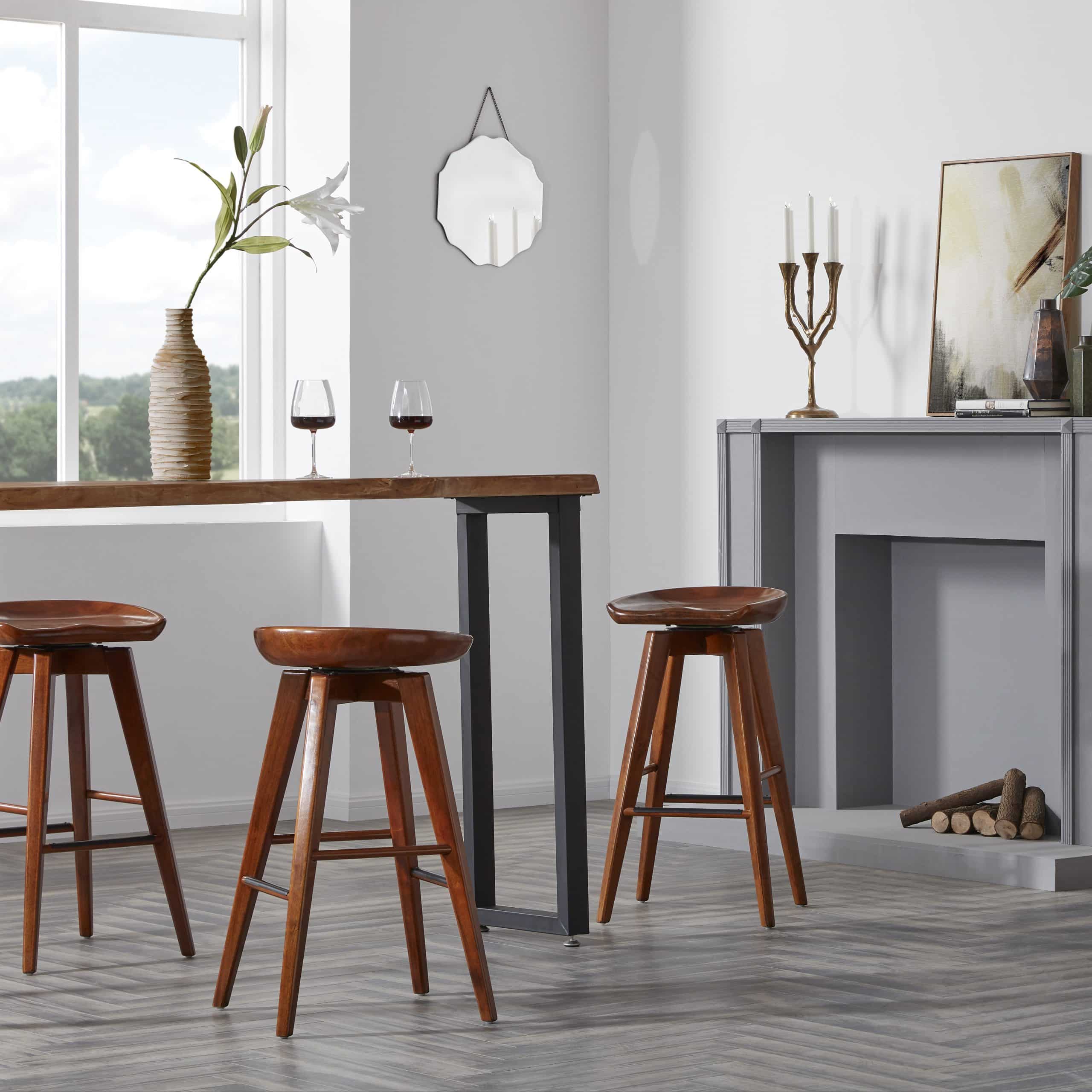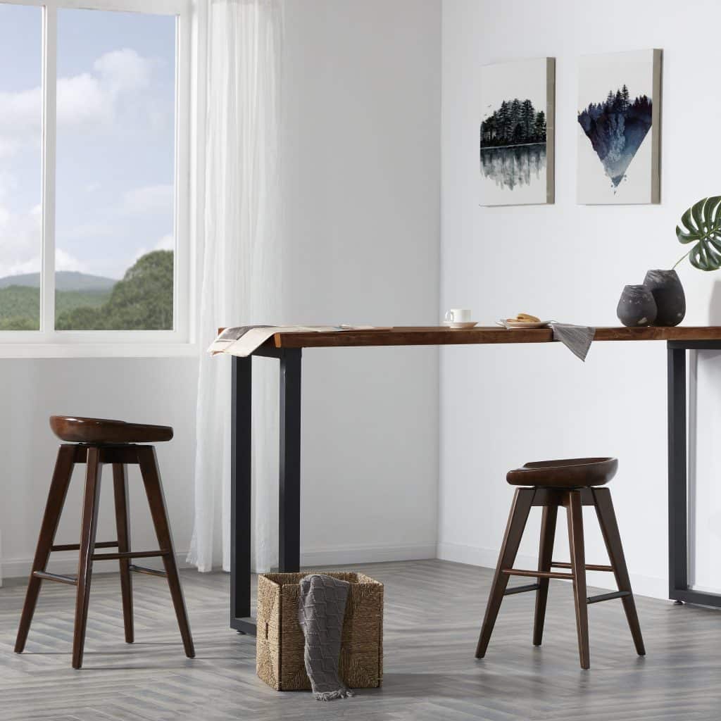 Contemporary yet chic, the Bali Backless Swivel Stool is equal parts accent piece and functional furniture. This backless stool is crafted entirely from hardwood, with a contoured seat, tapered legs, and a rich wood finish. It doesn’t just look good; it’s also built to last. The metal kickplate adds stability while protecting the wood against scuffs and scratches. Transform your home bar, den, or living room with the Bali stool’s handsome good looks. This backless stool is available in counter or bar height, in addition to four different finish options. Customize your space by choosing your preferred color and size.