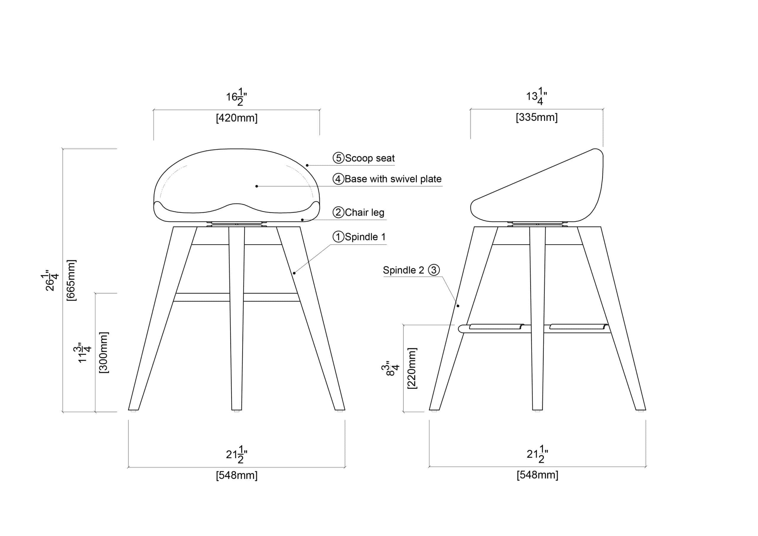 - Tapered legs and stretchers on each side for added strength and stablitity