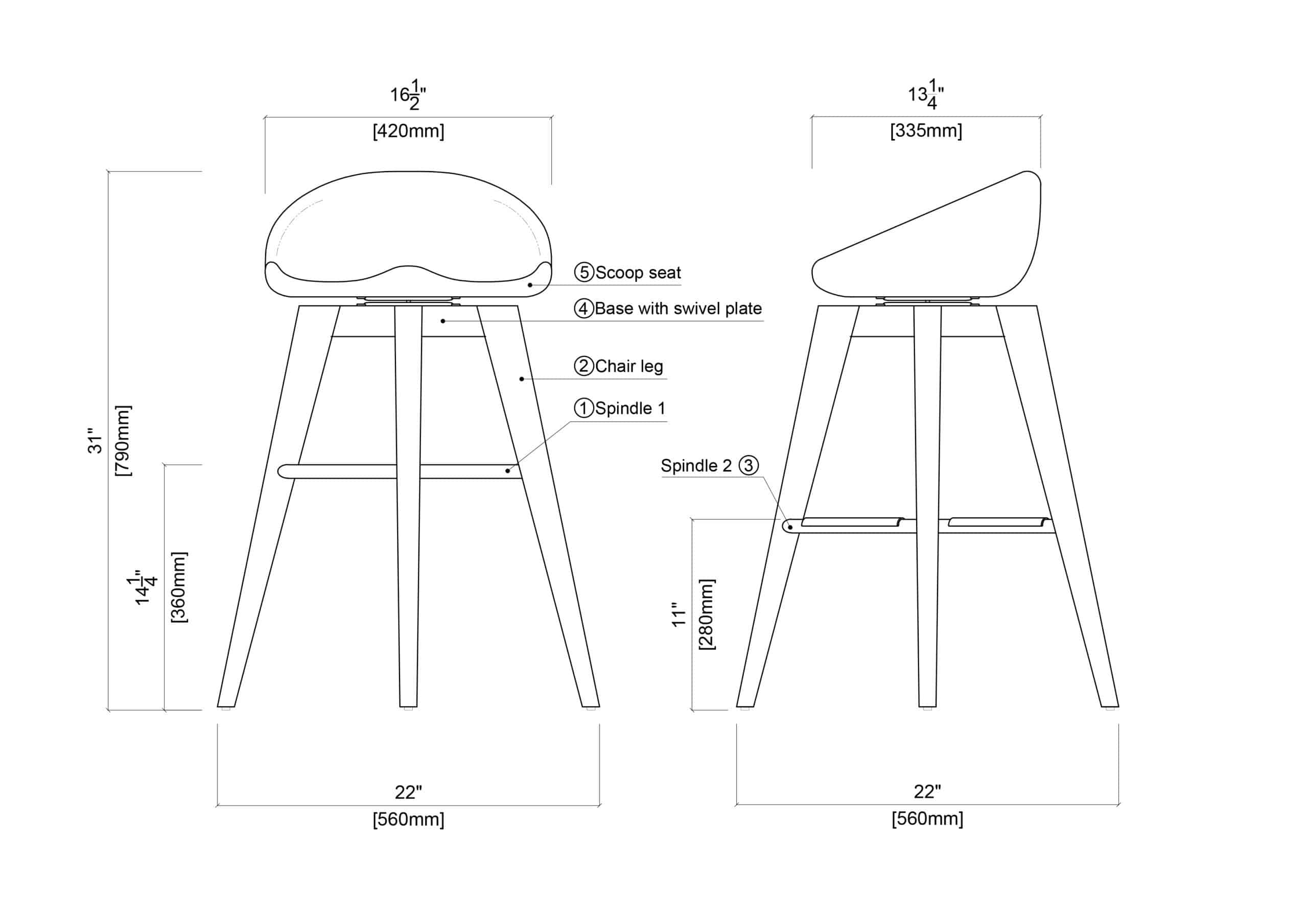- Solid hardwood construction