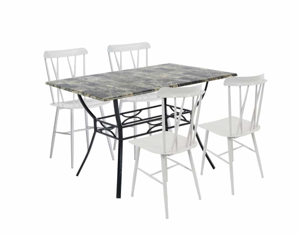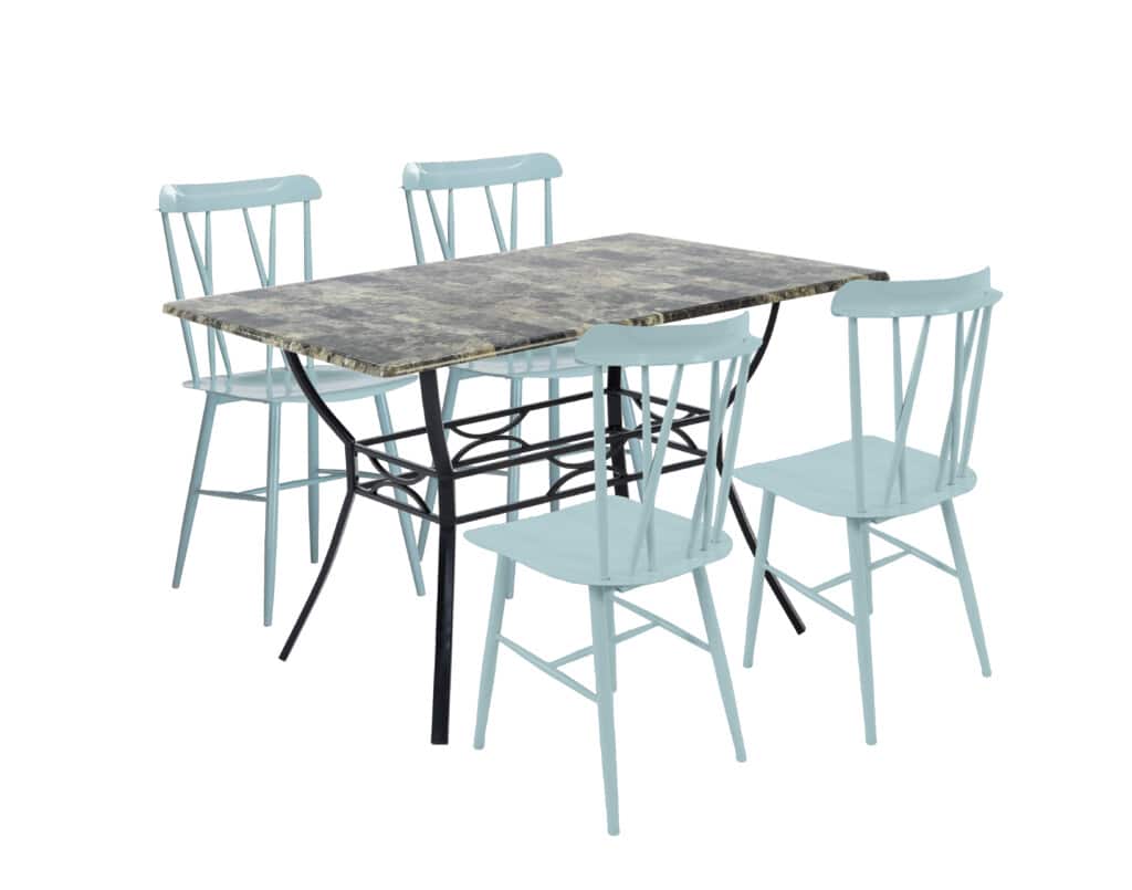 - The dining table and chair set accommodates 4 people
