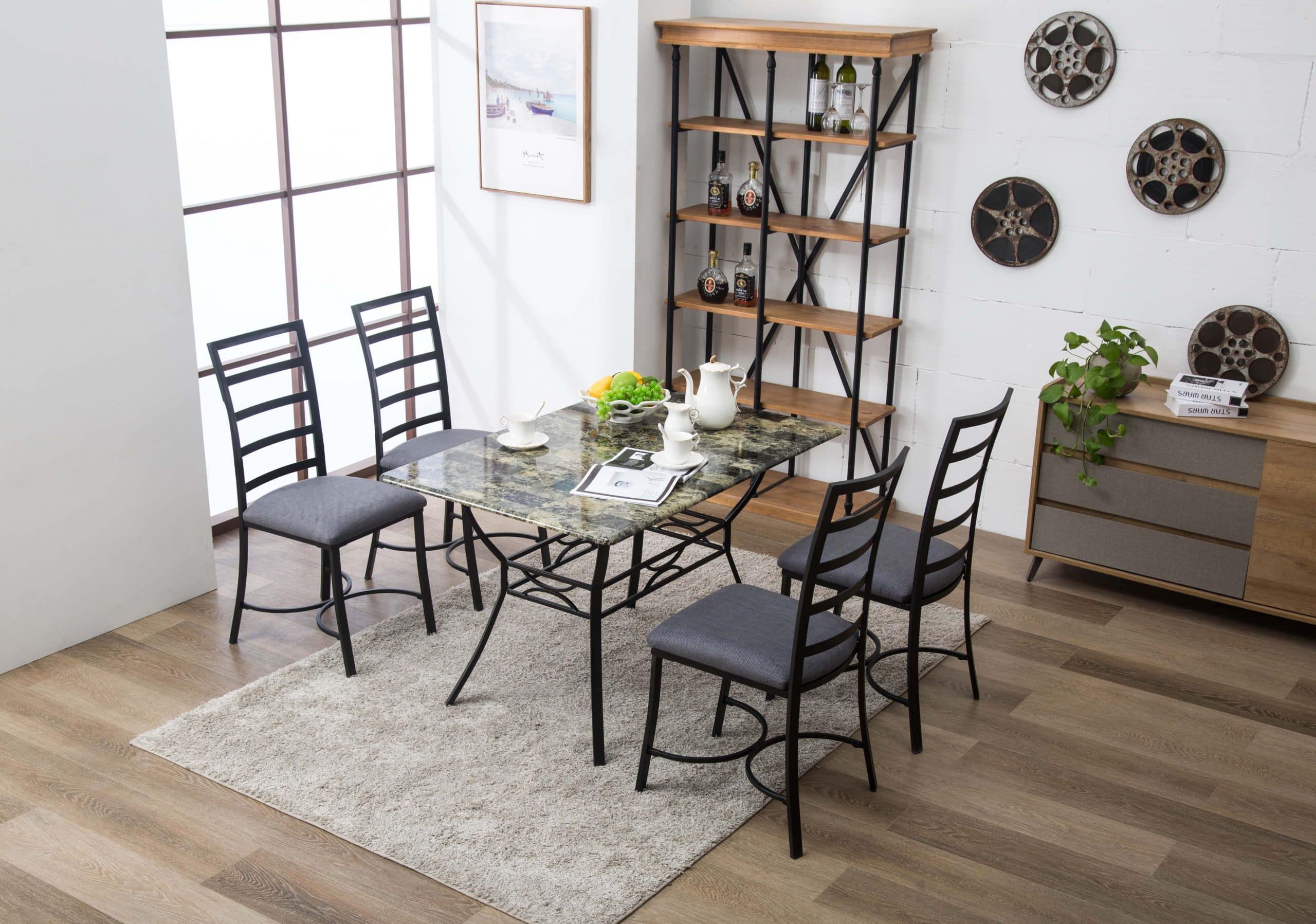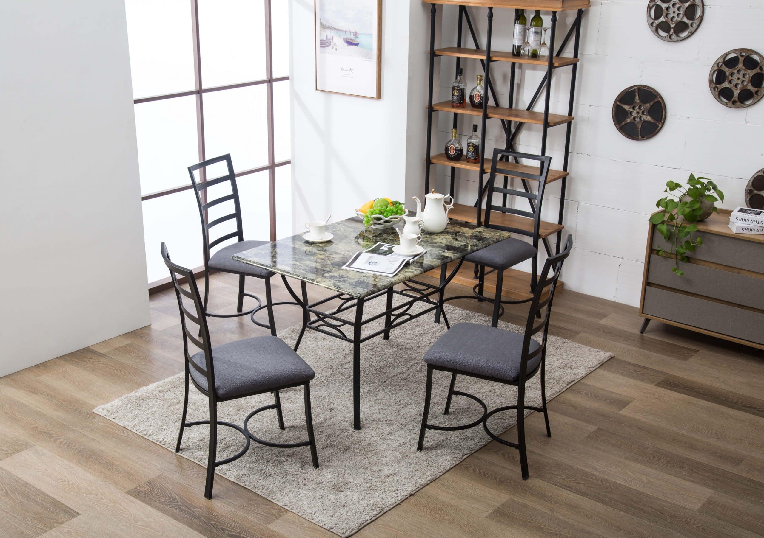 Upgrade from dinners at the coffee table or your desk to meals at the Bastian 5-Piece Dining Set. This affordable yet trend-led dining set includes a faux marble dining table with four matching ladderback chairs. Lightly cushioned upholstery provides comfort while you’re seated. Entertain guests or enjoy meals with the family around the Bastian.