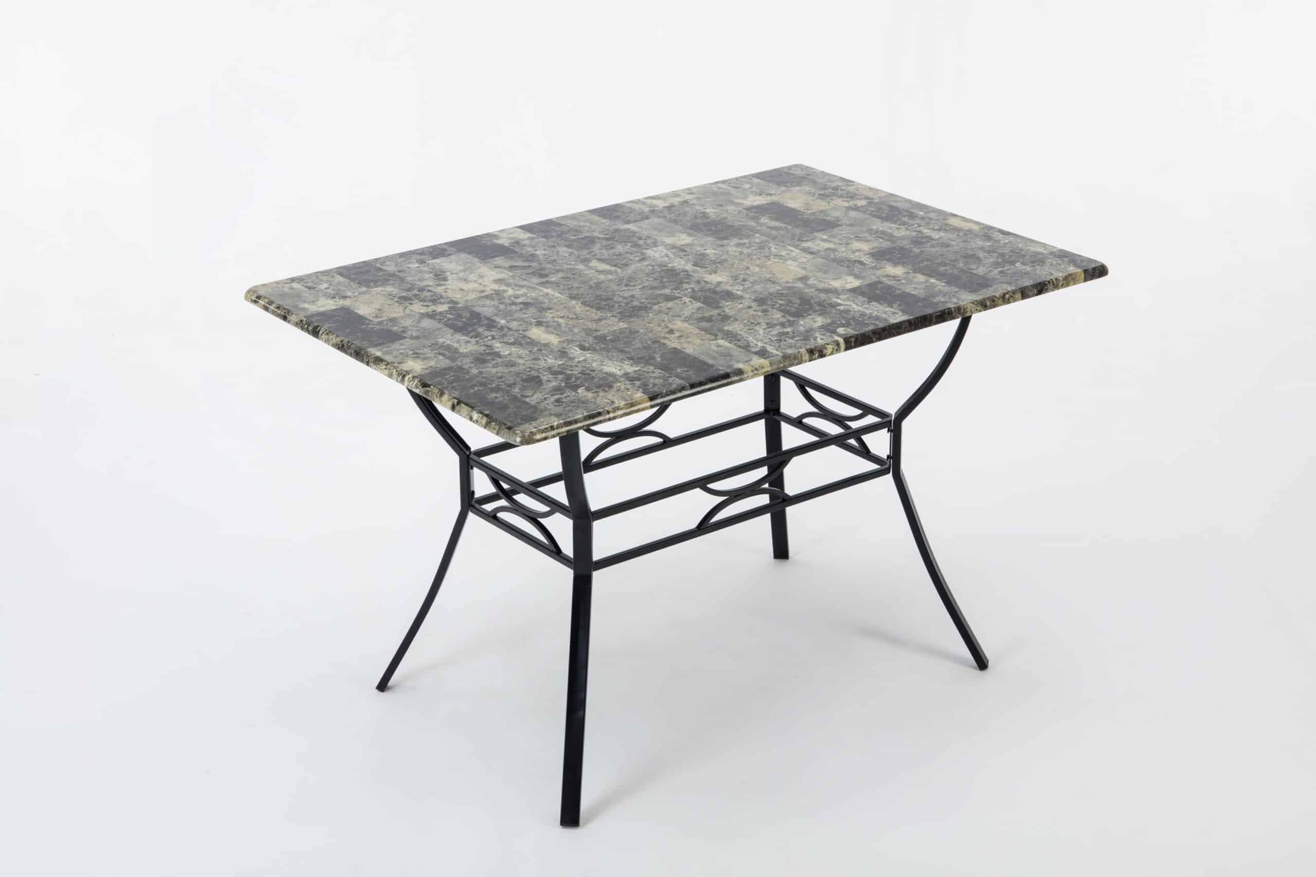 - Dining table with rectangular faux marble top gives the table a bright and modern appearance