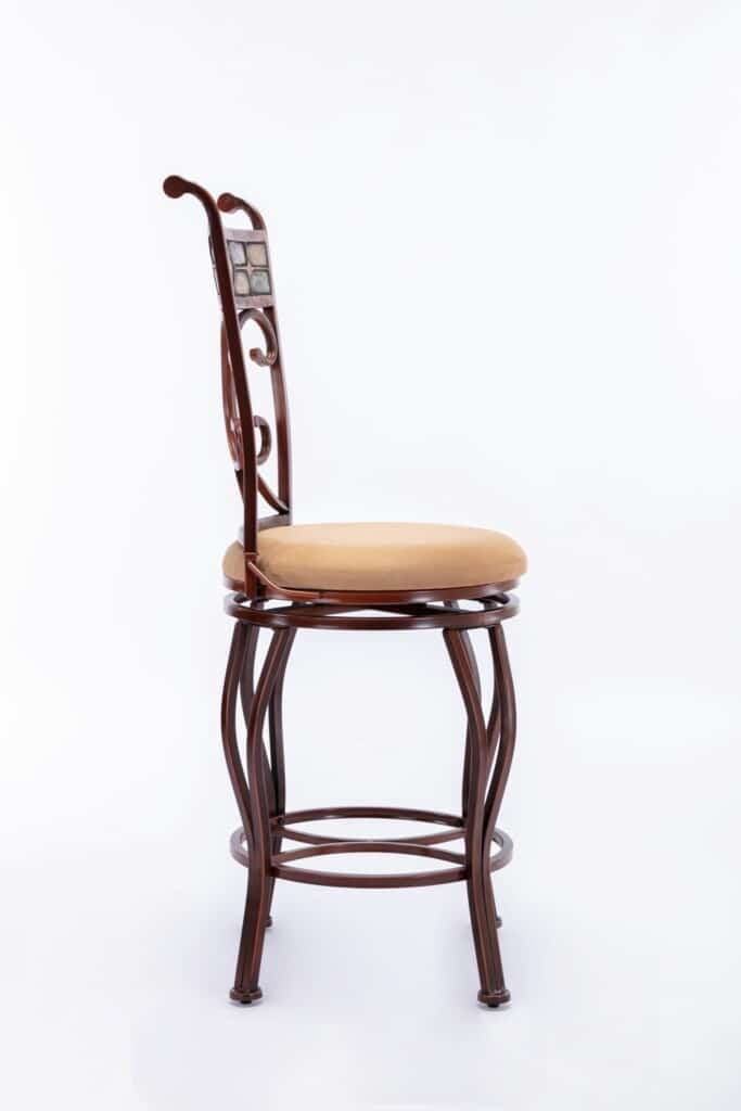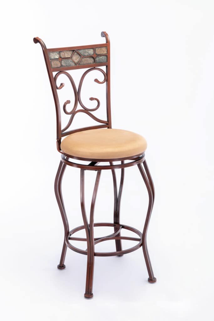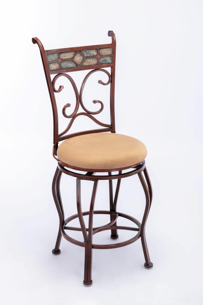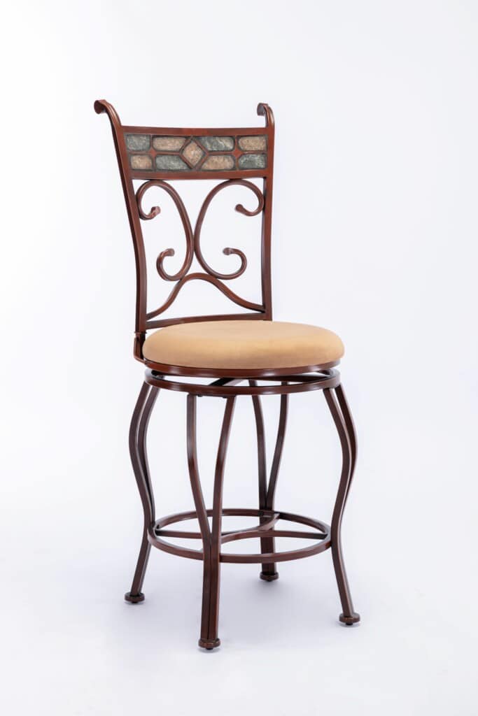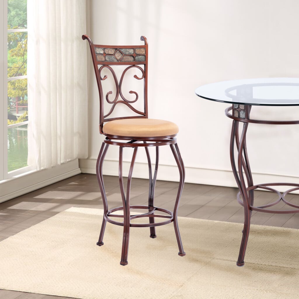 Whether you’re looking for the finishing touch to your home bar or counter, or you’re hoping to create a custom pub set, the Beau Swivel Stool is raring to go. This metal swivel stool features decorative mosaic slate panels on the backrest adding a beautiful level of warmth to your decor. The plump high-density foam seat cushion is covered with beige microfiber upholstery. Prop your feet on the durable footrest for comfortable long-lasting seating. Pair this stool with the matching Beau Pub Table (sold separately) for a match made in heaven.