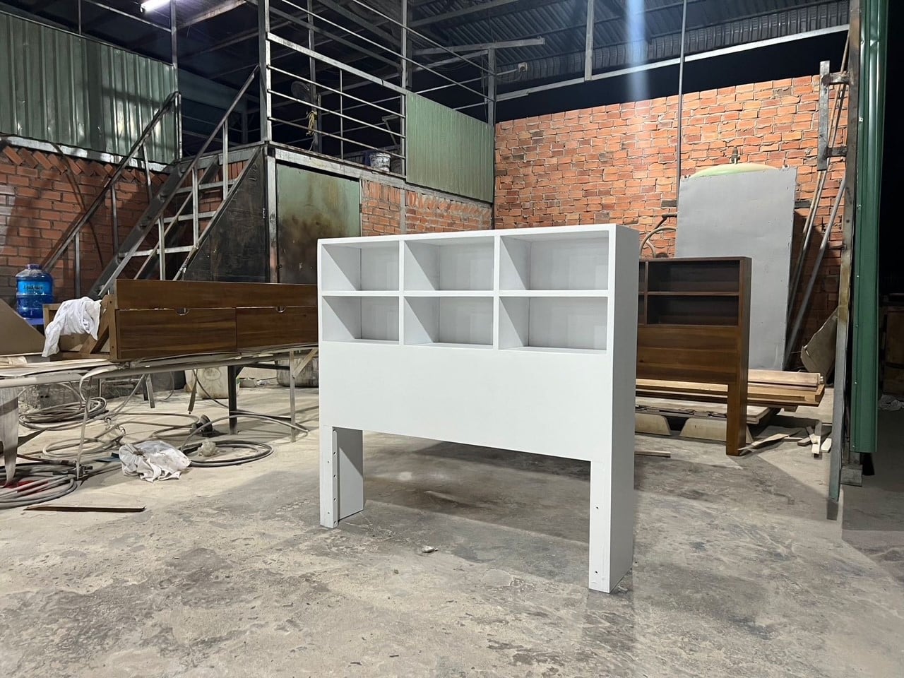 | Wooden Full Size Bookcase Headboard with 6 Open Shelves, Taupe Brown or White |