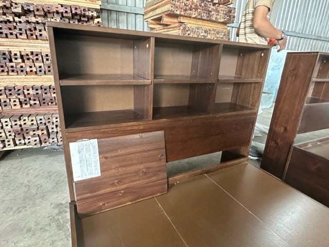 Wooden Full Size Bookcase Headboard with 6 Open Shelves, Taupe Brown