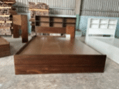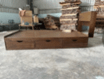 Wooden Full Size Bed Frame with 3 Drawers and Grain Details, Taupe Brown