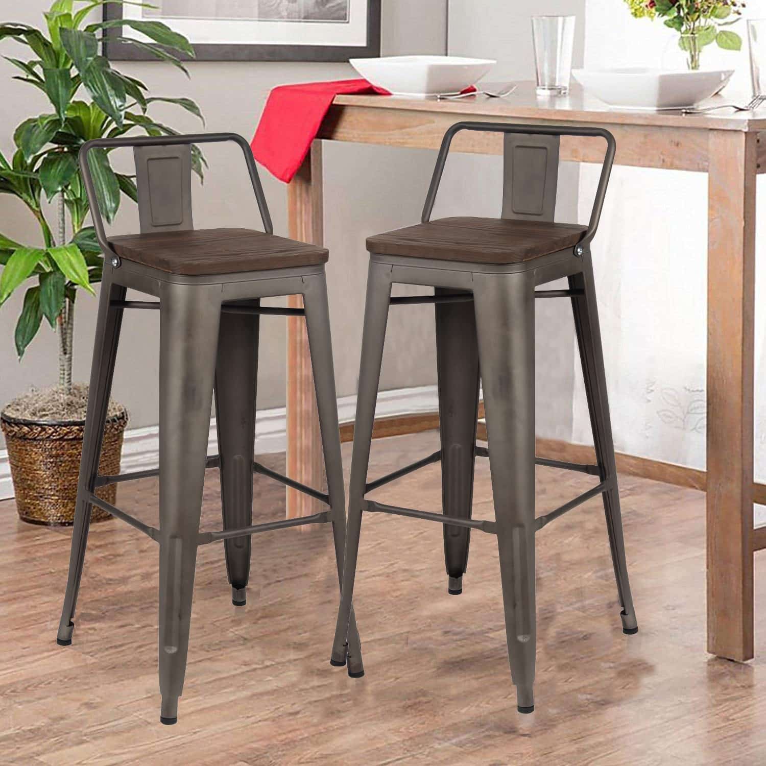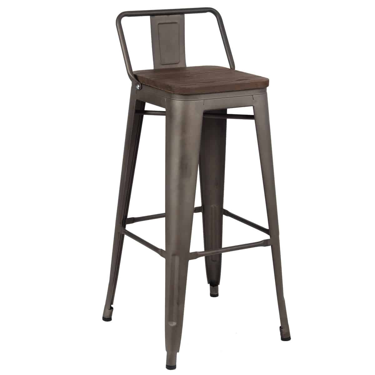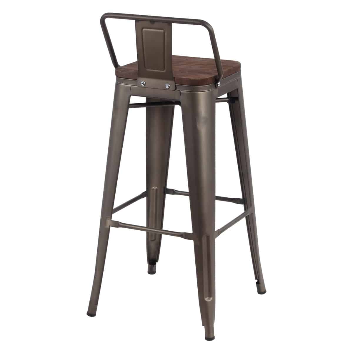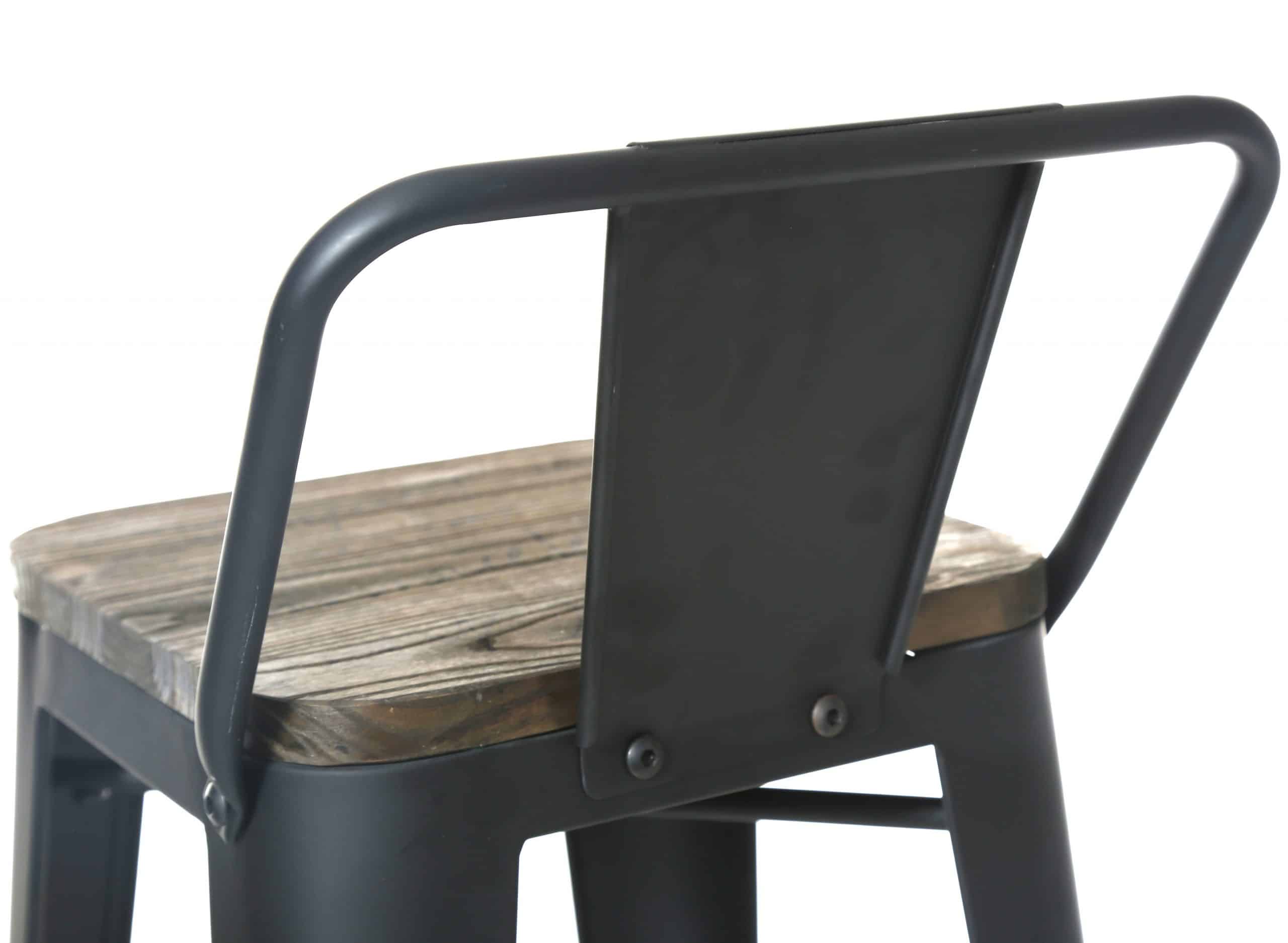 Metal stools, set of 4, black or gray, backrest, elm wood seat