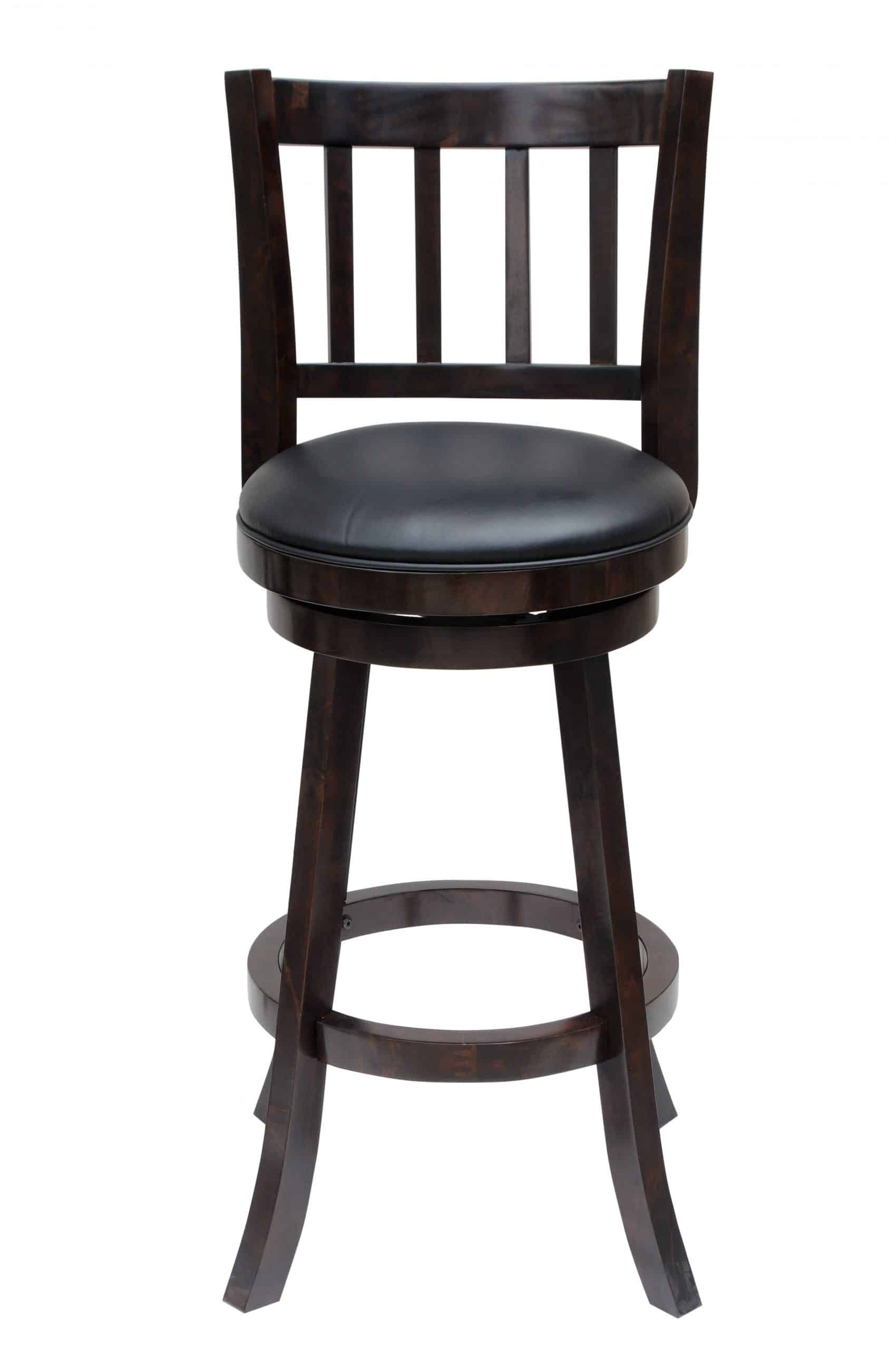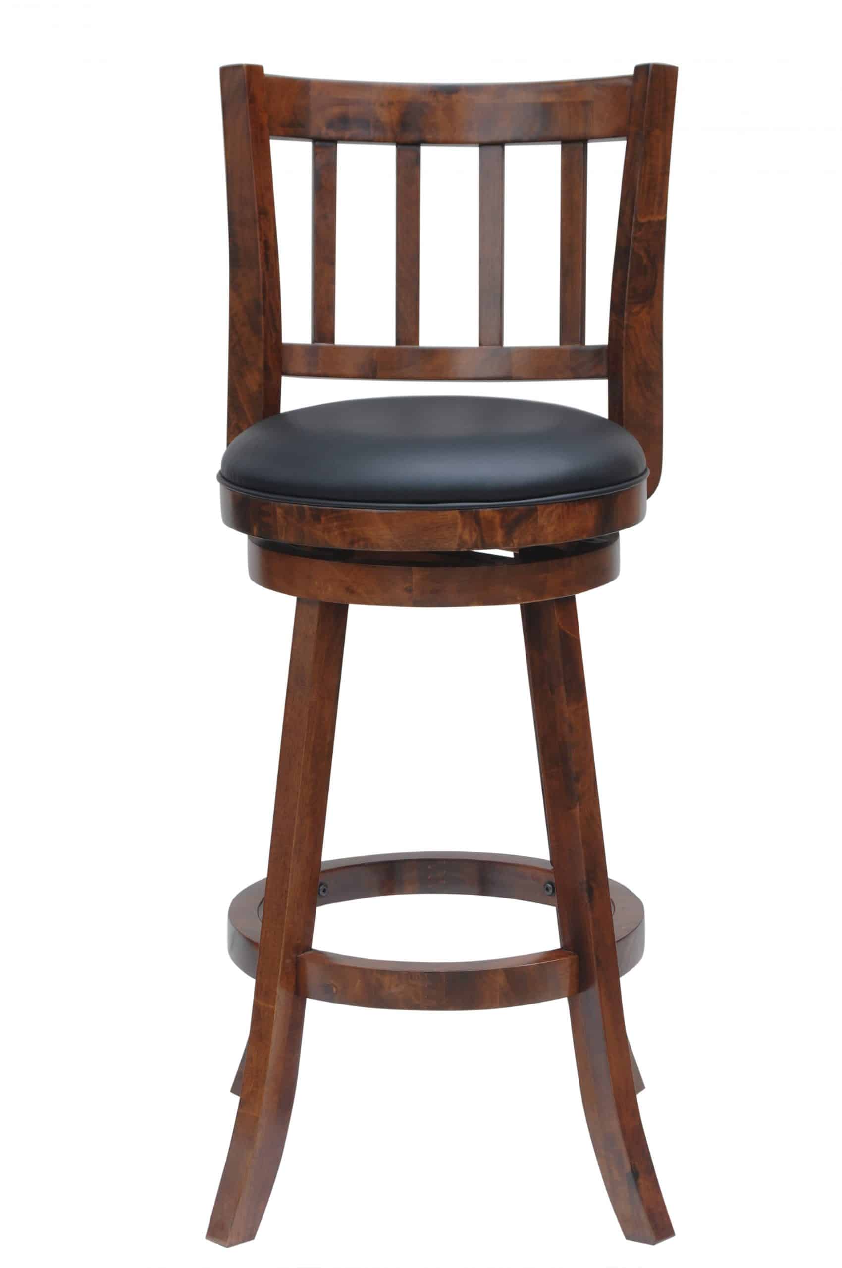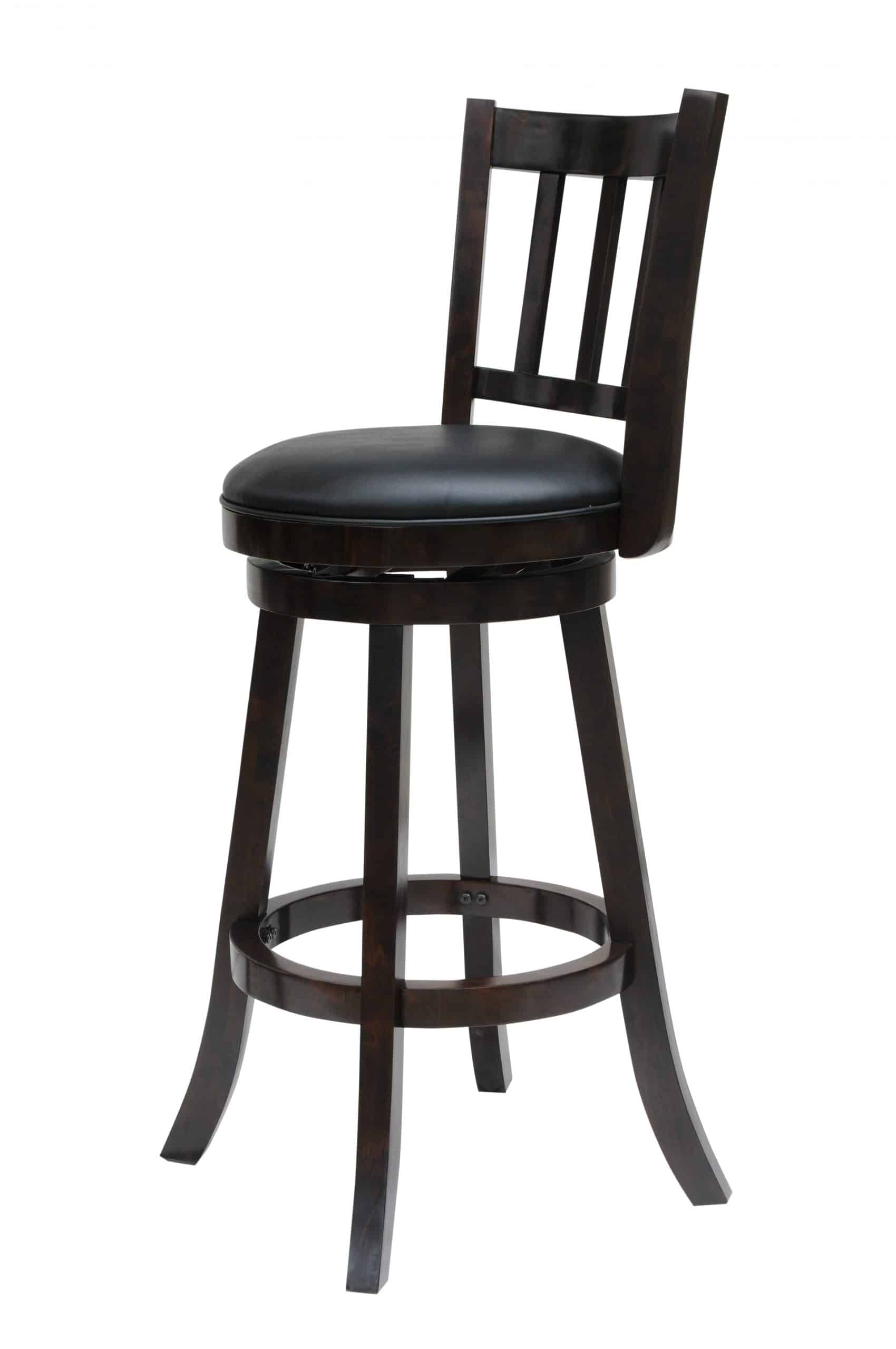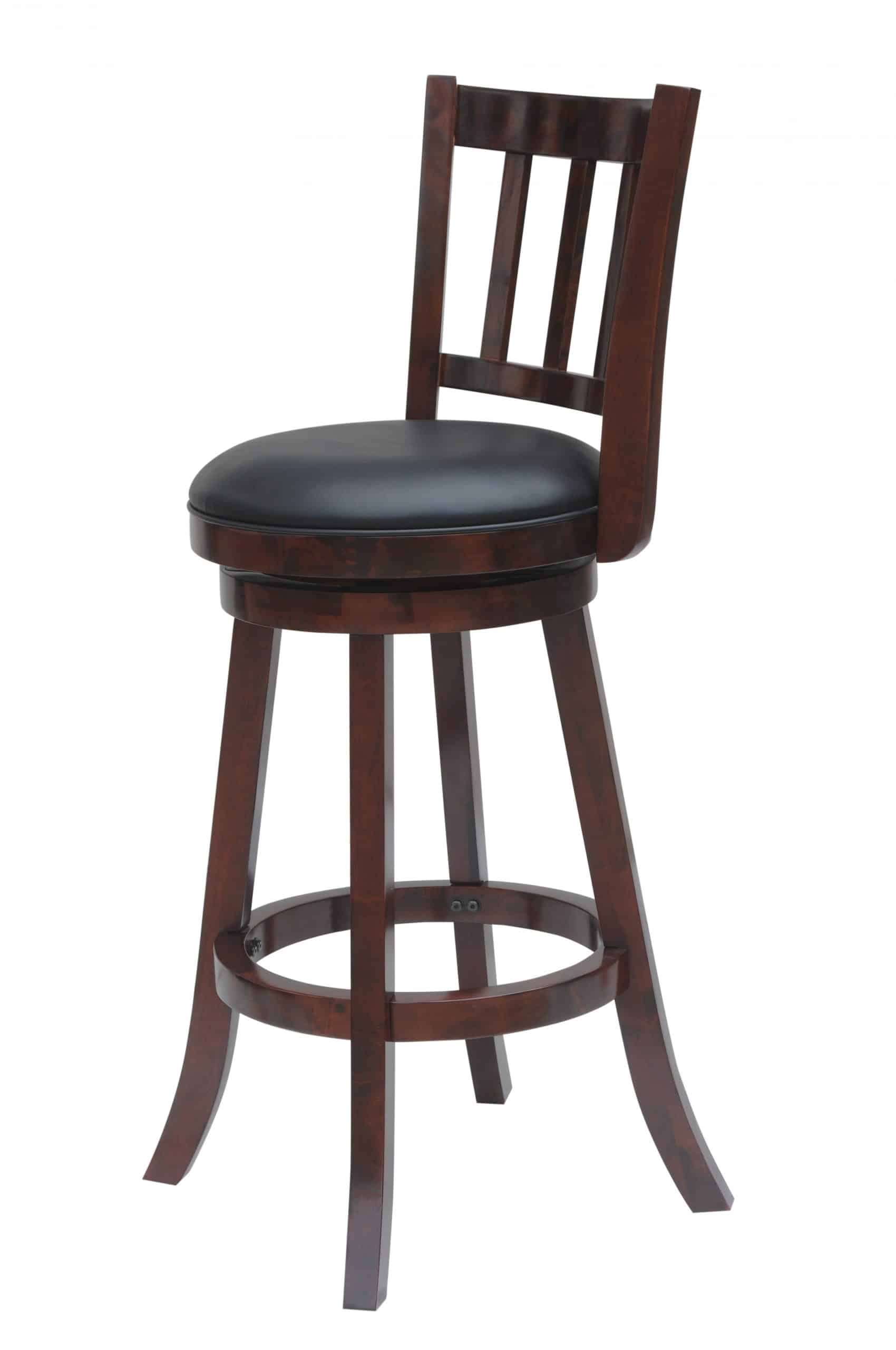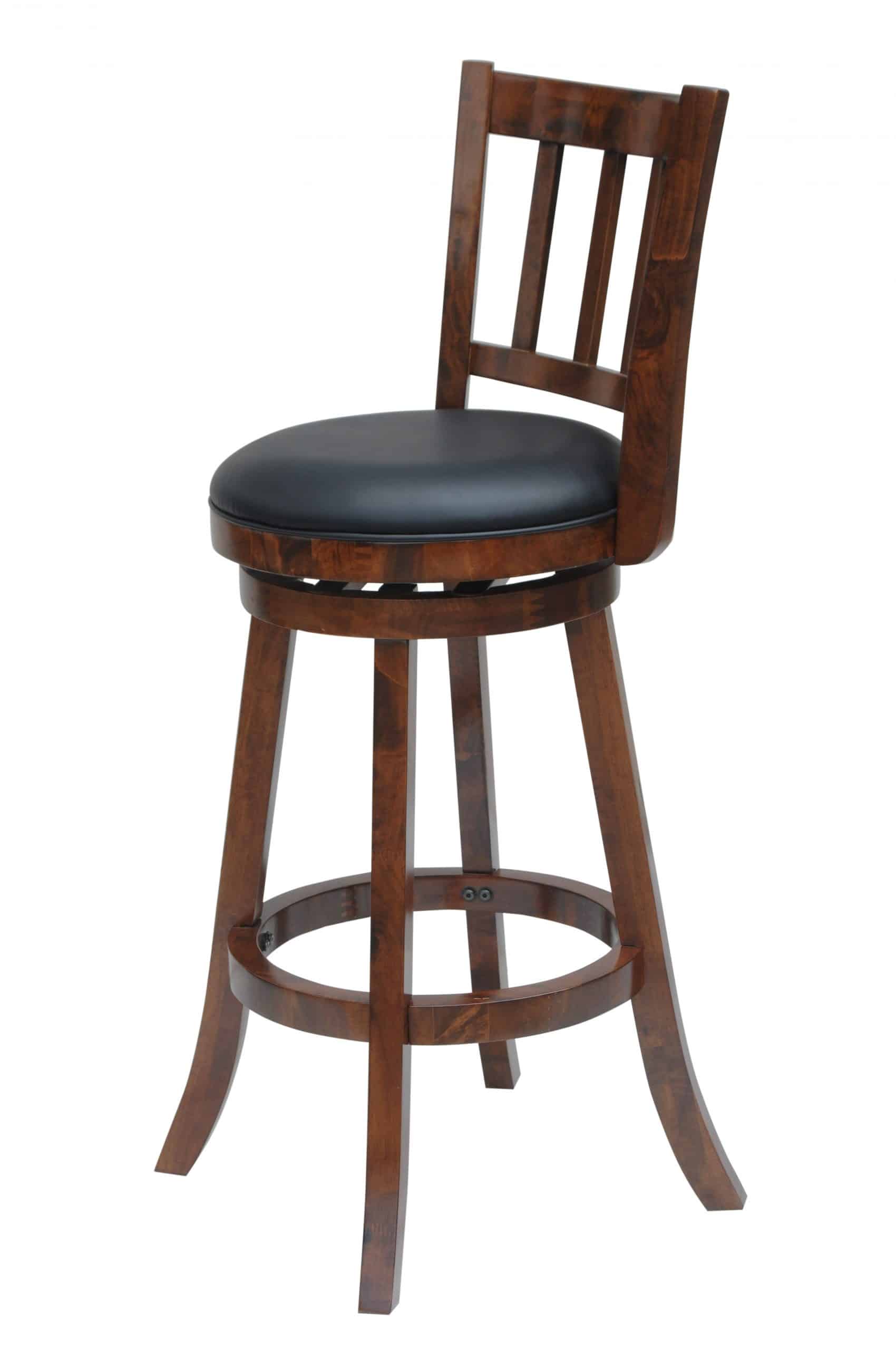 The Bloomington Swivel Stool is the perfect design chameleon, bringing versatile looks to your home. The rich wood finish and black faux leather offer sleek, traditional features perfect for a kitchen setting. Meanwhile, the high-density foam padding, full-ring footrest, and 360-degree swivel also promise the Bloomington is a comfortable, inviting seat at a home bar or in a den or game room. Available in counter and bar height options, and in three different finishes.