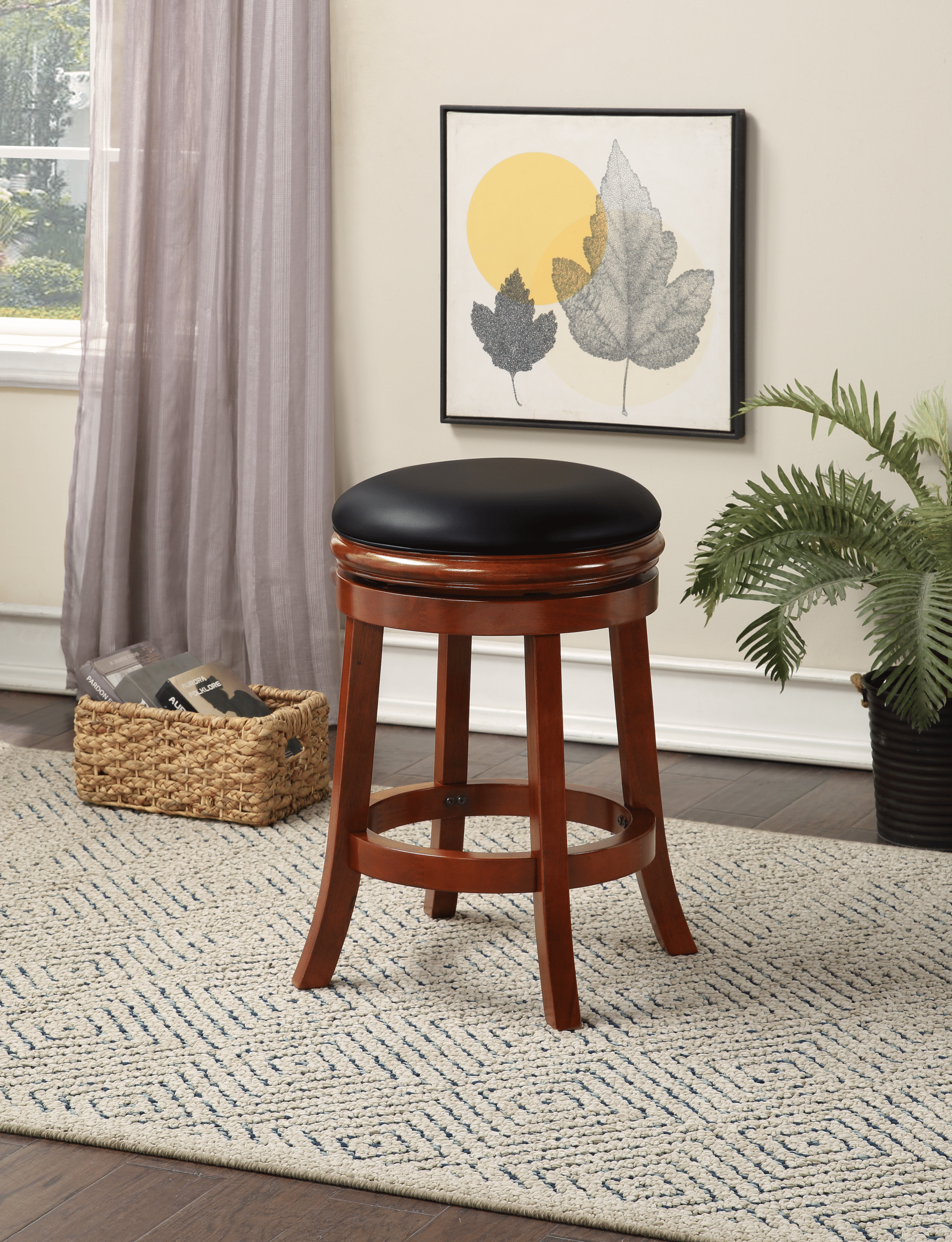 The Boraam Backless Stool is the functional accent you’ve been looking for to complement your home bar, eat-in kitchen, or bistro table. A ball-bearing swivel plate provides a versatile 360-degree swivel you’ll love, while the double-seat apron and stability stretchers offer durability and support. The frame is made from solid rubberwood while the cushion is padded out with high-density foam. Flared legs and single welt cord trim add handsome style to the stool. This backless stool is available in counter and bar height options. The Boraam Backless Stool also comes in two different finishes – just pick your favorite!