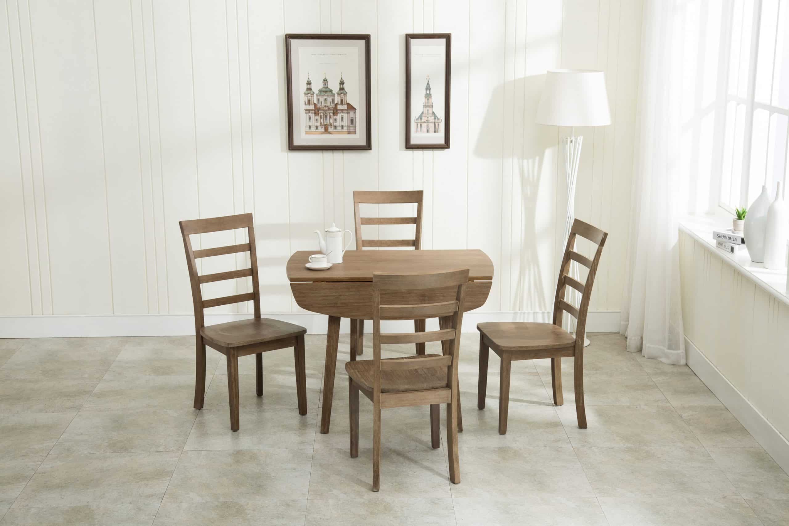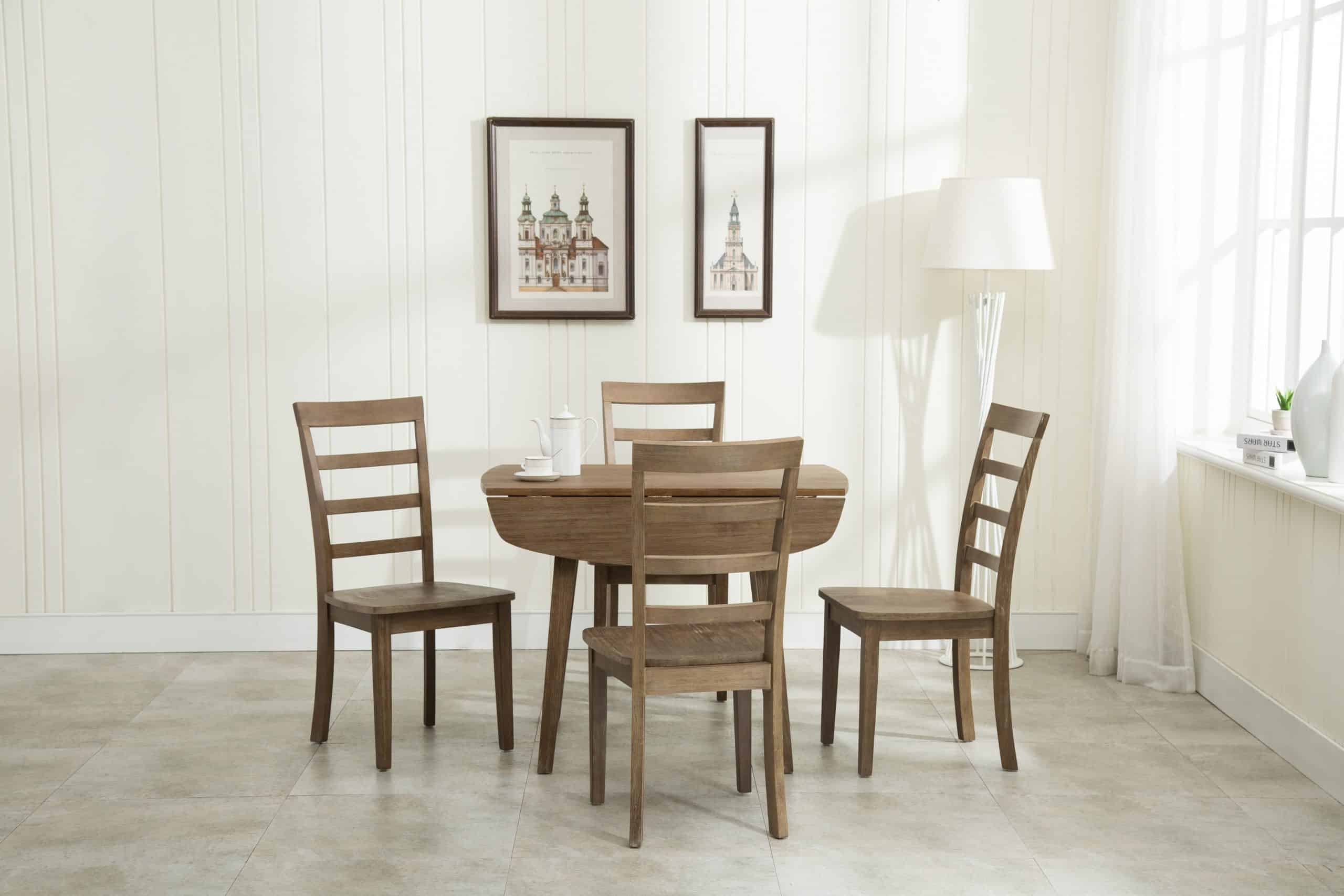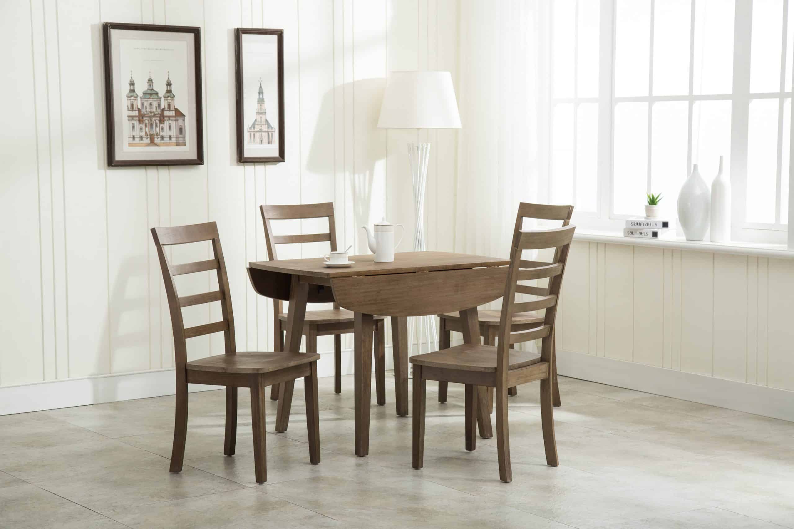 Useful in a breakfast nook, dining area, or mixed use living room, the Boulder 5-Piece Dining Set’s compact design fits pretty much anywhere. This set seats up to four guests with ease thanks to the square dining table and four ladderback chairs. With a 7-inch drop leaf on either end, the table’s width expands easily whenever you need a little extra elbow room. Made from environmentally friendly rubberwood and steel hardware.