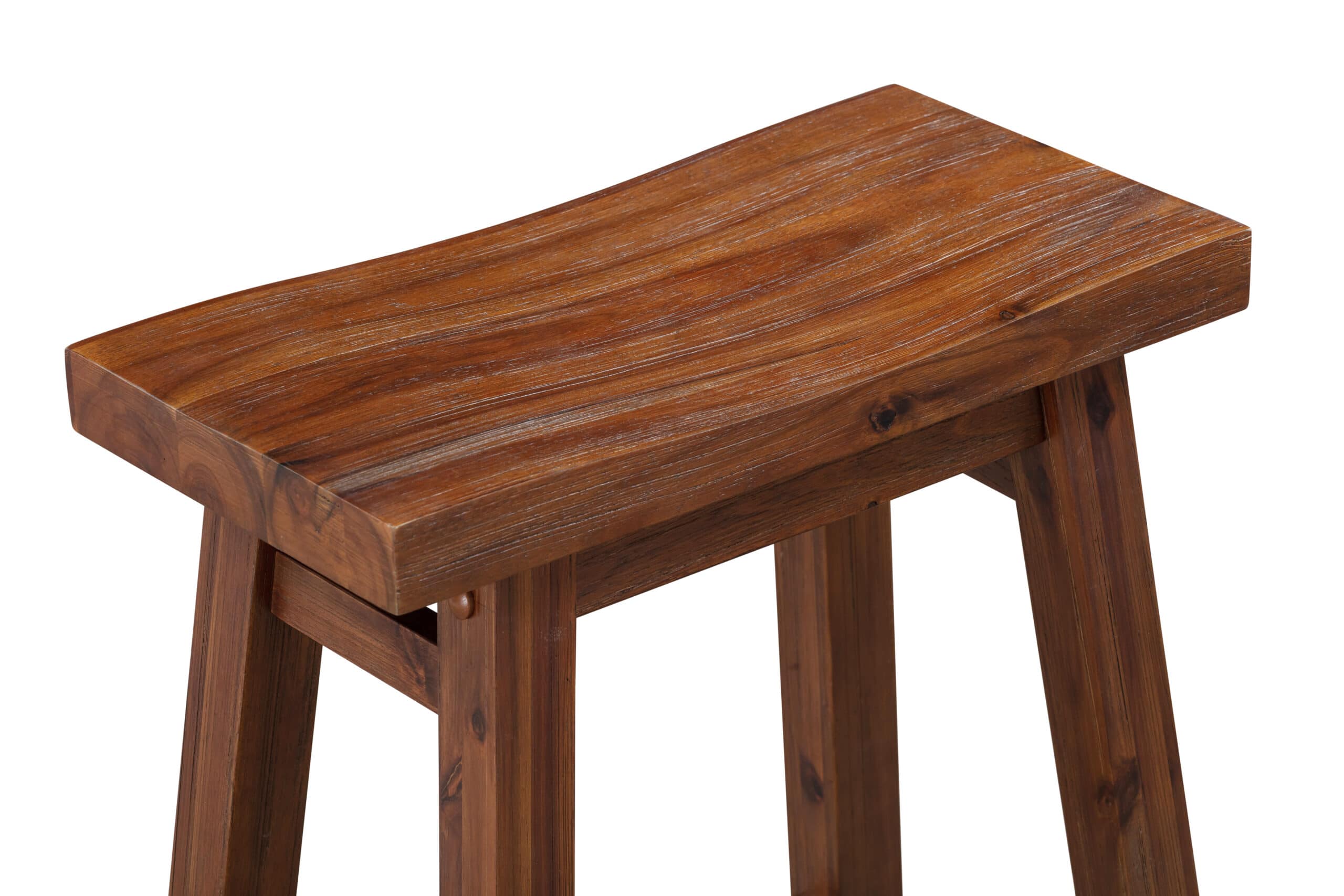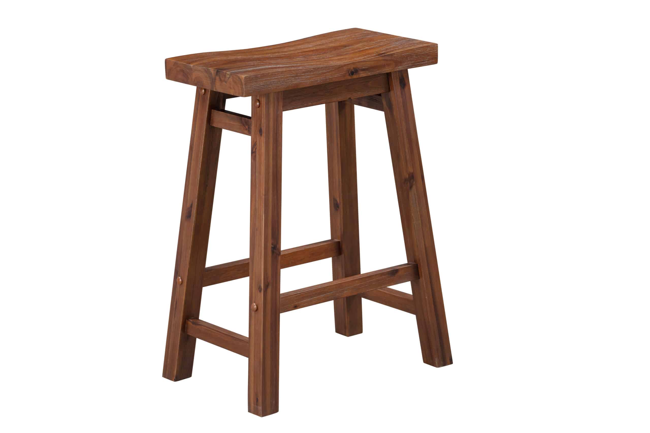 - Dining stools feature ergonomic saddle seat, and stability stretchers on base double as footrests