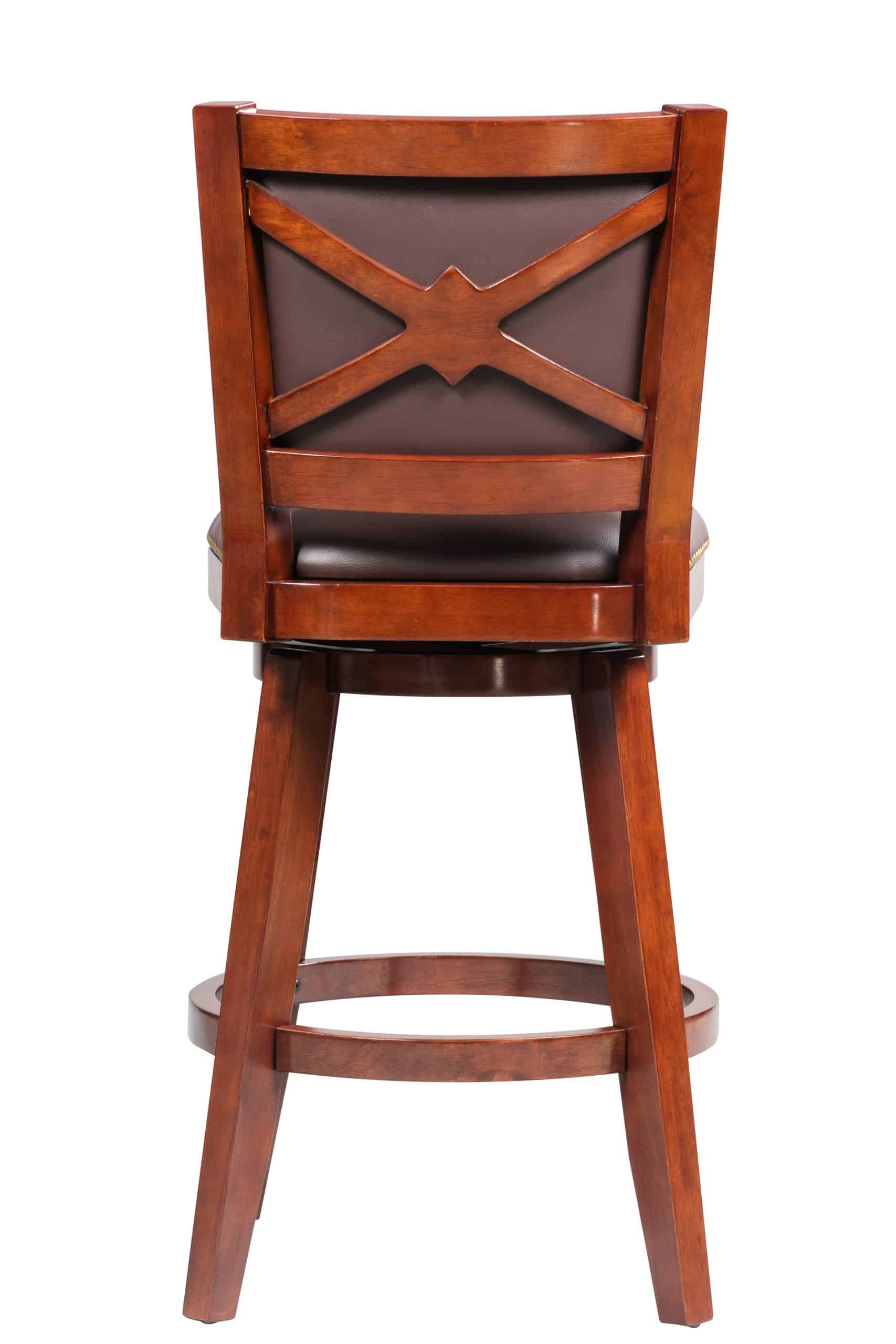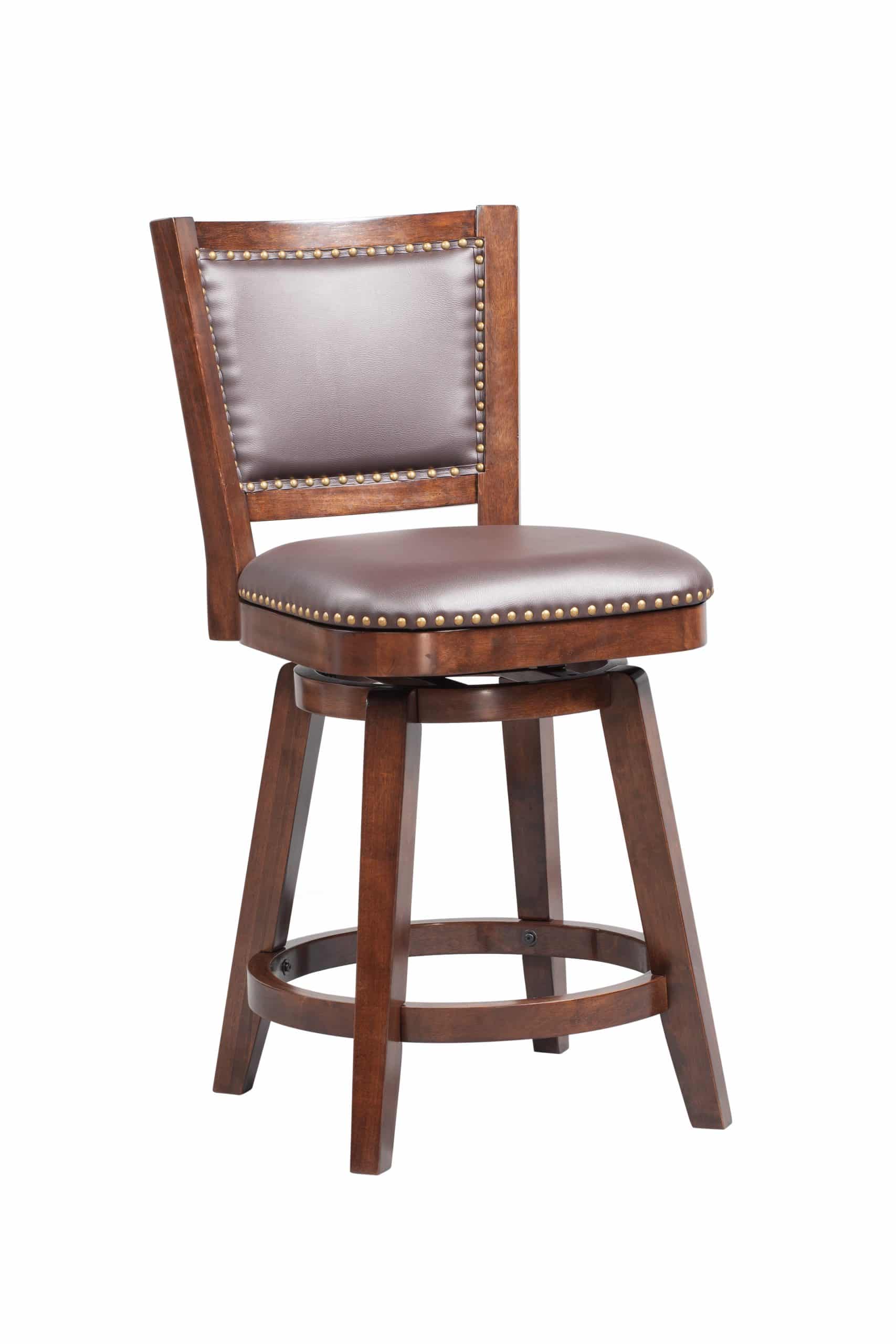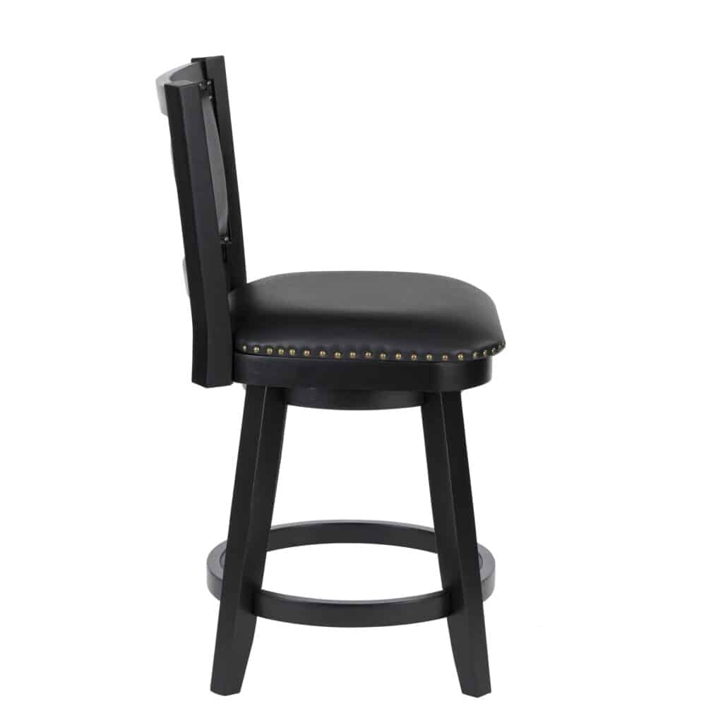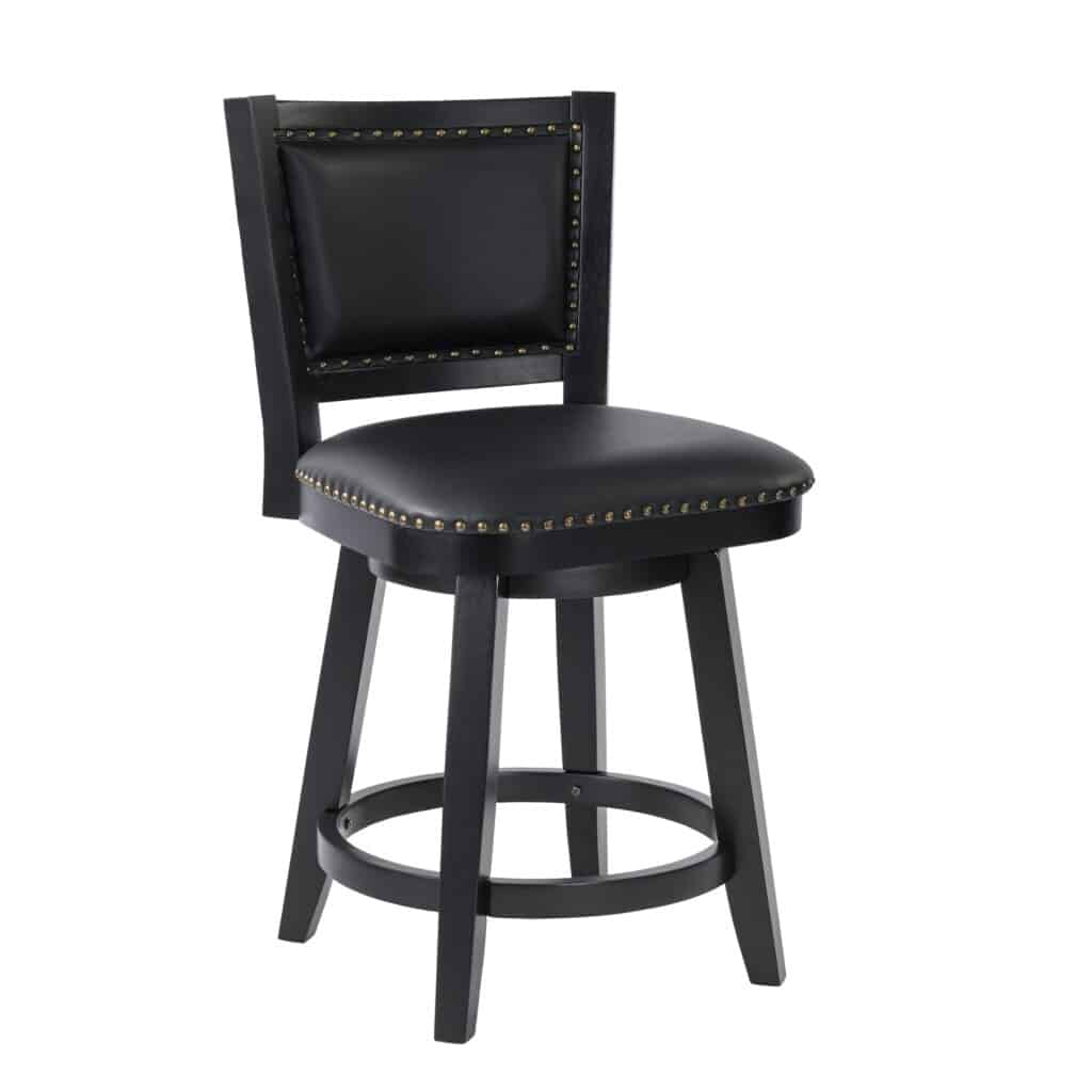 Finish off your bar, den, or game room in traditional style with the Broadmoor Swivel Stool. The Broadmoor Swivel Stool is designed to be enjoyed, which is why it features easy-wipe faux leather upholstery. If your drink spills or some crumbs fall onto the faux leather seat, simply wipe the upholstery clean in a flash. For your comfort, it also features a swivel, built-in footrest, and padded seat and backrests. The counter stool’s solid rubberwood frame comes in your choice of Cherry, Cappuccino, Walnut or Black finishes. The protective floor glides on the base guard your hard floors against scratches or scuffs. The Broadmoor is available in counter, bar, and extra tall height options.