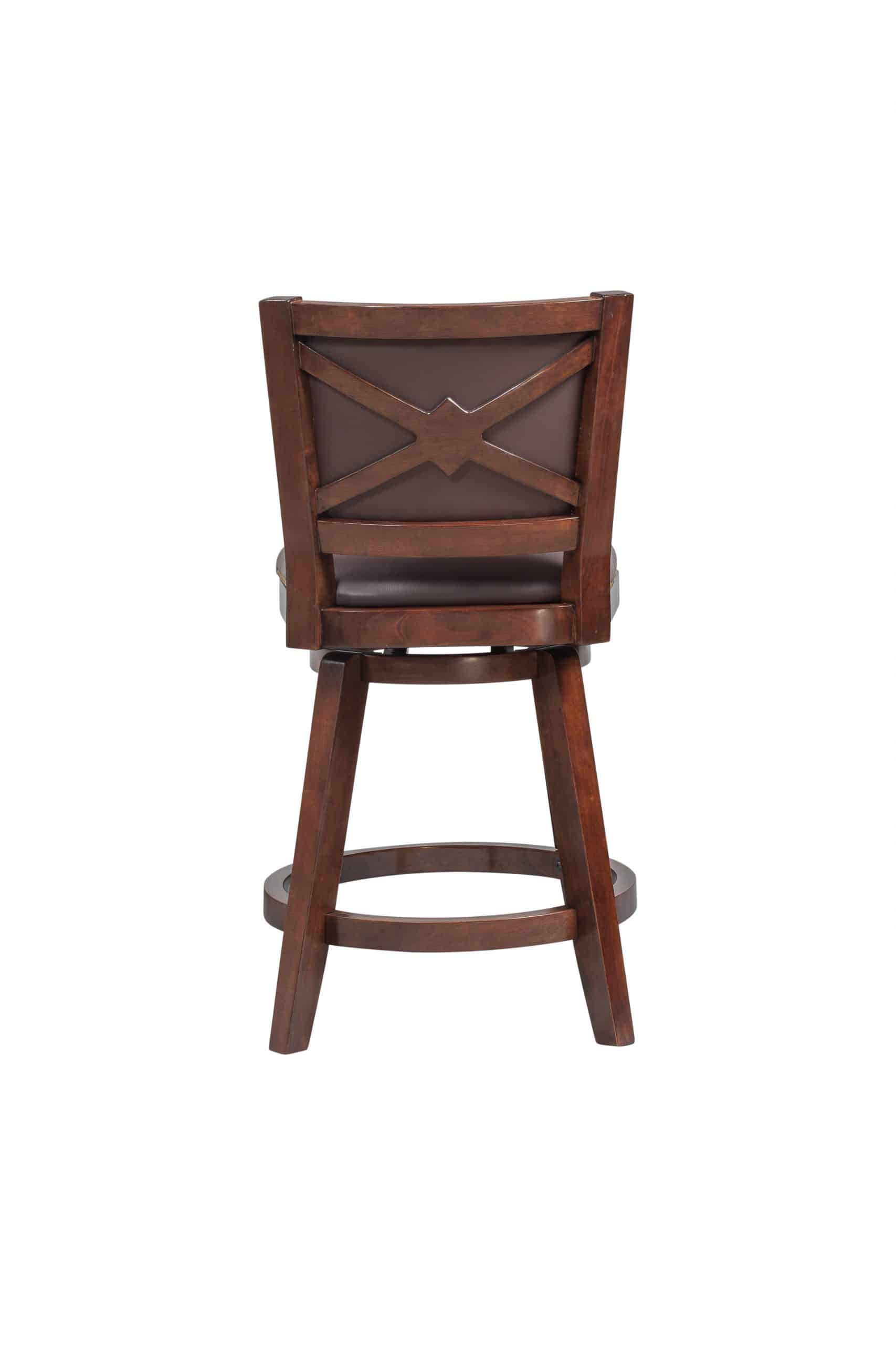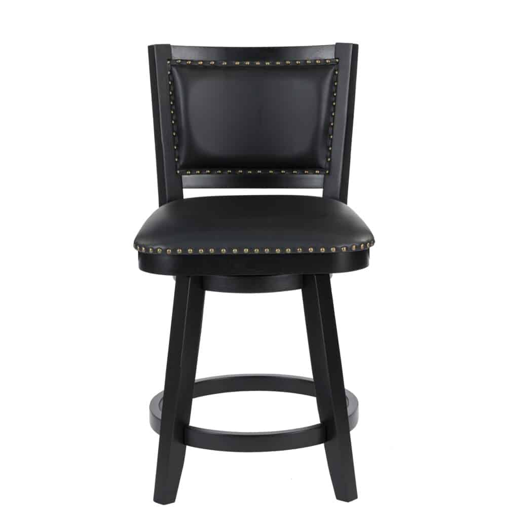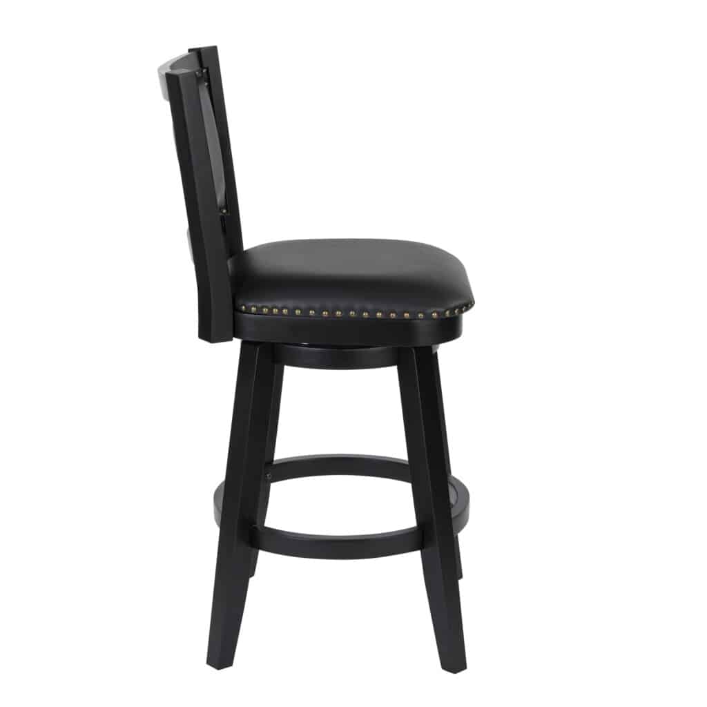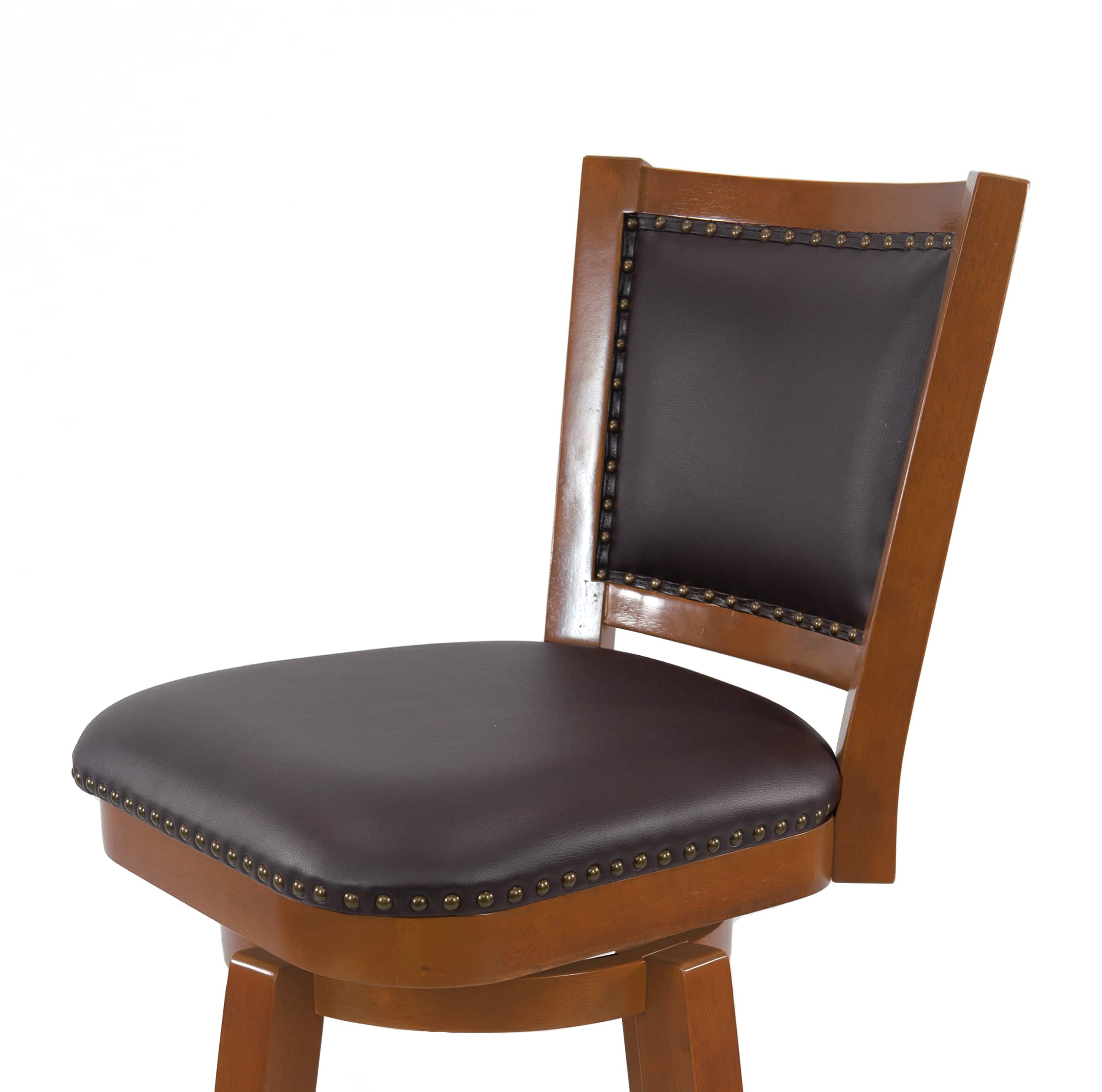 Finish off your bar, den, or game room in traditional style with the Broadmoor Swivel Stool. The Broadmoor Swivel Stool is designed to be enjoyed, which is why it features easy-wipe faux leather upholstery. If your drink spills or some crumbs fall onto the faux leather seat, simply wipe the upholstery clean in a flash. For your comfort, it also features a swivel, built-in footrest, and padded seat and backrests. The counter stool’s solid rubberwood frame comes in your choice of Cherry, Cappuccino, Walnut or Black finishes. The protective floor glides on the base guard your hard floors against scratches or scuffs. The Broadmoor is available in counter, bar, and extra tall height options.