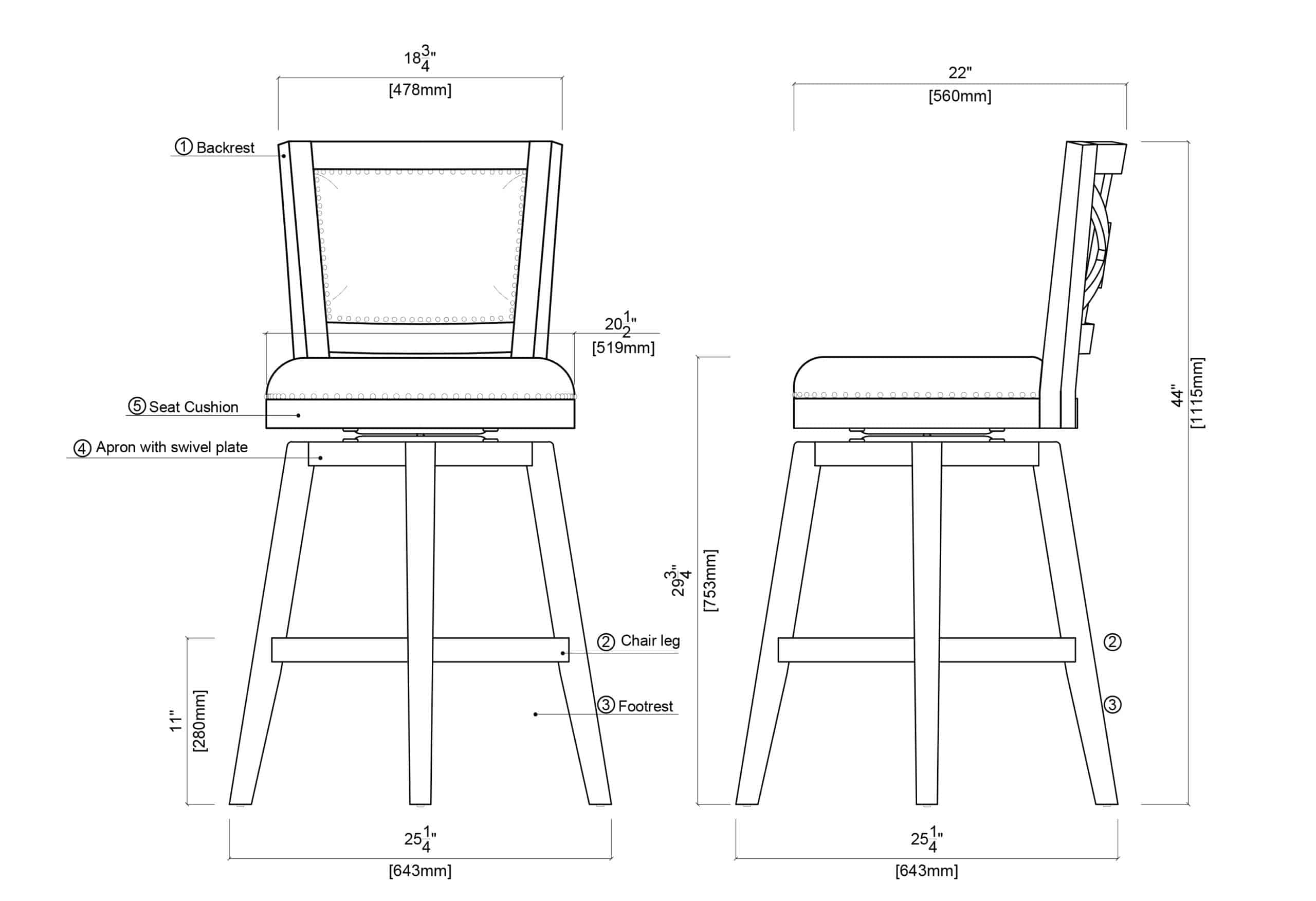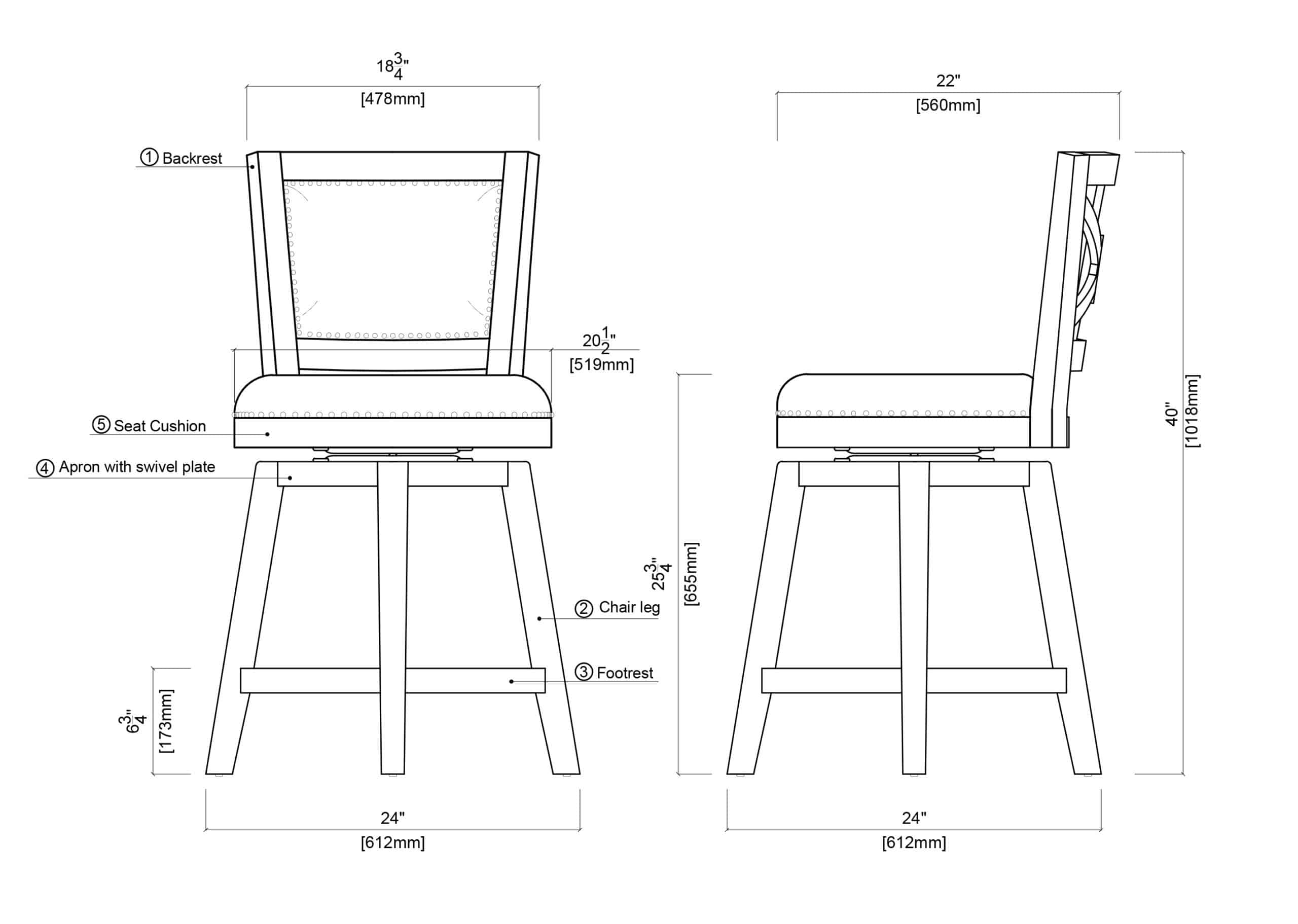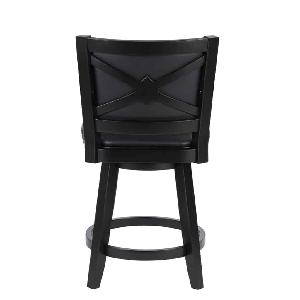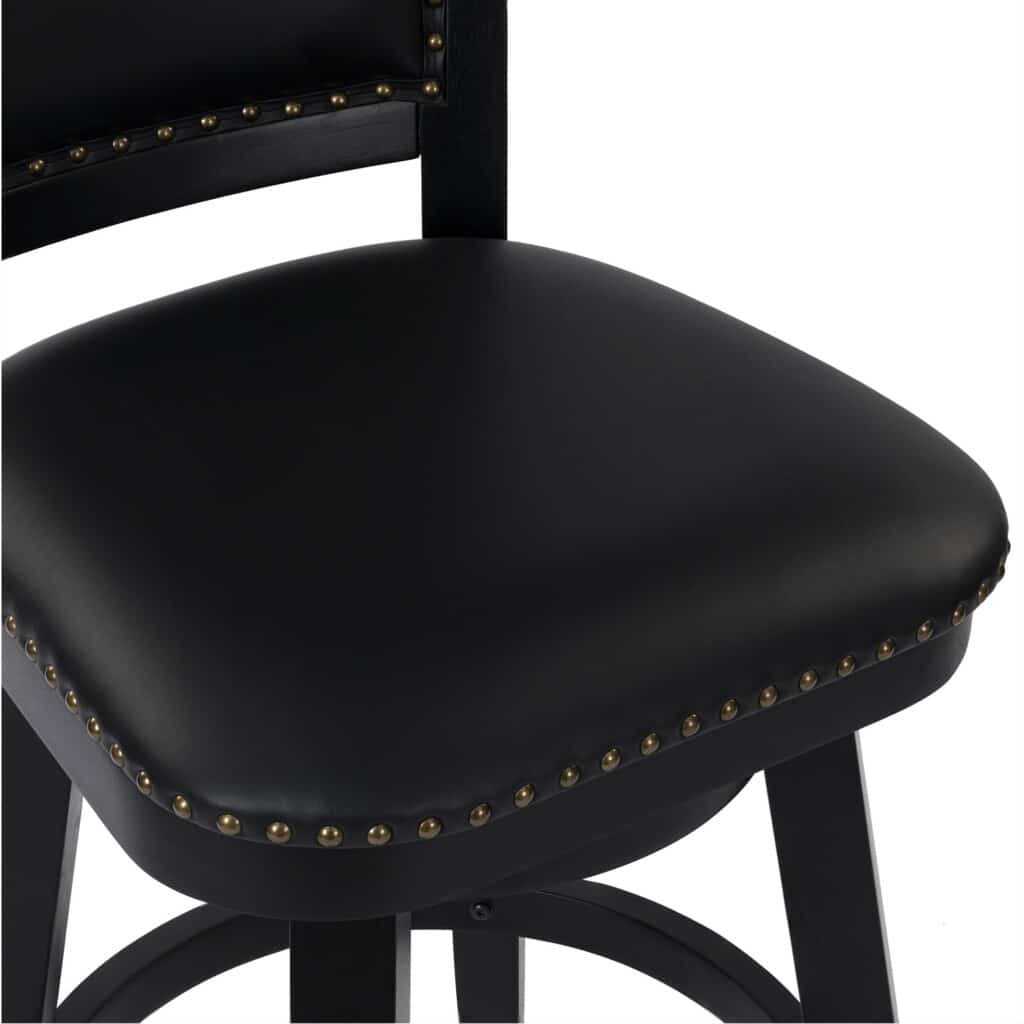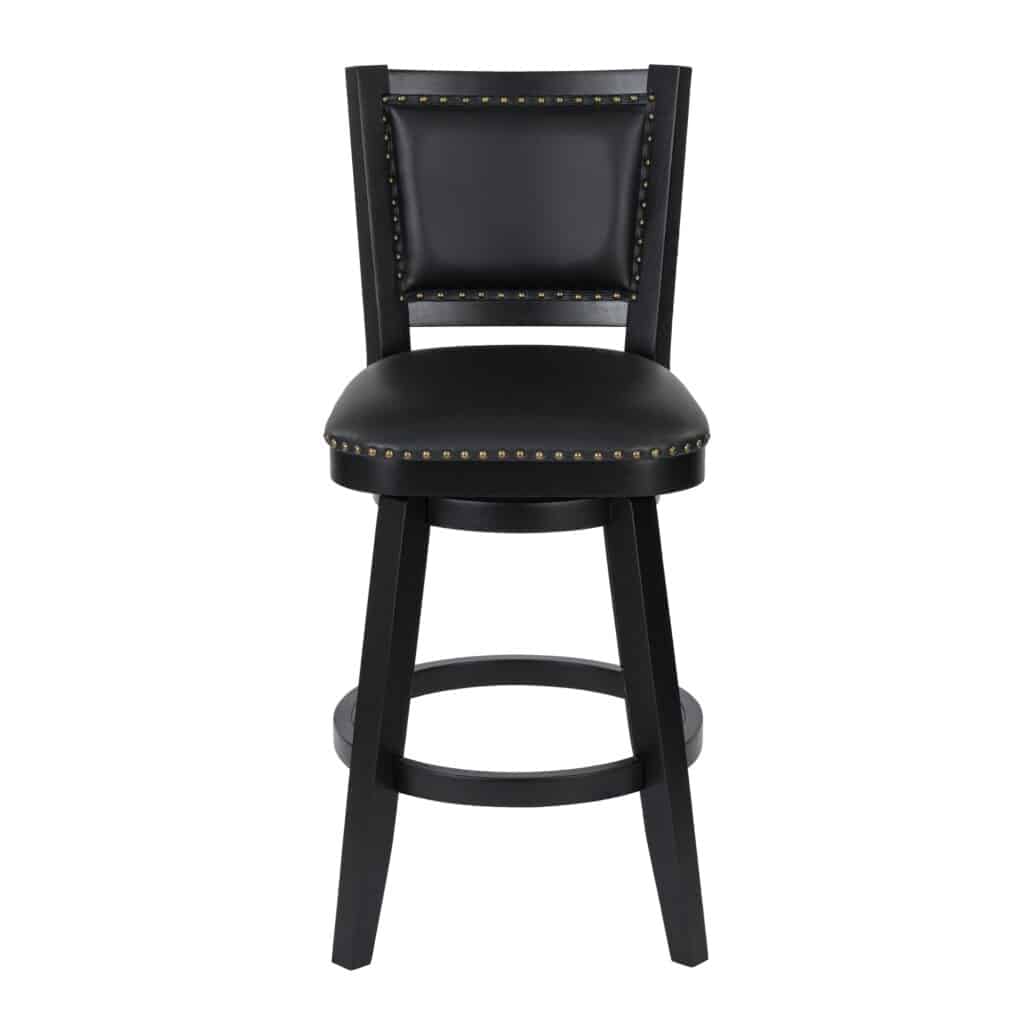 Finish off your bar, den, or game room in traditional style with the Broadmoor Swivel Stool. The Broadmoor Swivel Stool is designed to be enjoyed, which is why it features easy-wipe faux leather upholstery. If your drink spills or some crumbs fall onto the faux leather seat, simply wipe the upholstery clean in a flash. For your comfort, it also features a swivel, built-in footrest, and padded seat and backrests. The counter stool’s solid rubberwood frame comes in your choice of Cherry, Cappuccino, Walnut or Black finishes. The protective floor glides on the base guard your hard floors against scratches or scuffs. The Broadmoor is available in counter, bar, and extra tall height options.