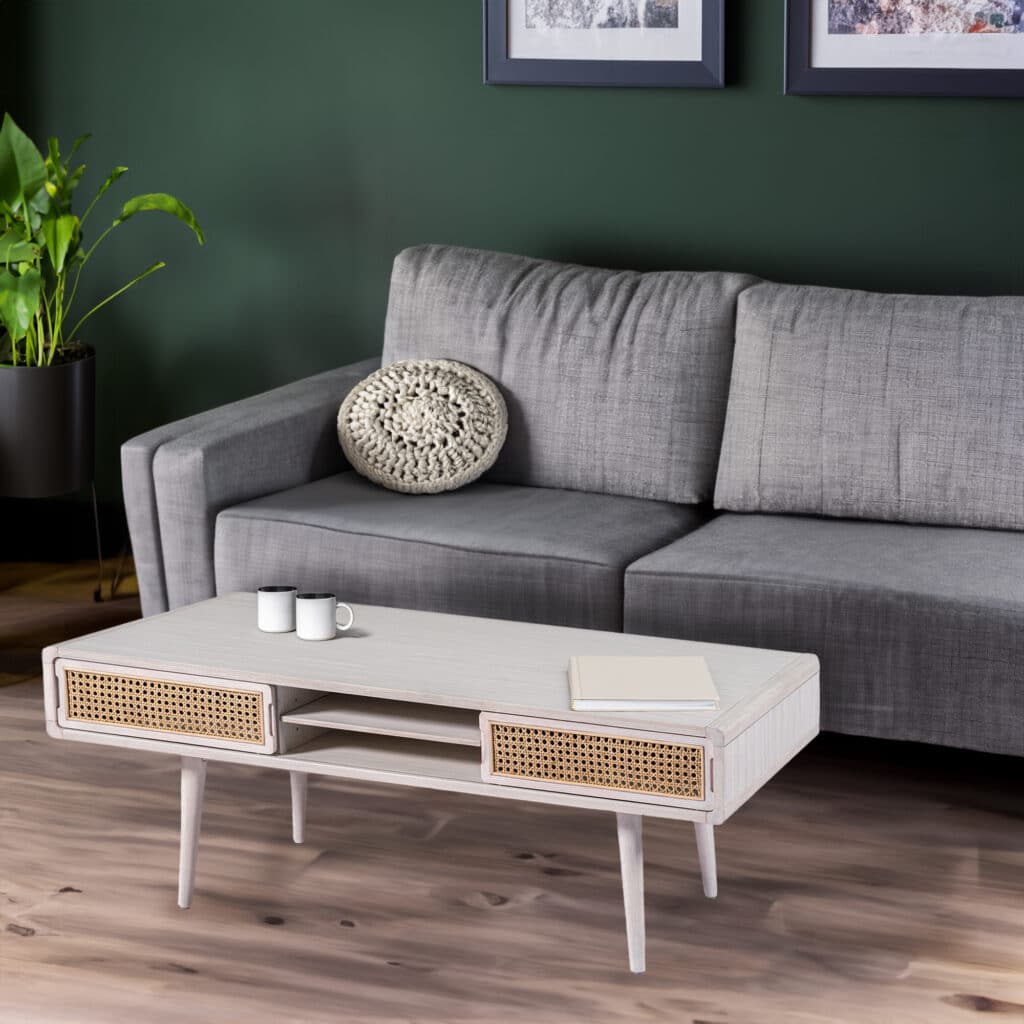 Introduce a refreshing style to your living space with the Boraam Cambria Coffee Table. Showcasing a beautiful cane weave on the sliding doors. This versatile coffee table brings organic aesthetics and contemporary functionality to the living room, bedroom, home office, or lounge room. Crafted from durable MDF, rubberwood, and zebrano veneer with a natural wood grain design, this coffee table is complete with sliding doors on the front to help conceal media essentials and allow for flow-through ventilation. The coffee table is equipped with ample storage room, so you can display or keep any items you’d like well organized. The wood base contributes to its sturdiness and stability.