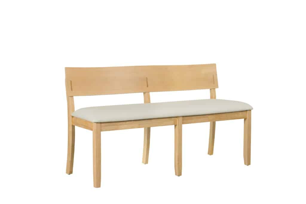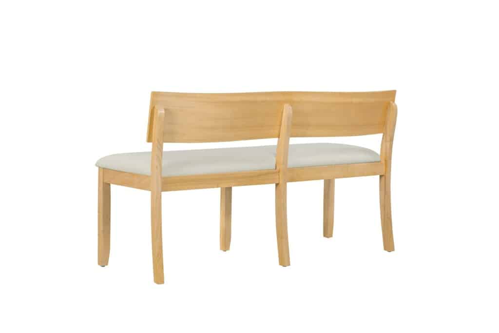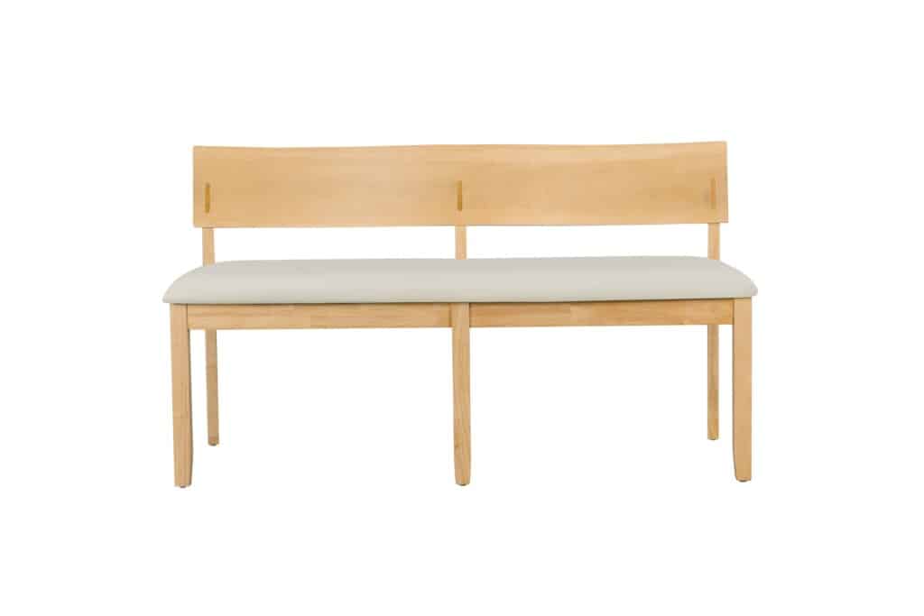 Lean back in style with the elegant Boraam Capella wood dinner bench, equipped with a supportive curved backrest and plush cushion seat. This bench pairs classic materials with a modern, minimalist silhouette that will elevate your space. The bench is crafted from solid rubberwood, leaving traces of the natural rubberwood grain peering through in the finish, lending to the overall rustic aesthetic. The impressive design allows this bench with a low profile back to fit seamlessly with a dinner table, in an entryway, or as an accent piece in your living room.