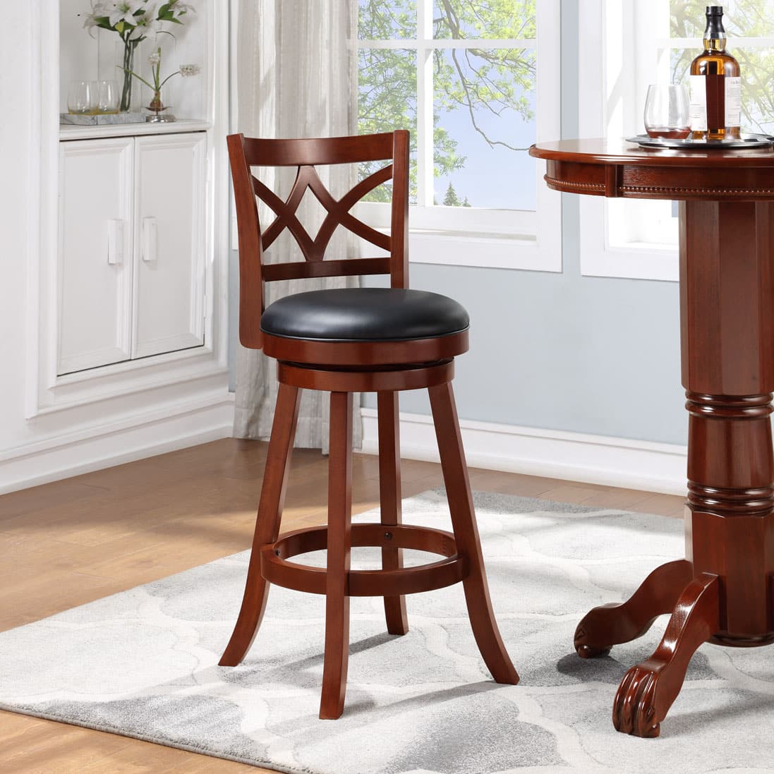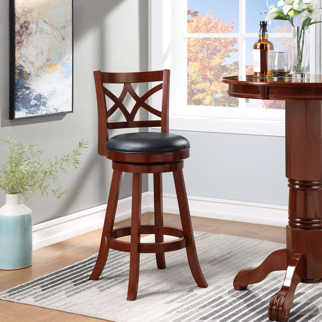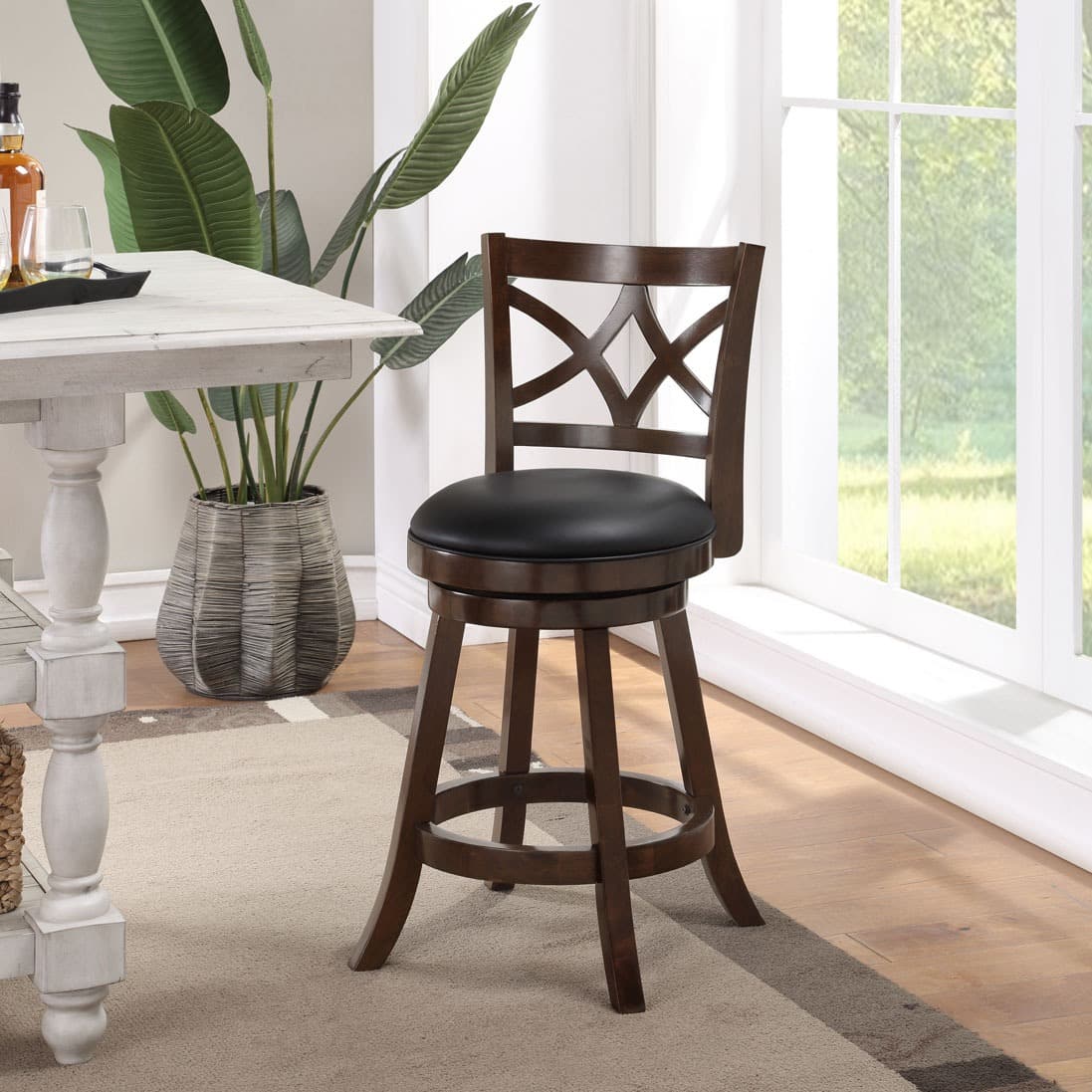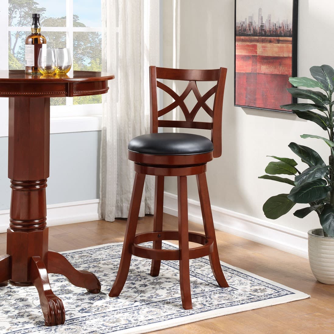 The Cardiff Swivel Stool is crafted with traditional style and timeless comfort. Pull it up to your eat-in kitchen counter or home bar and enjoy. It’s built from plywood and rubber with faux leather polyurethane upholstery. The diamond backrest and rich finishes are aesthetic flourishes, but comfort is where this stool shines. The seat is padded with high-density foam cushioning to ensure your comfort, no matter how long brunch lasts. The Cardiff Swivel Counter Stool is available in two finishes; Cherry and Cappuccino. It is also available in two seat heights; counter (24″) and bar (29″).