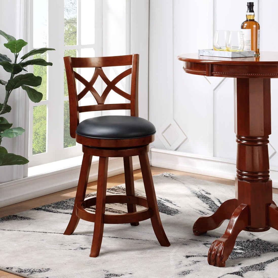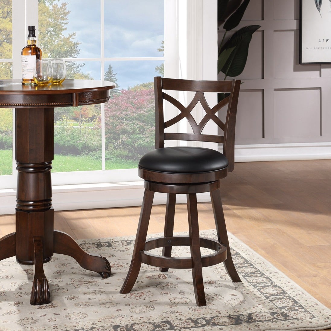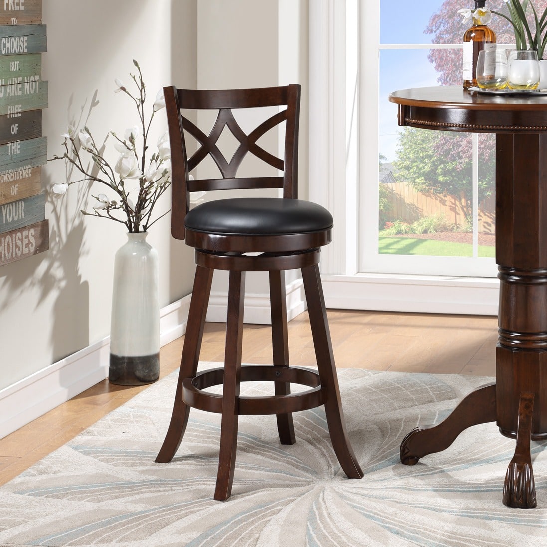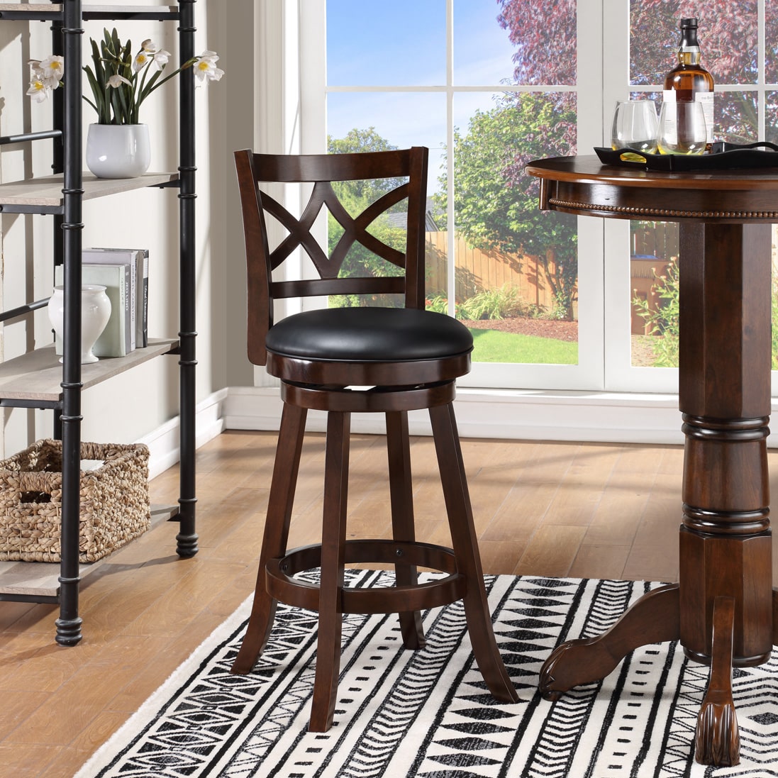 The Cardiff Swivel Stool is crafted with traditional style and timeless comfort. Pull it up to your eat-in kitchen counter or home bar and enjoy. It’s built from plywood and rubber with faux leather polyurethane upholstery. The diamond backrest and rich finishes are aesthetic flourishes, but comfort is where this stool shines. The seat is padded with high-density foam cushioning to ensure your comfort, no matter how long brunch lasts. The Cardiff Swivel Counter Stool is available in two finishes; Cherry and Cappuccino. It is also available in two seat heights; counter (24″) and bar (29″).