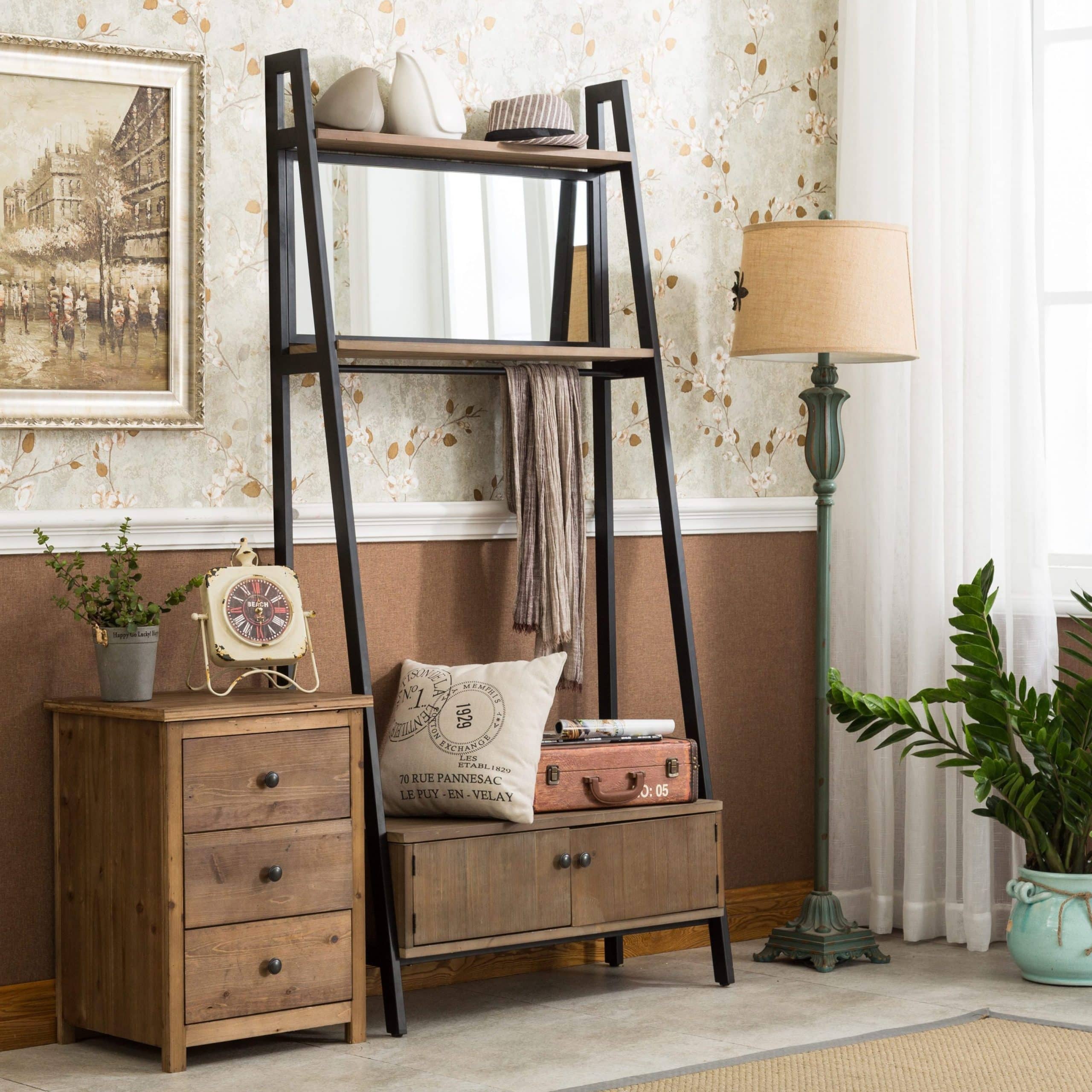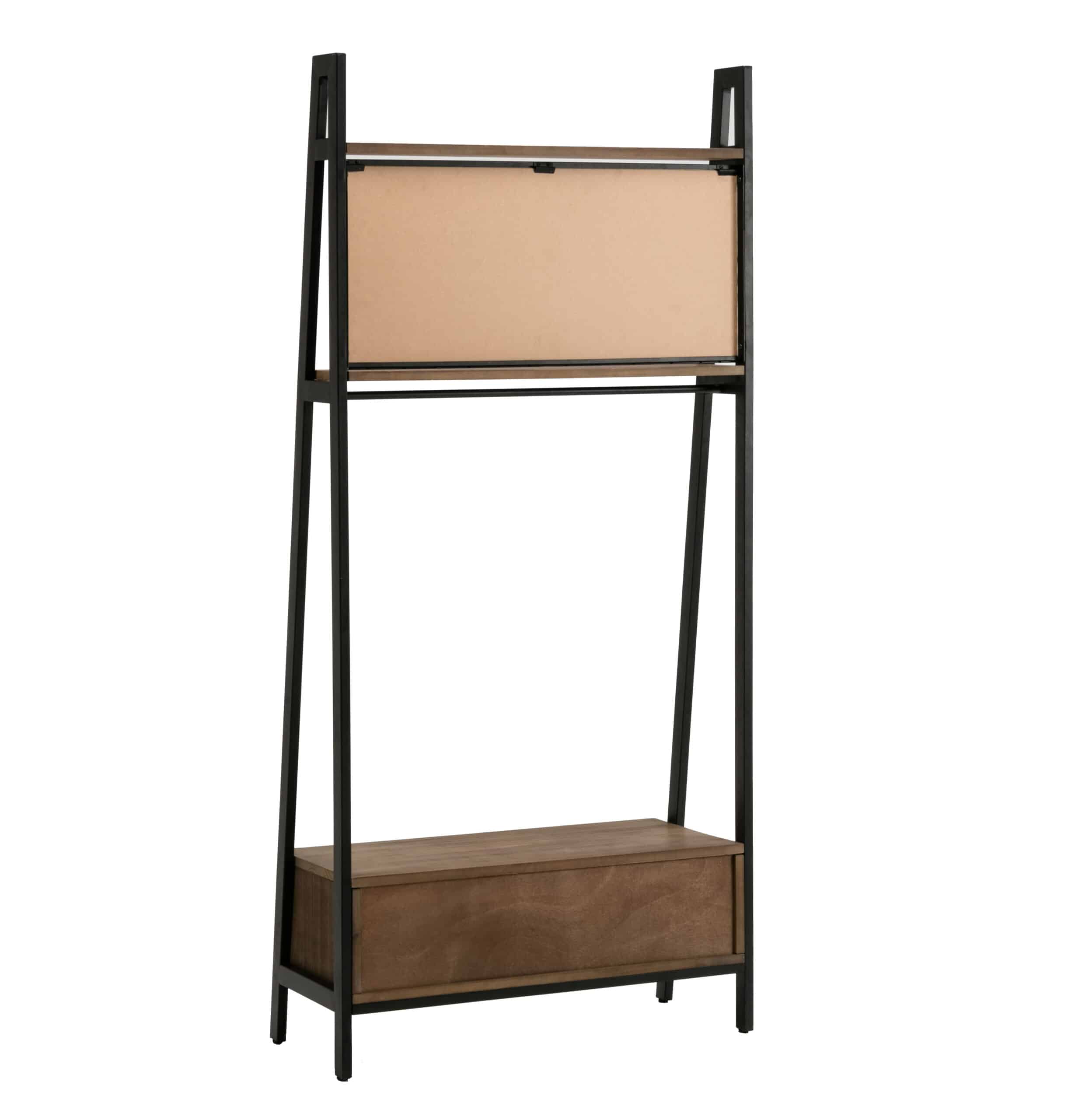 The Carlton Hall Tree brings your entryway must-have organizational style with mid-century flair. Design highlights include the two-door storage compartment, which hides away clutter like scarves, bags, or slippers. A mirror insert on the second shelf lets you get one last look before you head out the door. There’s even a metal hanging bar, which holds scarves, jackets, and other items weighing up to 20 pounds. Reduce clutter with stylish flair thanks to the Carlton Hall Tree.