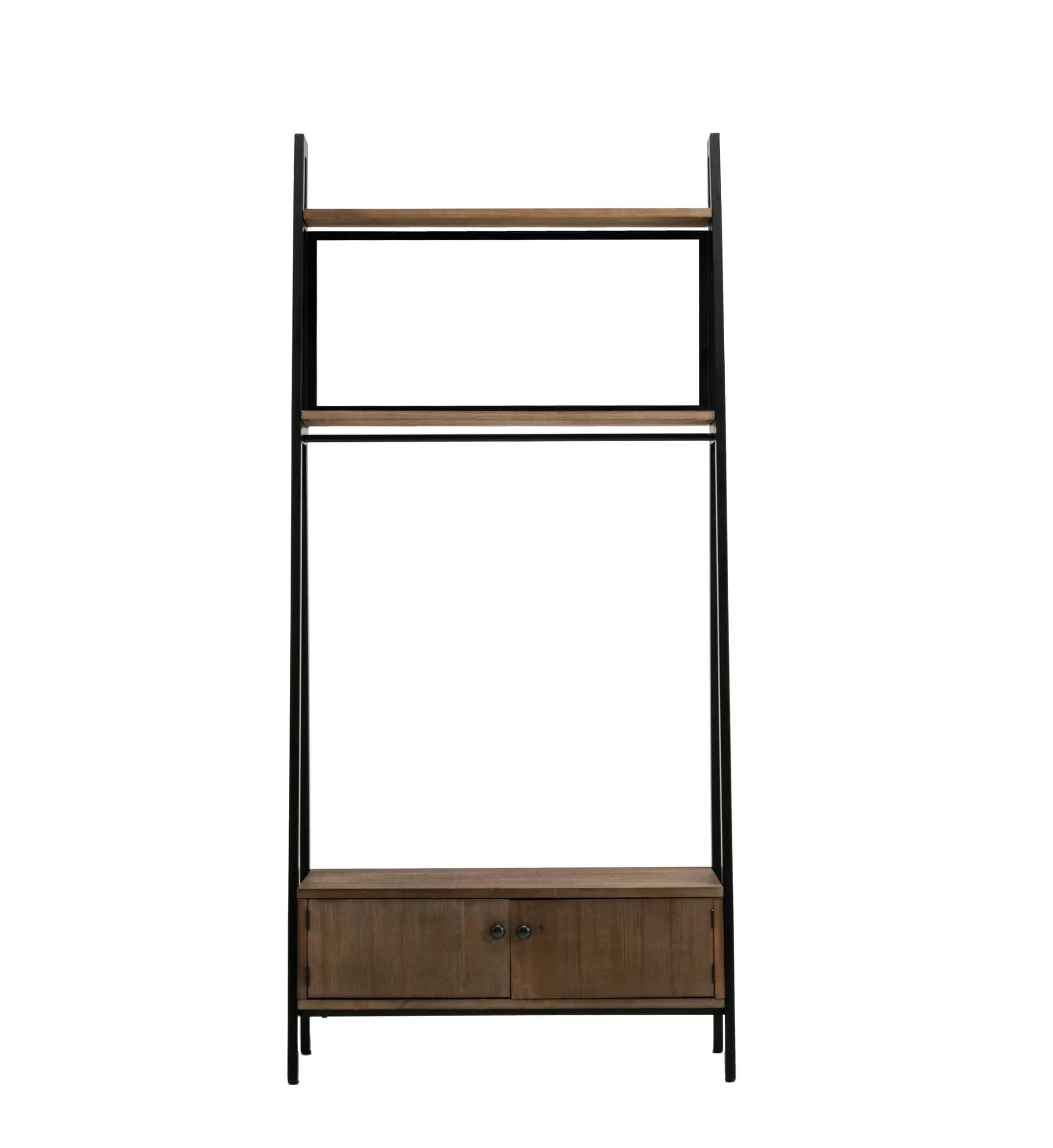 - "Constructed with fir wood shelves and a metal frame 2-door storage compartment Glass mirror insert on 2nd shelf Easy assembly Horizontal bar weight capacity: 20 lbs."