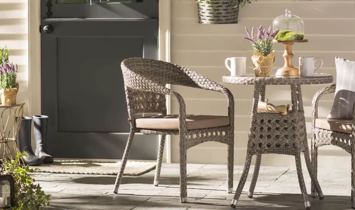 The 3pc Carmen Outdoor Conversation Dining Set will fit perfectly in any outdoor setting. The quick dry foam cushions and durable poly-rattan material will keep you entertaining shortly after any bad weather. Featuring the cats eye weave in a soft neutral Gray hue, this set will compliment any decor. This set includes one bistro table with a glass top and 2 chairs with detachable