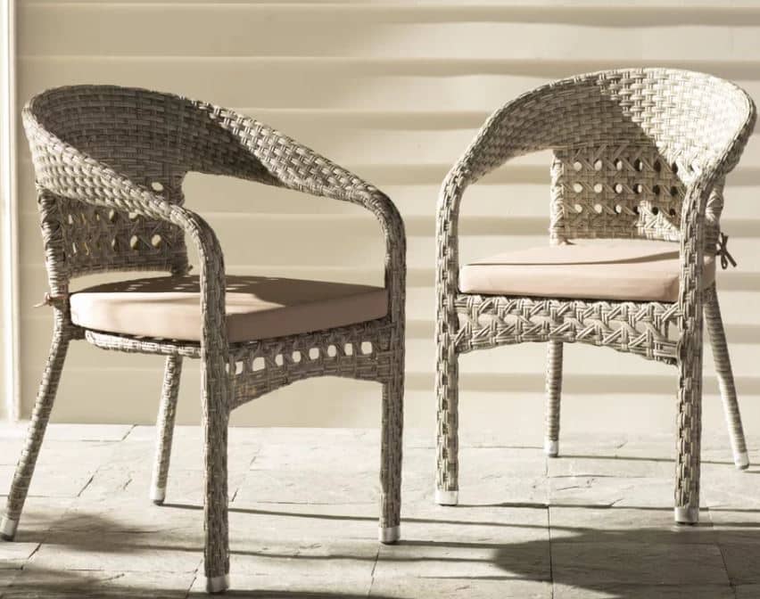 The Carmen Outdoor Dining Chair will fit perfectly in any outdoor setting. The quick dry foam cushions and durable poly-rattan material will keep you entertaining shortly after any bad weather. Featuring the cats eye weave in a soft neutral Gray hue, this chair set will compliment any decor. Comes in a set of 2. *Product weight is for a single chair*