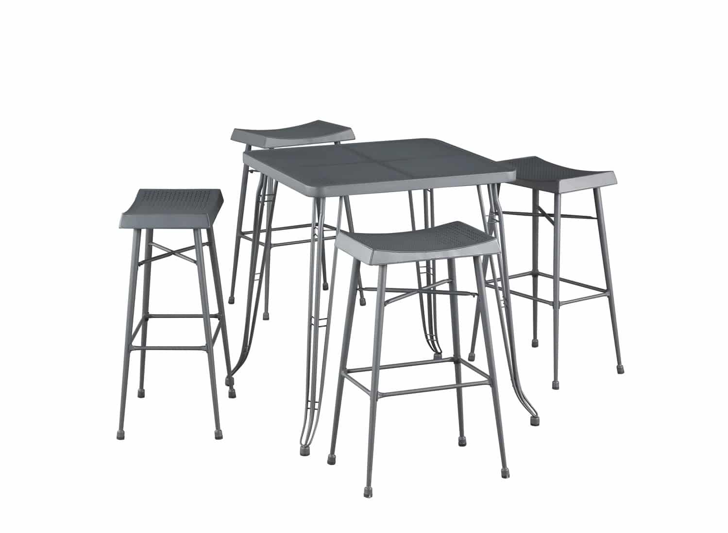 - Set includes 1 pub table and 4 backless stools