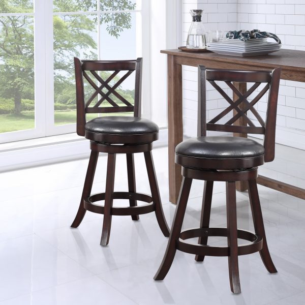 Boraam’s Cathedral Swivel Stool takes its inspiration from the elaborate architecture of European cathedrals. The interlocking design of the sculpted backrest is further accented by traditional bronze nailhead trim along the seat cushion. This counter stool is precisely constructed with a solid rubberwood frame, flared legs, and a steel ball-bearing swivel plate. This all combines to give you a flawless 360-degree swivel, so you can always face where the action is, whether that’s the game on your big screen TV or the conversation with your guests. This swivel stool is performance tested by leading global testing facilities, so you can relax in comfort knowing it’s designed with care.