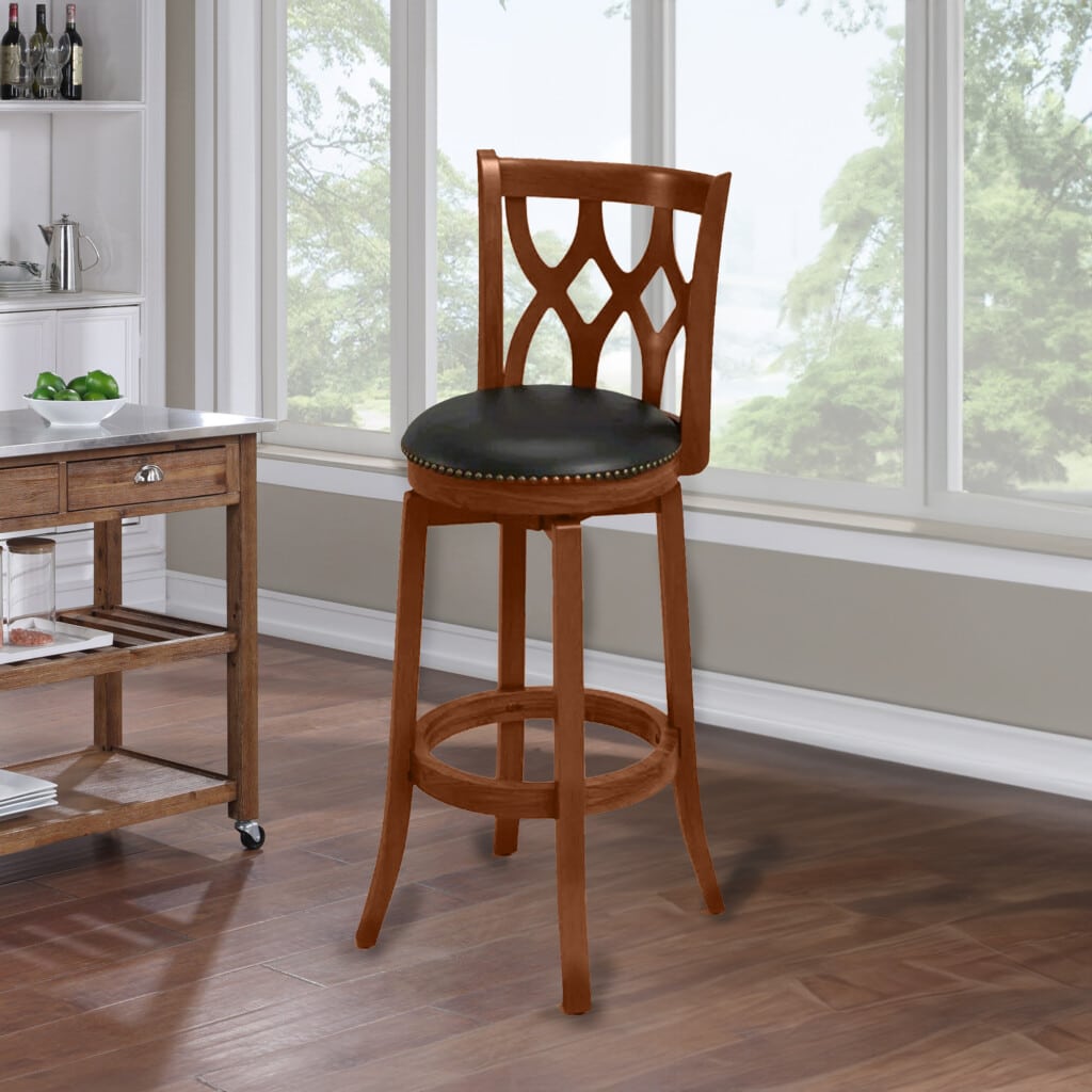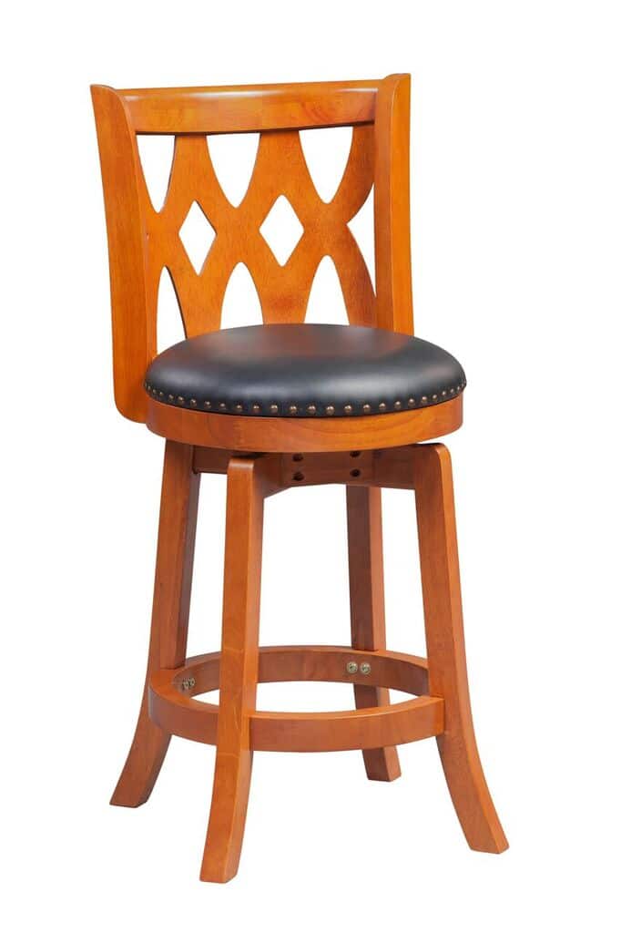 Boraam’s Cathedral Swivel Stool takes its inspiration from the elaborate architecture of European cathedrals. The interlocking design of the sculpted backrest is further accented by traditional bronze nailhead trim along the seat cushion. This counter stool is precisely constructed with a solid rubberwood frame, flared legs, and a steel ball-bearing swivel plate. This all combines to give you a flawless 360-degree swivel, so you can always face where the action is, whether that’s the game on your big screen TV or the conversation with your guests. This swivel stool is performance tested by leading global testing facilities, so you can relax in comfort knowing it’s designed with care.