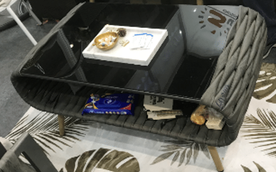 - Overseas – need top replace top of table, possibly with a clear plastic top over same woven materials