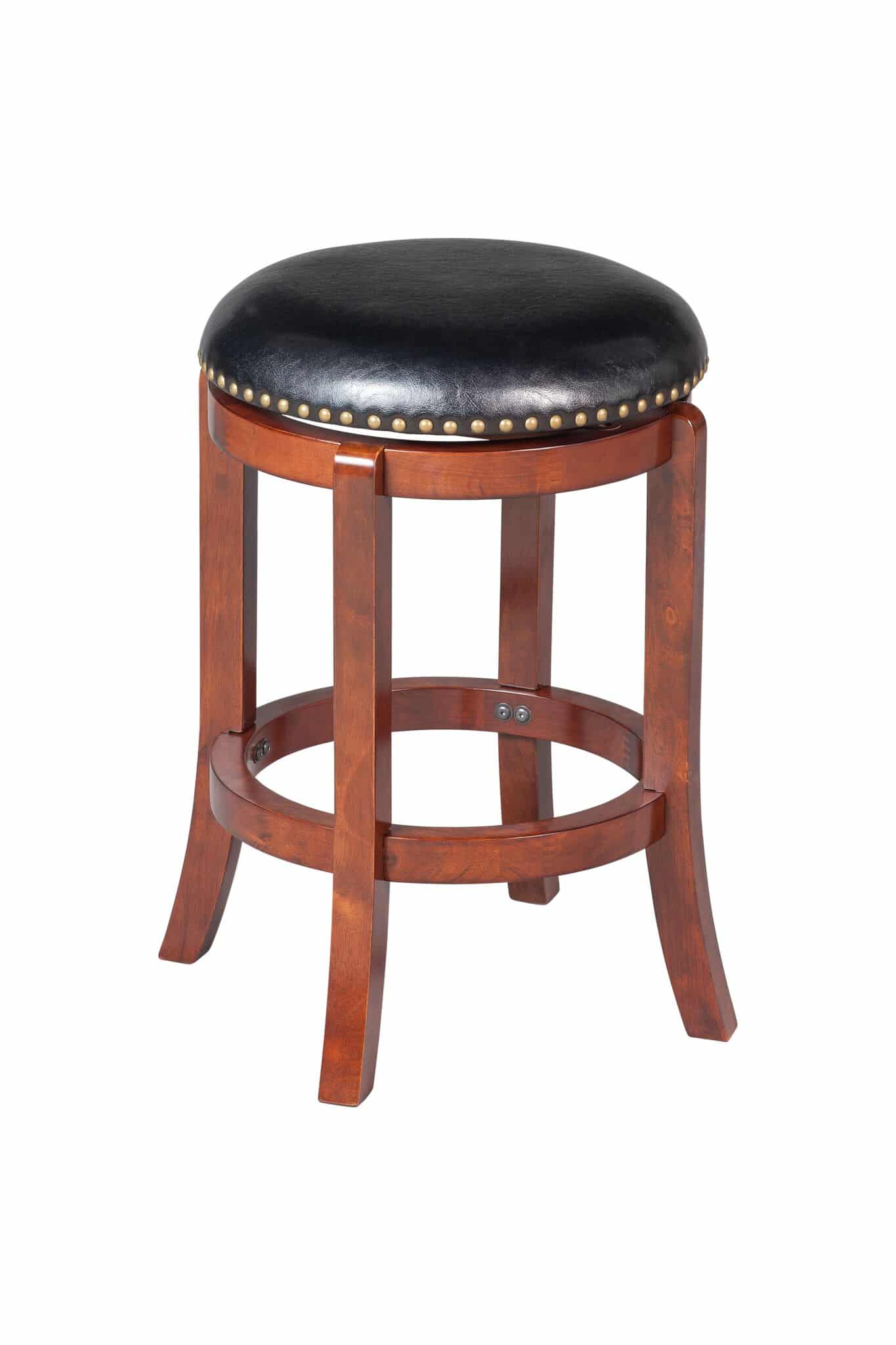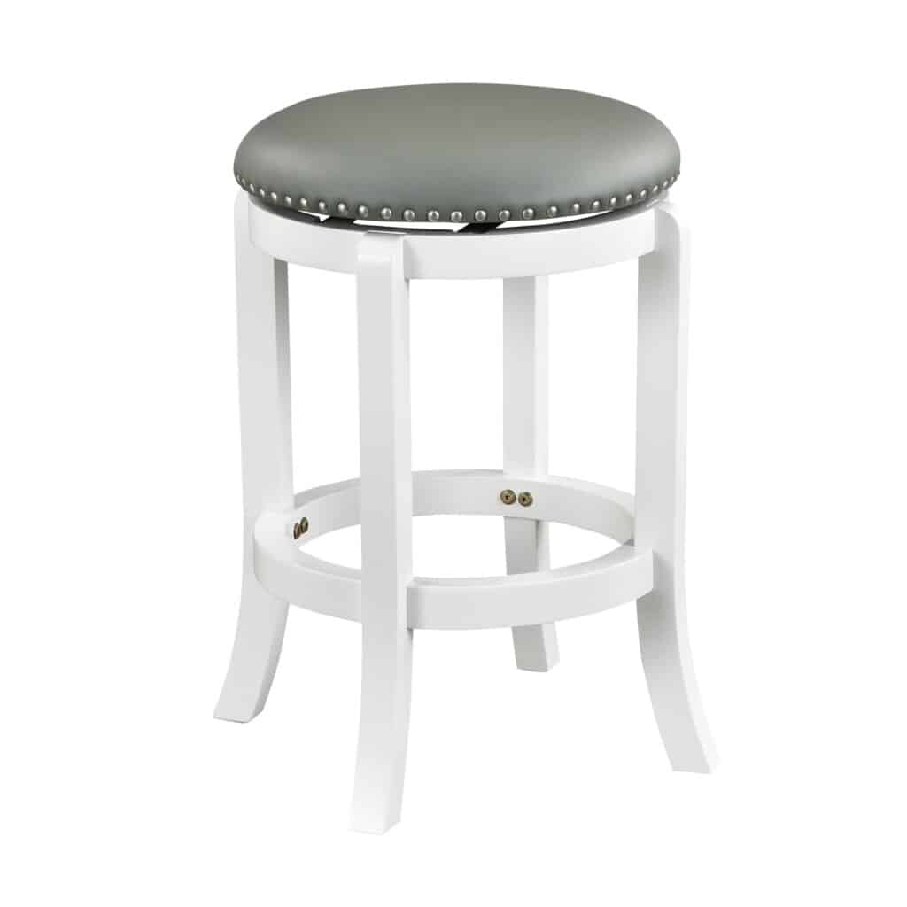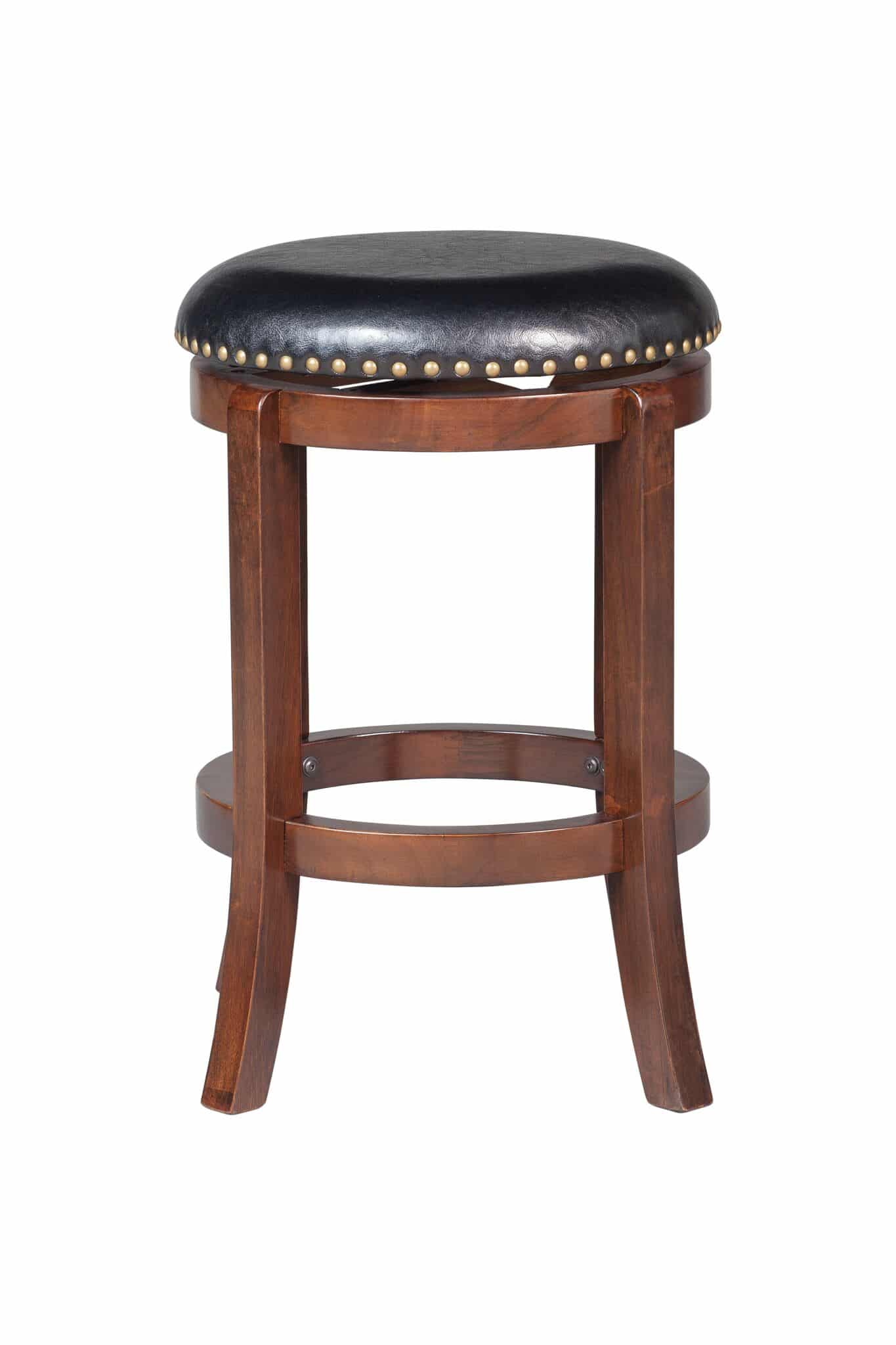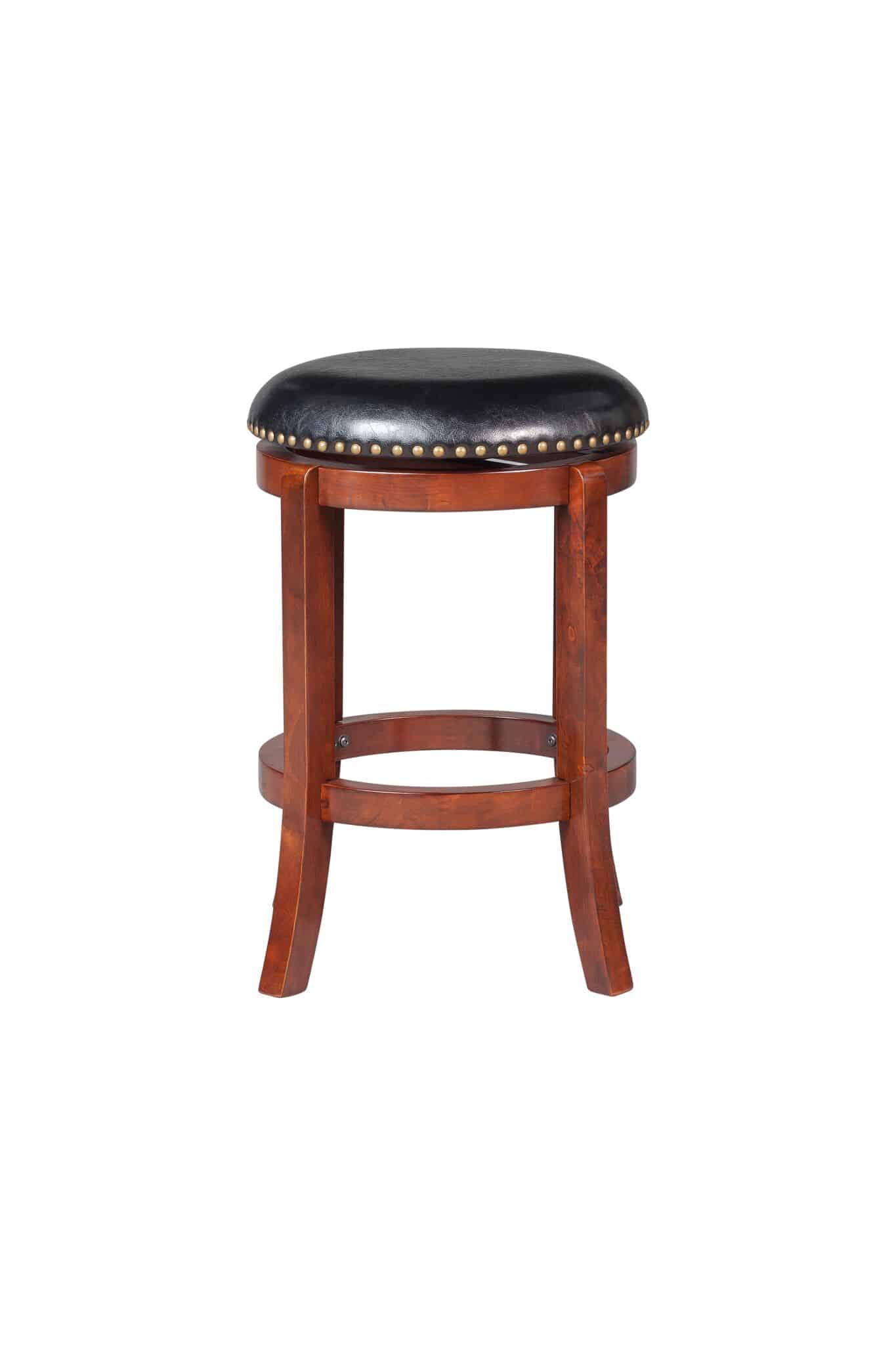 The Cordova backless swivel stool has the versatility, comfort, and style your home bar, game room, or kitchen needs. The Cordova features solid rubberwood construction with strategically flared legs, adding enhanced balance and durability to the design. The wonderful full 360-degree swivel function allows for maximum mobility, the smooth glide swivel function allows you to change directions with ease, making this your new favorite stool in your home. High-density foam cushion seat, which is upholstered in plush faux leather. The faux leather upholstery is easy to wipe clean, even if you spill your drink or your snack. Protective floor glides on the base guard your hard floors against scratches or scuffs. The Cordova is also available in standard counter and bar height options.