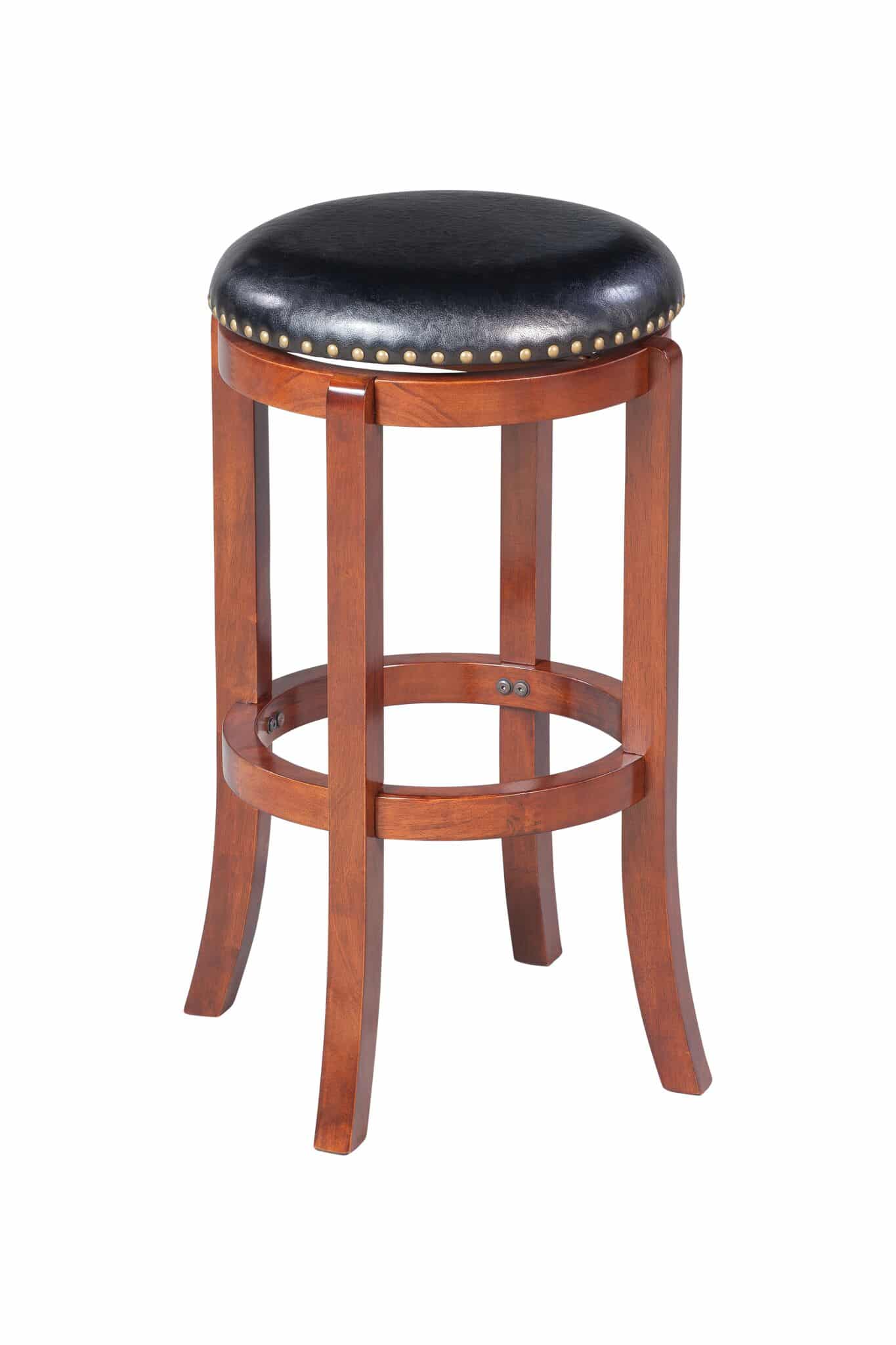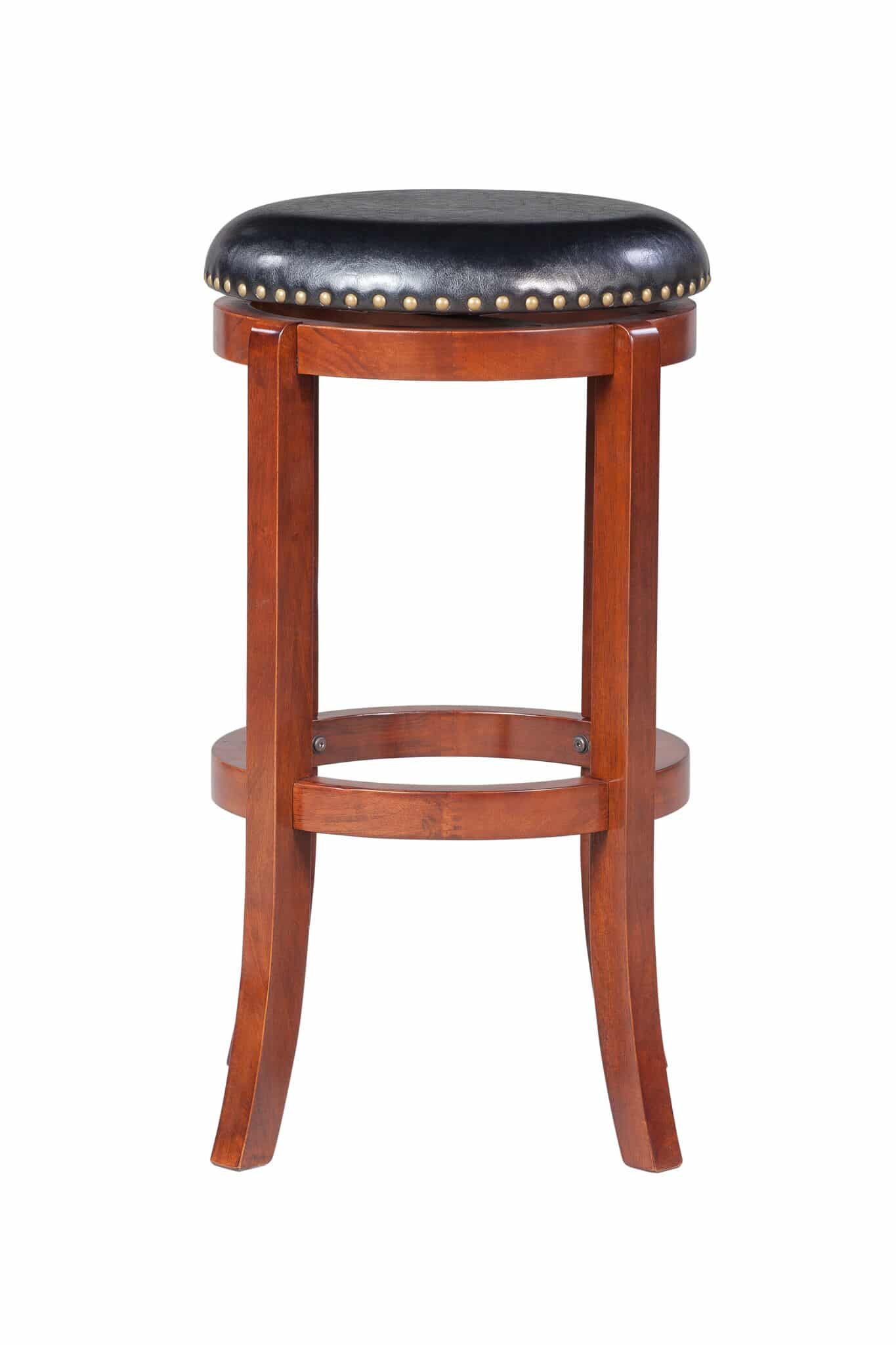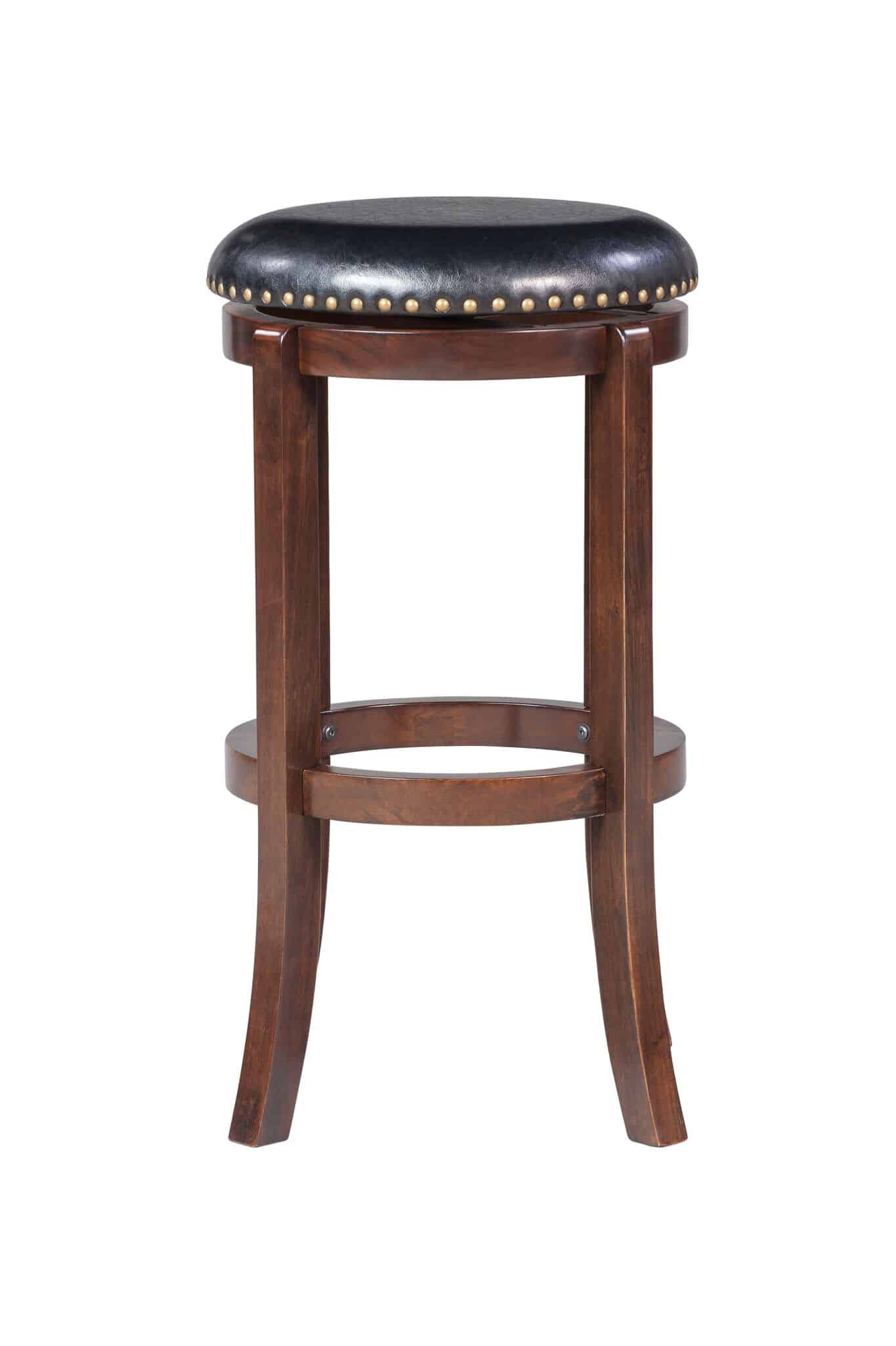 The Cordova backless swivel stool has the versatility, comfort, and style your home bar, game room, or kitchen needs. The Cordova features solid rubberwood construction with strategically flared legs, adding enhanced balance and durability to the design. The wonderful full 360-degree swivel function allows for maximum mobility, the smooth glide swivel function allows you to change directions with ease, making this your new favorite stool in your home. High-density foam cushion seat, which is upholstered in plush faux leather. The faux leather upholstery is easy to wipe clean, even if you spill your drink or your snack. Protective floor glides on the base guard your hard floors against scratches or scuffs. The Cordova is also available in standard counter and bar height options.