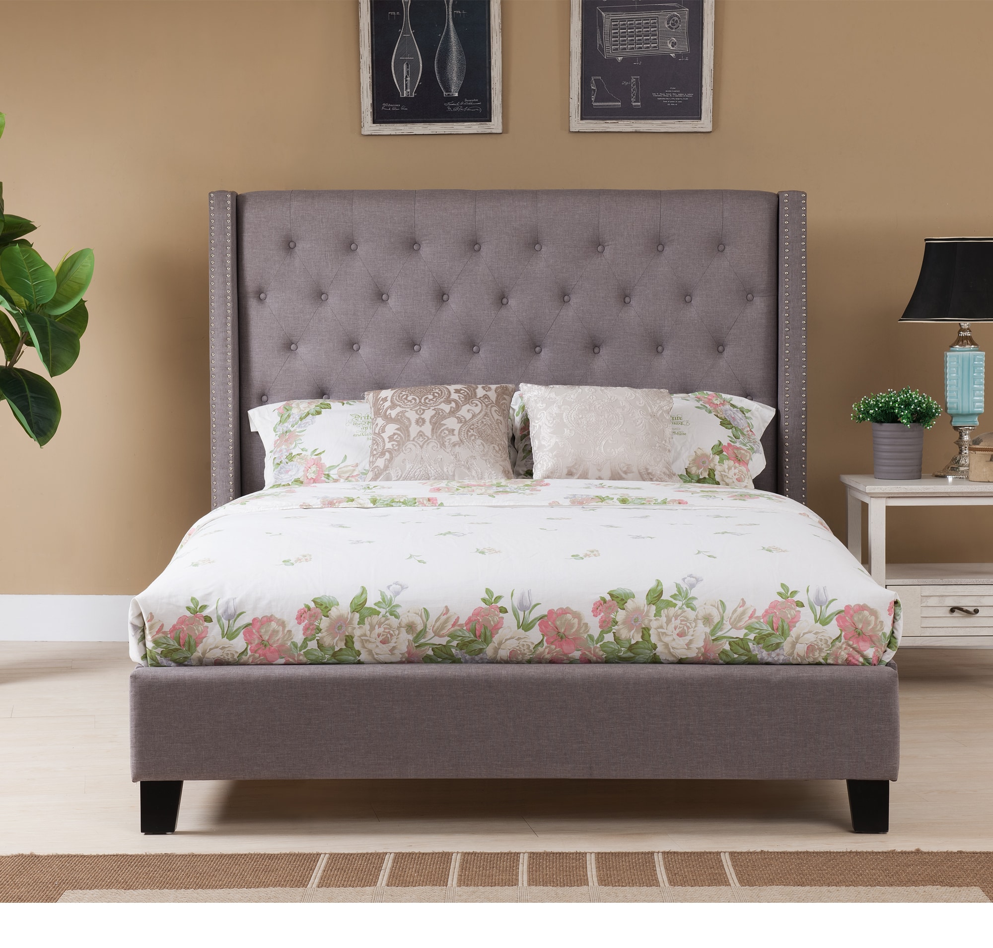 Love your favorite room even more with the Dalton bed by Boraam. The Dalton features a charcoal wingback headboard with chrome pins for a contemporary update. The frame rests on sturdy solid rubberwood legs that also are adjustable. The Dalton comes in two sizes: queen and king.