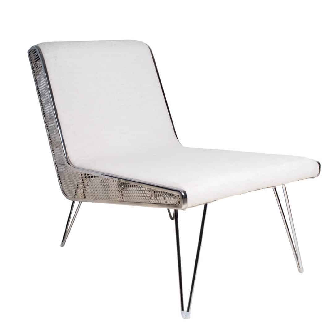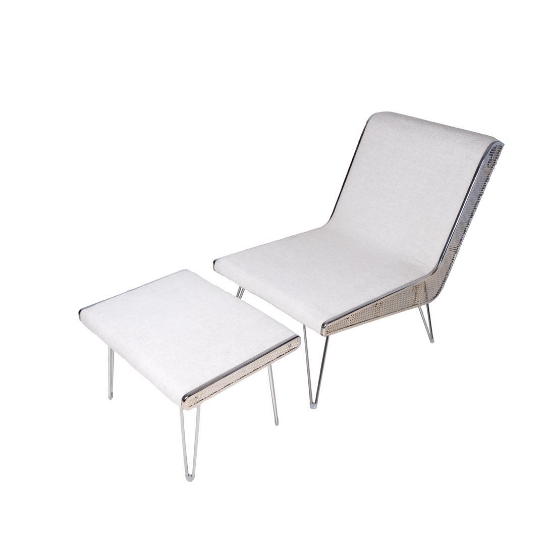 If you are looking to add a midcentury feel to your home or patio, you need to check out the Carson Deck Chair. It is constructed with a chrome metal frame with upholstered white linen seats with a sponge padding. The Carson Deck Chair comes with a footrest so it is built for rest and relaxation.