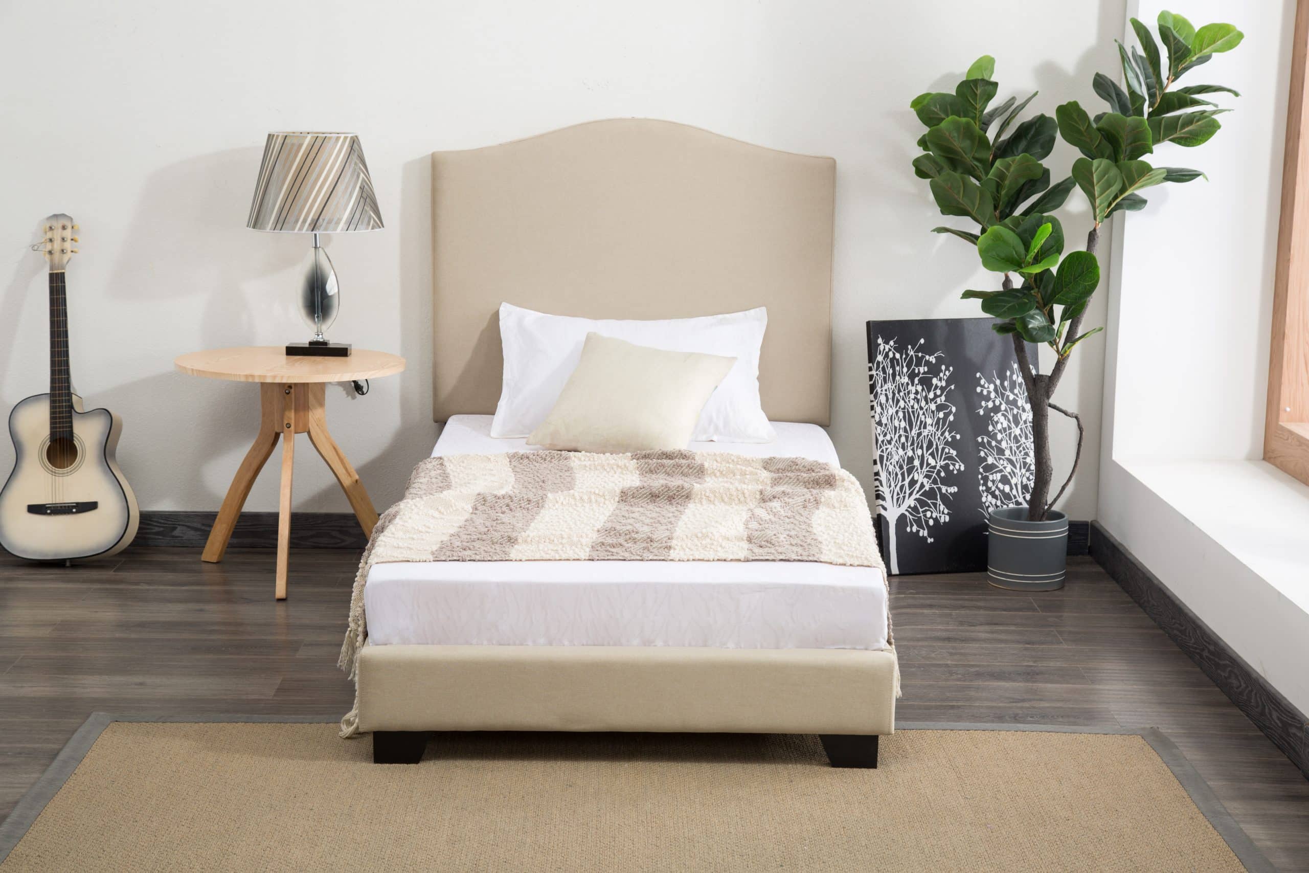 Whether you’re looking for simplicity or easygoing transitional design, the Dione Bed In A Box is a stylish yet affordable option for your home. Everything is included: crown headboard, footboard, rails, slats, and legs. For simplicity, every component arrives together in one neatly organized box. Choose your preferred size and upholstery color to make this bed perfect for your space.