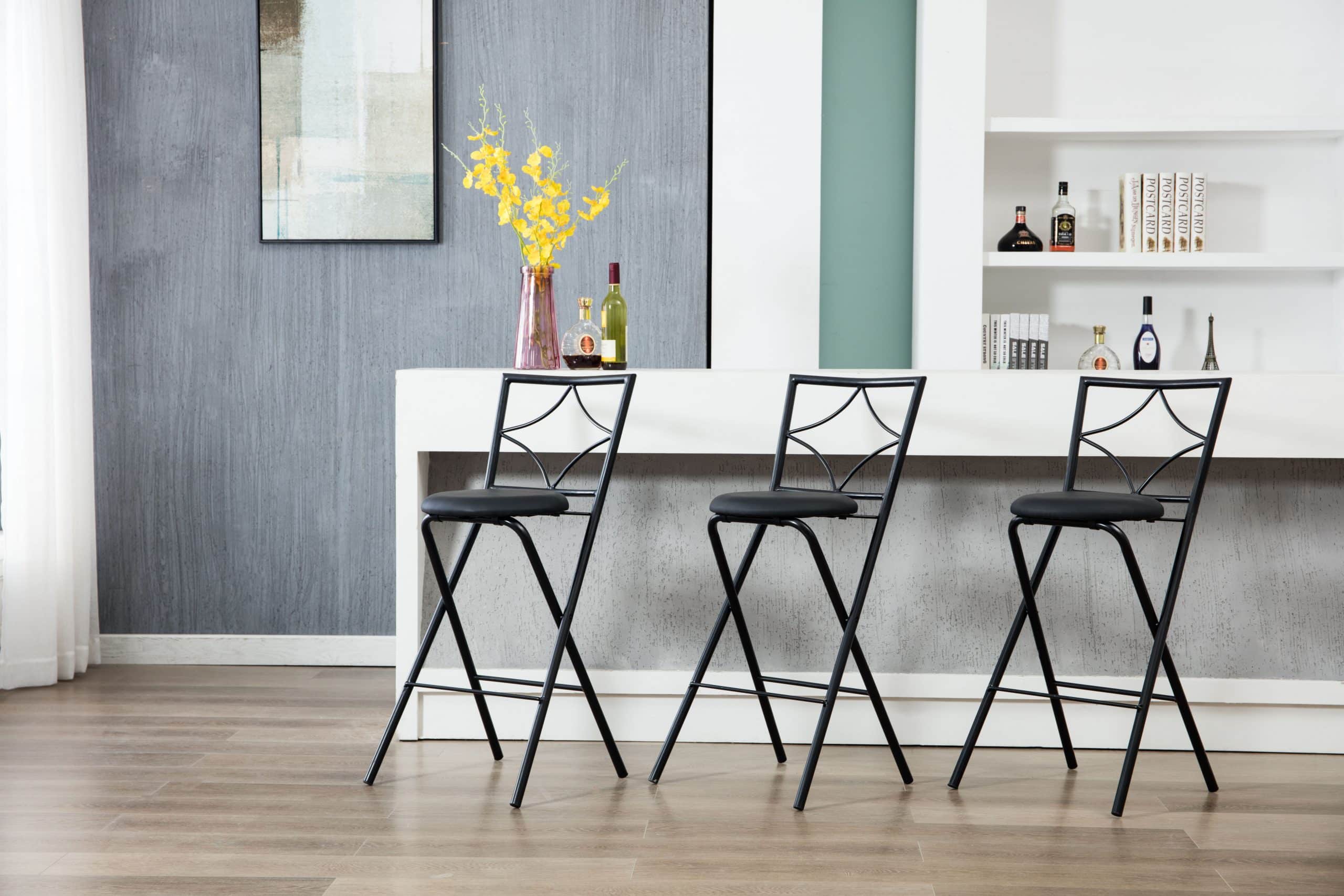 Whether you’re looking for spare seating for guests or you simply love the elegant design, the Glen Folding Stools are a sure bet for your space. Crafted from steel tube frames with padded faux upholstery seats, every stool is designed for comfort and durability. The Glen stools fold up, so you can easily move them from room to room and switch up your space. You’ll receive three identical stools with your purchase – perfect for filling out a pub table or home bar. Please note: The product weight listed on site is for a single stool.