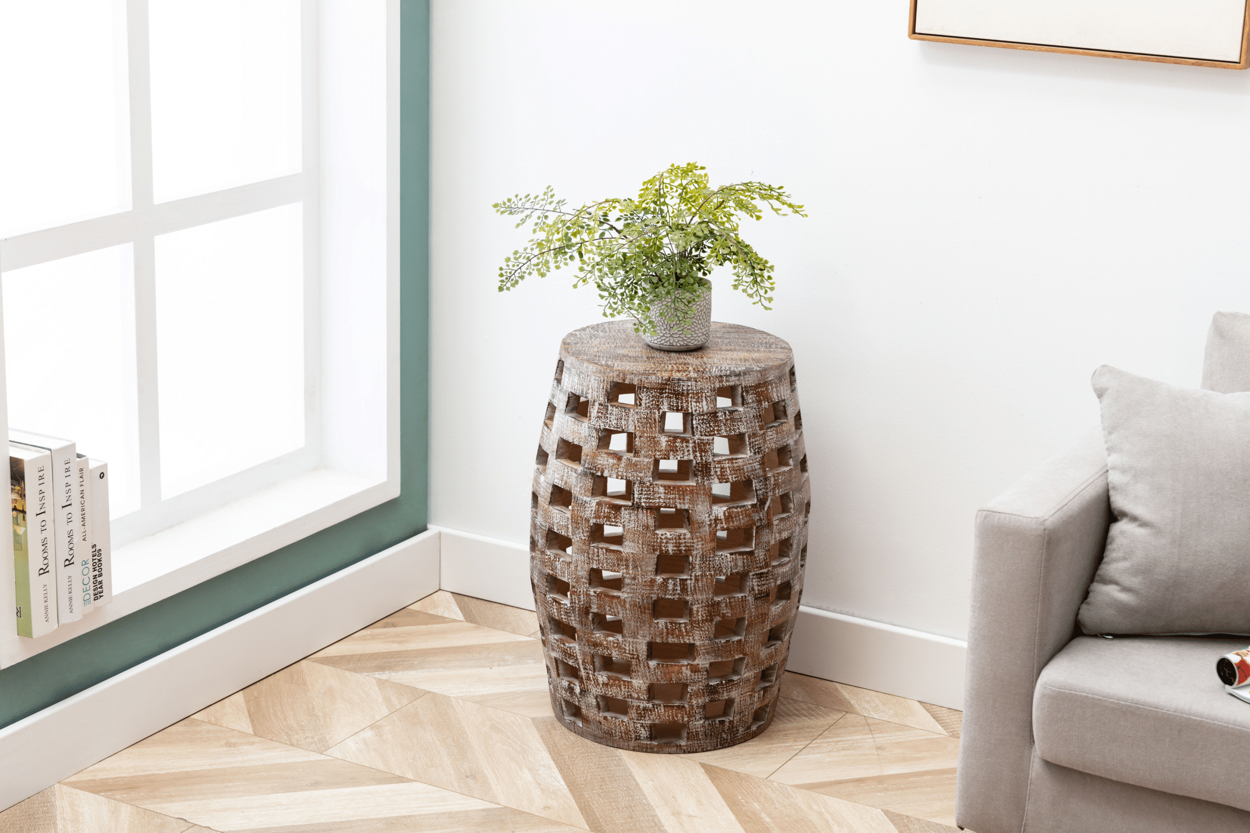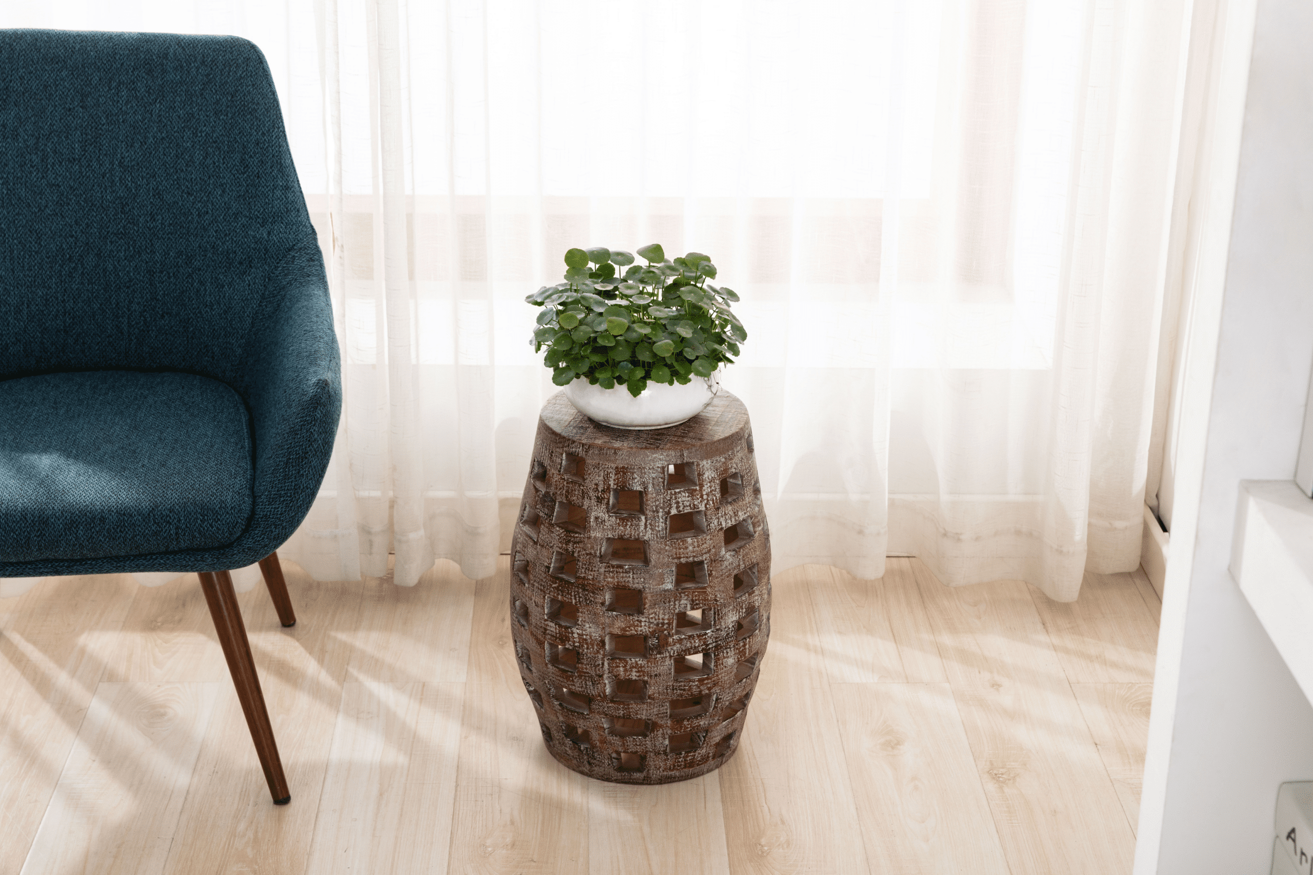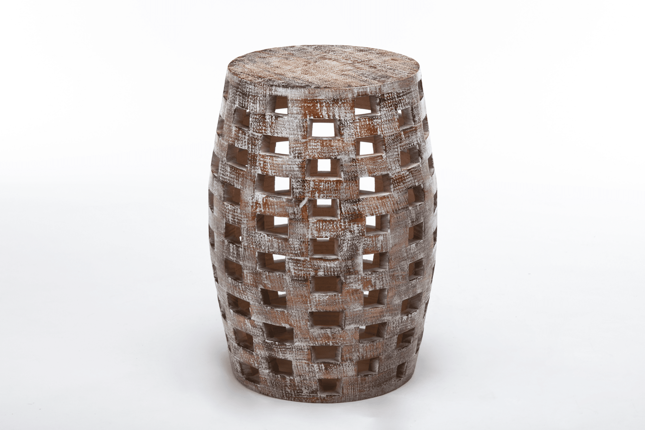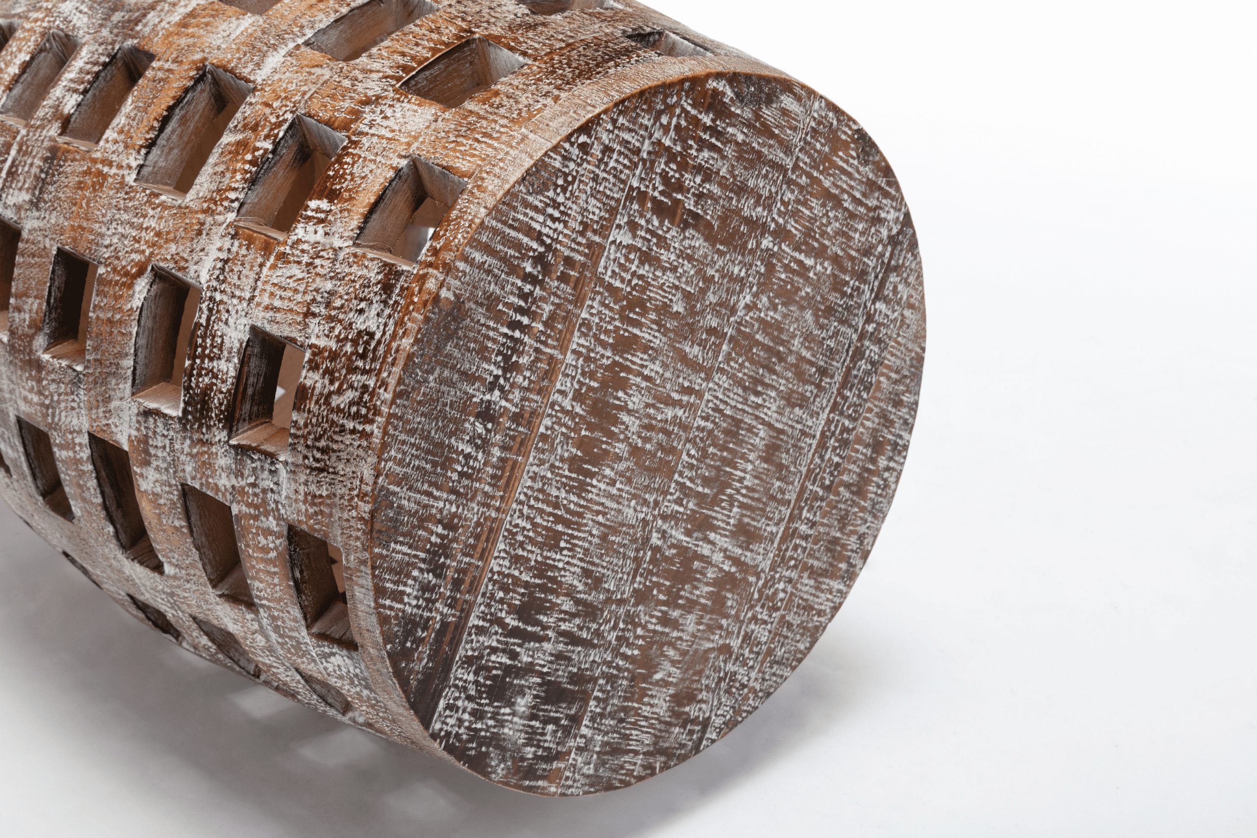 The Boraam Hampton Side Table brings a nice rustic feel into your home. Made to look like a small barrel with a unique hole pattern all around the side, the Hampton Side Table is constructed with pine wood and is available in our weathered walnut finish. It is available in two different heights; 18″ and 26″. These are perfect pieces to bring into your living room and bar area. It will be sure to have your family and friends talking. No assembly is required, The Hampton Side Table is ready to use right out of the box!