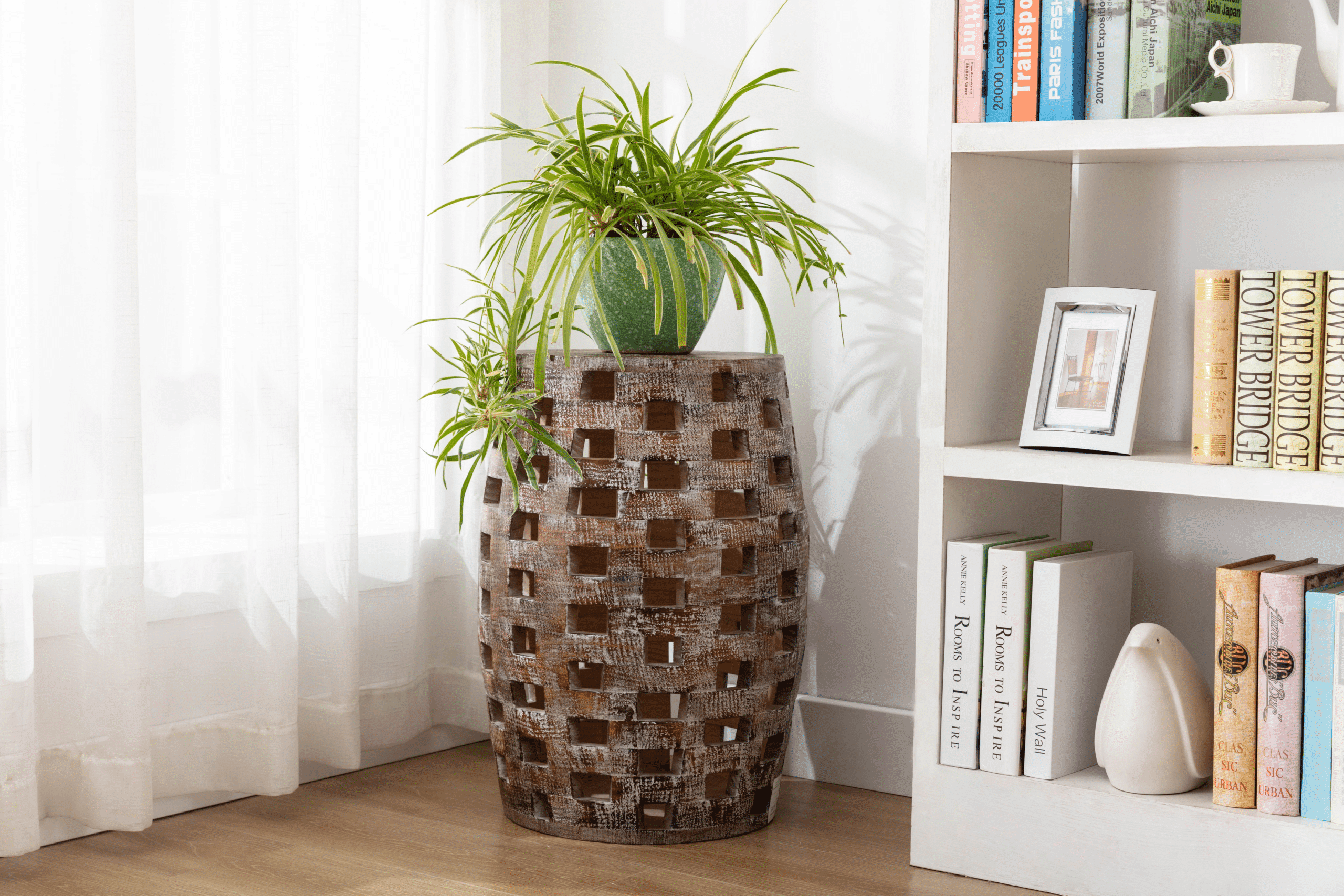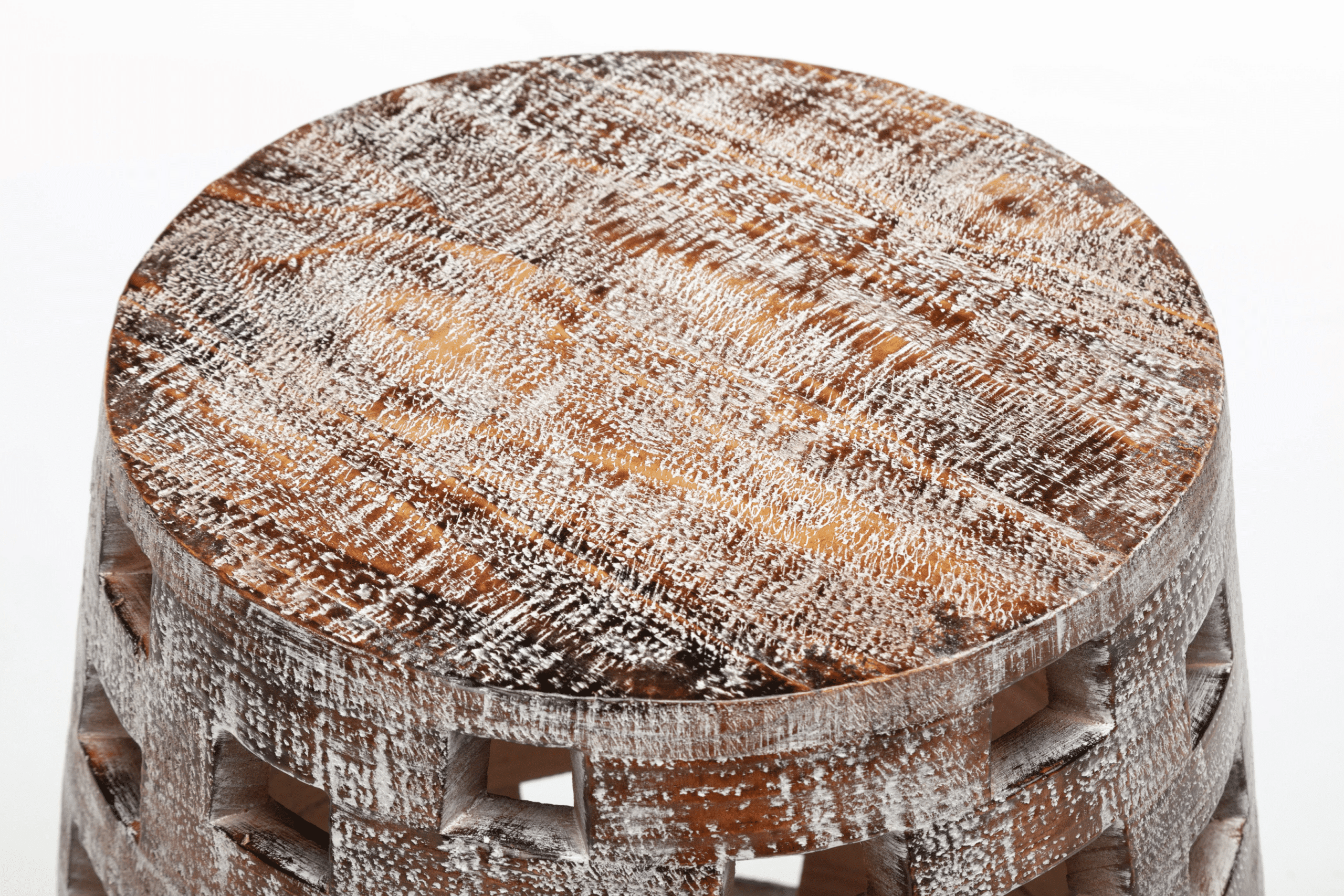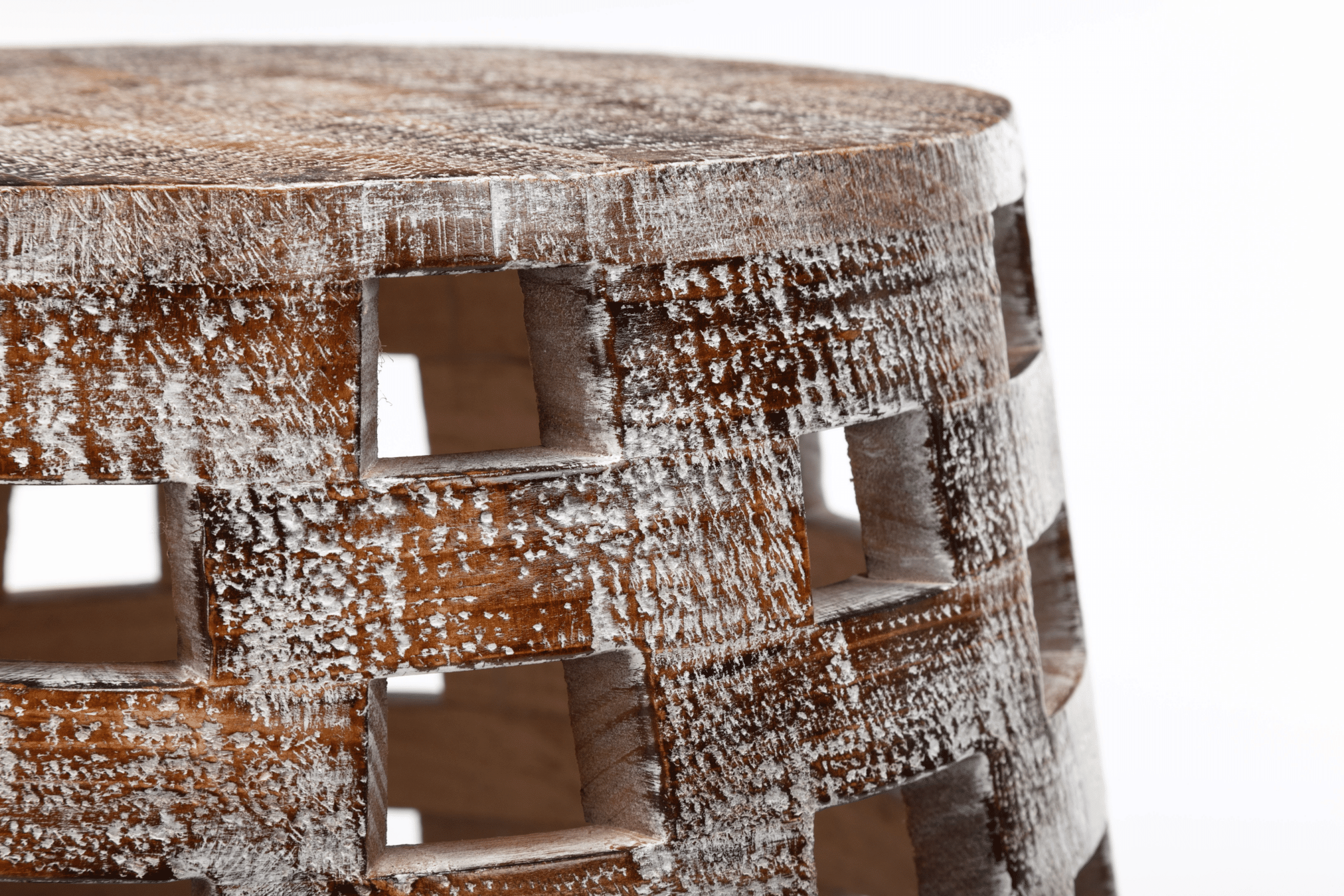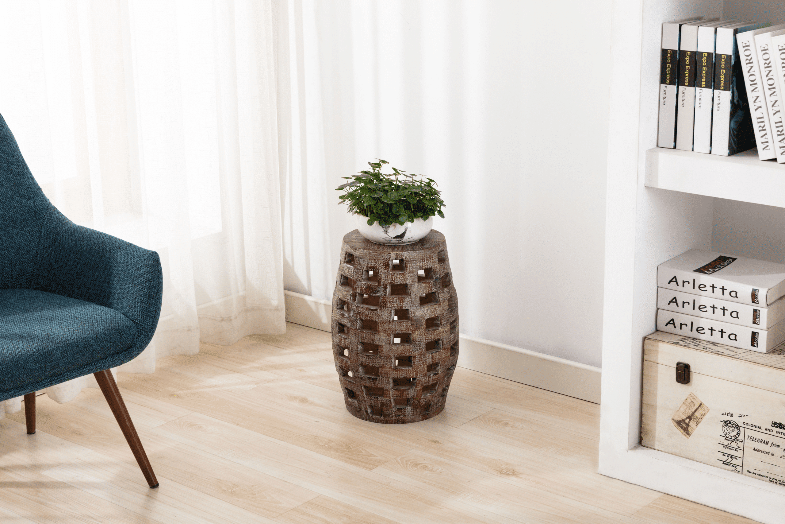 The Boraam Hampton Side Table brings a nice rustic feel into your home. Made to look like a small barrel with a unique hole pattern all around the side, the Hampton Side Table is constructed with pine wood and is available in our weathered walnut finish. It is available in two different heights; 18″ and 26″. These are perfect pieces to bring into your living room and bar area. It will be sure to have your family and friends talking. No assembly is required, The Hampton Side Table is ready to use right out of the box!