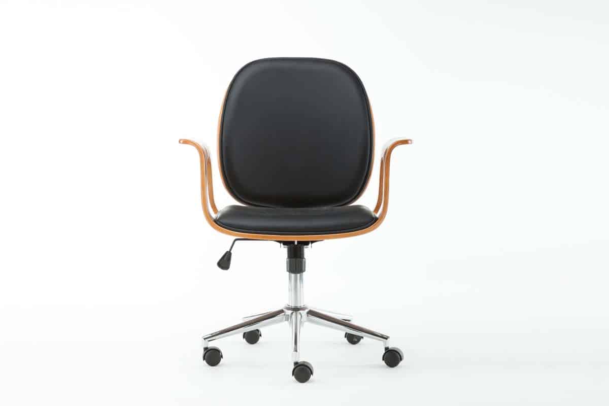 The Happ Office Chair adds a bit of flair to any work space with its flared arm rests and curved seat back. This modern chair is constructed of bentwood and offers a high density foam backrest. The seat is perfectly cushioned for and provides an adjustable seat with 360 degree swivel capability.