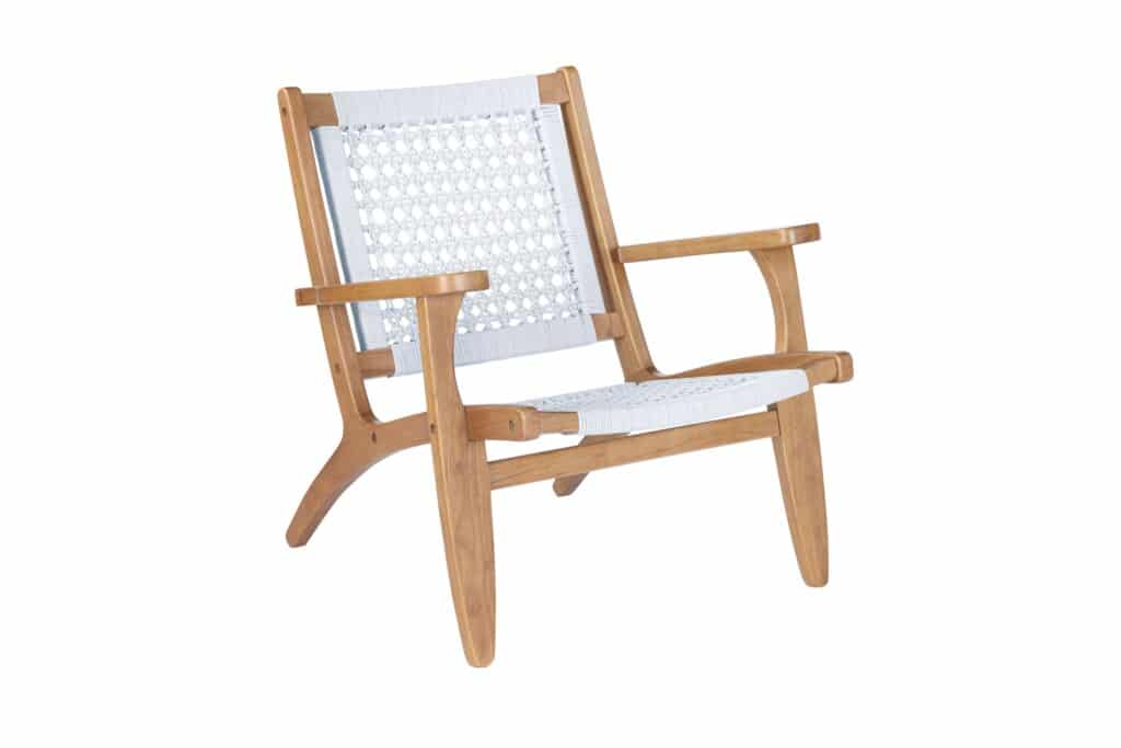- The angular design, rubberwood, and rope combo make it perfect for setting up a relaxation area in your living room or bedroom